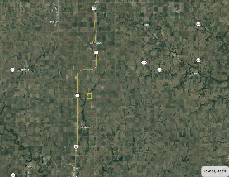 - Approximately 3 miles from Pickrell, Nebraska