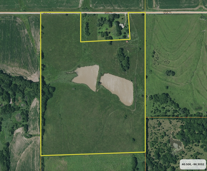 Nestled in the picturesque countryside with proximity to Lincoln, this property offers an idyllic retreat with convenient road access. Boasting a serene ambiance, the landscape features gently rolling topography with clean hay ground, perfect for those seeking a tranquil escape. Two ponds sit central in the property, with one recently renovated to remove sediment and build up the dam.