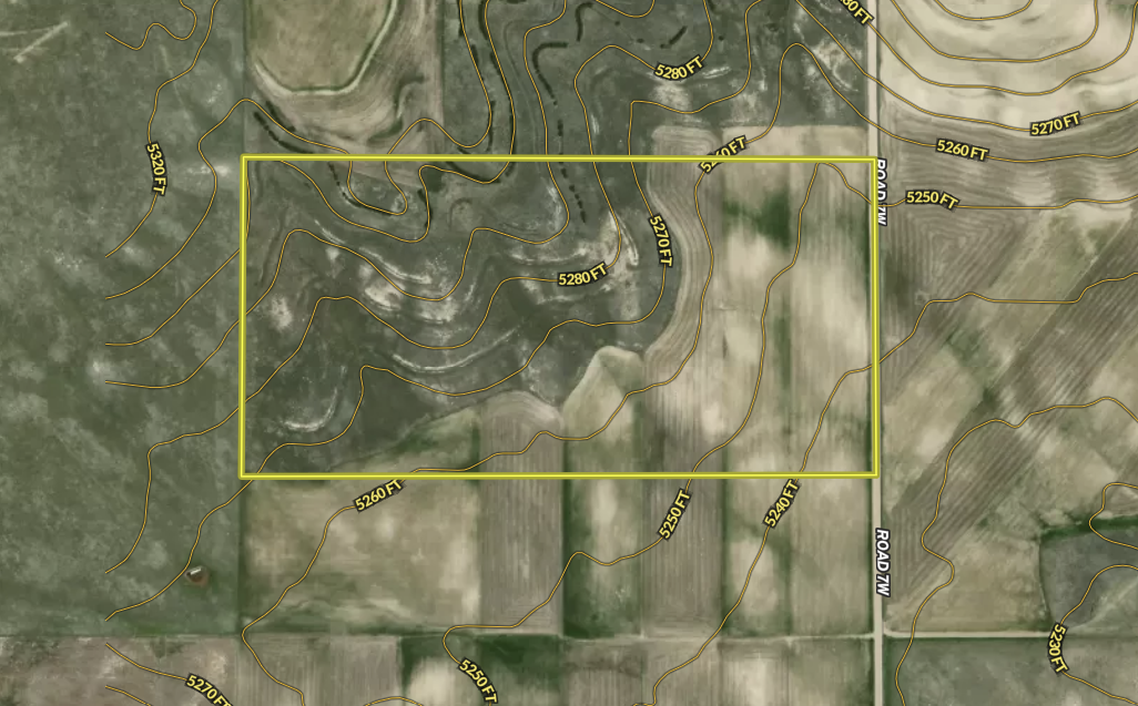 Here is a combination of recreational and cropland property with a few mature tree rows. There are approximately 35 +/- tillable acres that are currently in a wheat/millet/fallow rotation and are subject to tenant rights. Over the years, the cropland acres have been verbally leased under a 1/3 owner 2/3 tenant crop-share agreement. With the mature tree rows and expired CRP, the property has great habitat and cover for the local wildlife. Hunting opportunities include deer, antelope, upland birds, predators, and small game. This parcel has several good building sites with power located nearby. Good road frontage can be found on the east side of the property and is only a short distance from the Front Range/Denver Metro area. Contact the Land Specialist (Daniel Hunning) today to find out more information or to schedule a private showing.