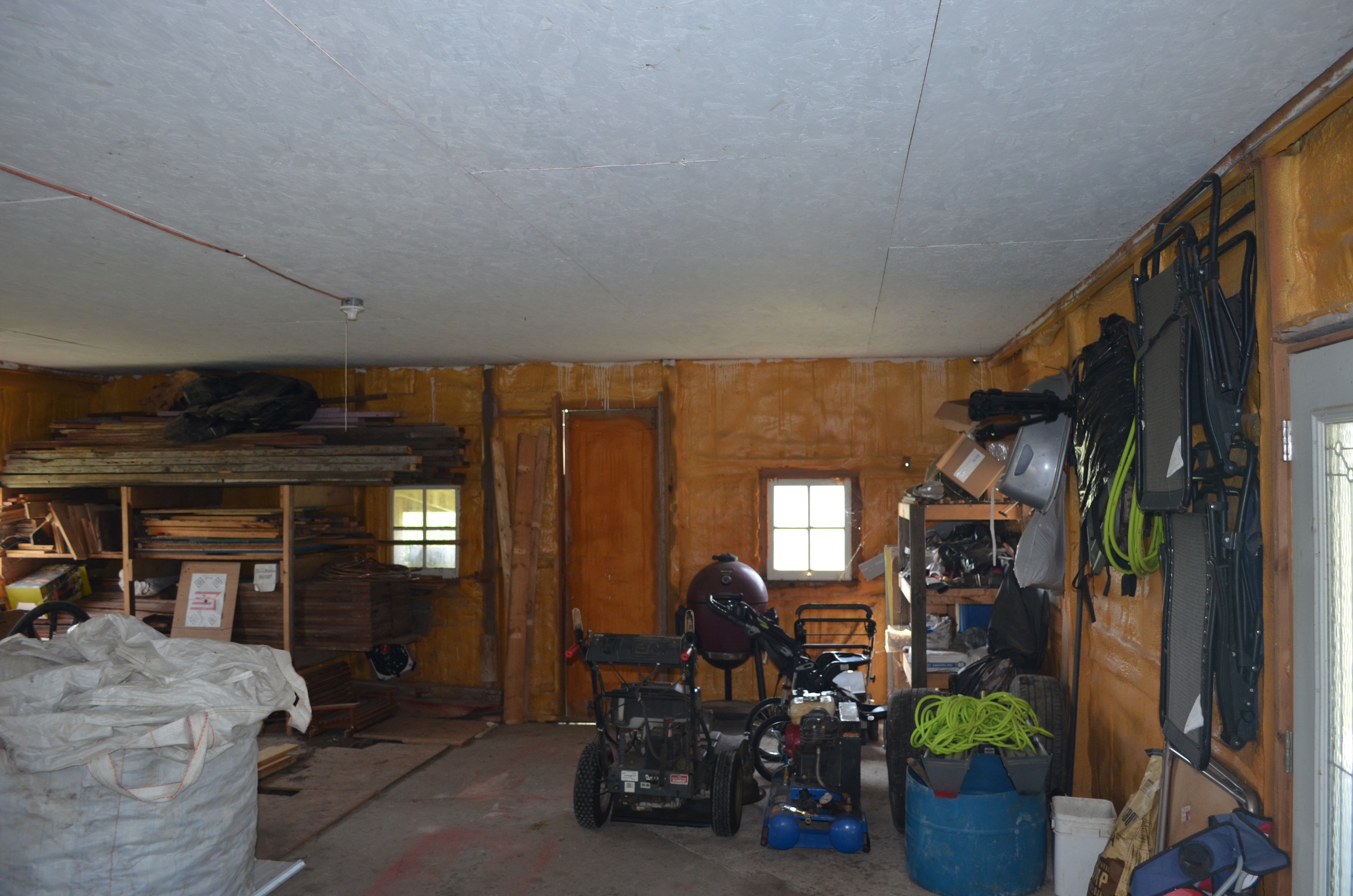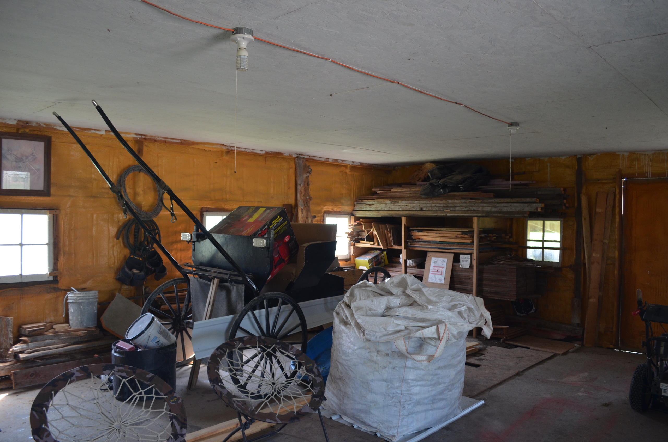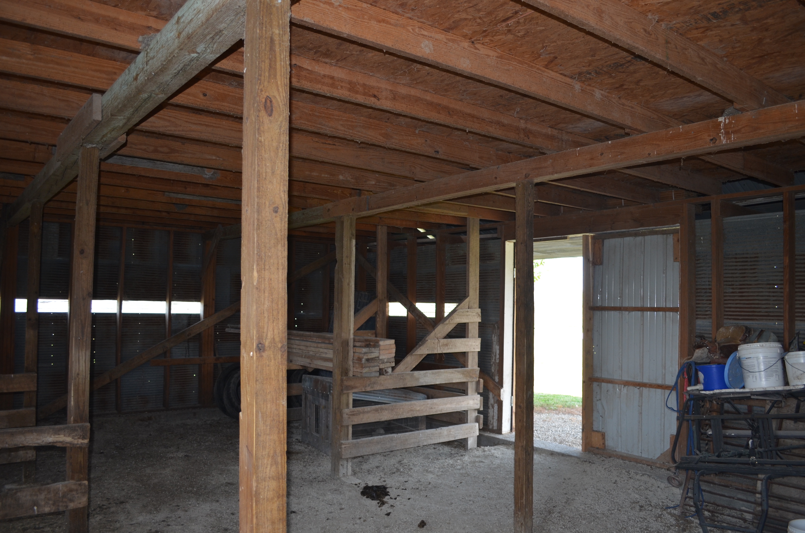 - Shop with partial concrete floor and overhang