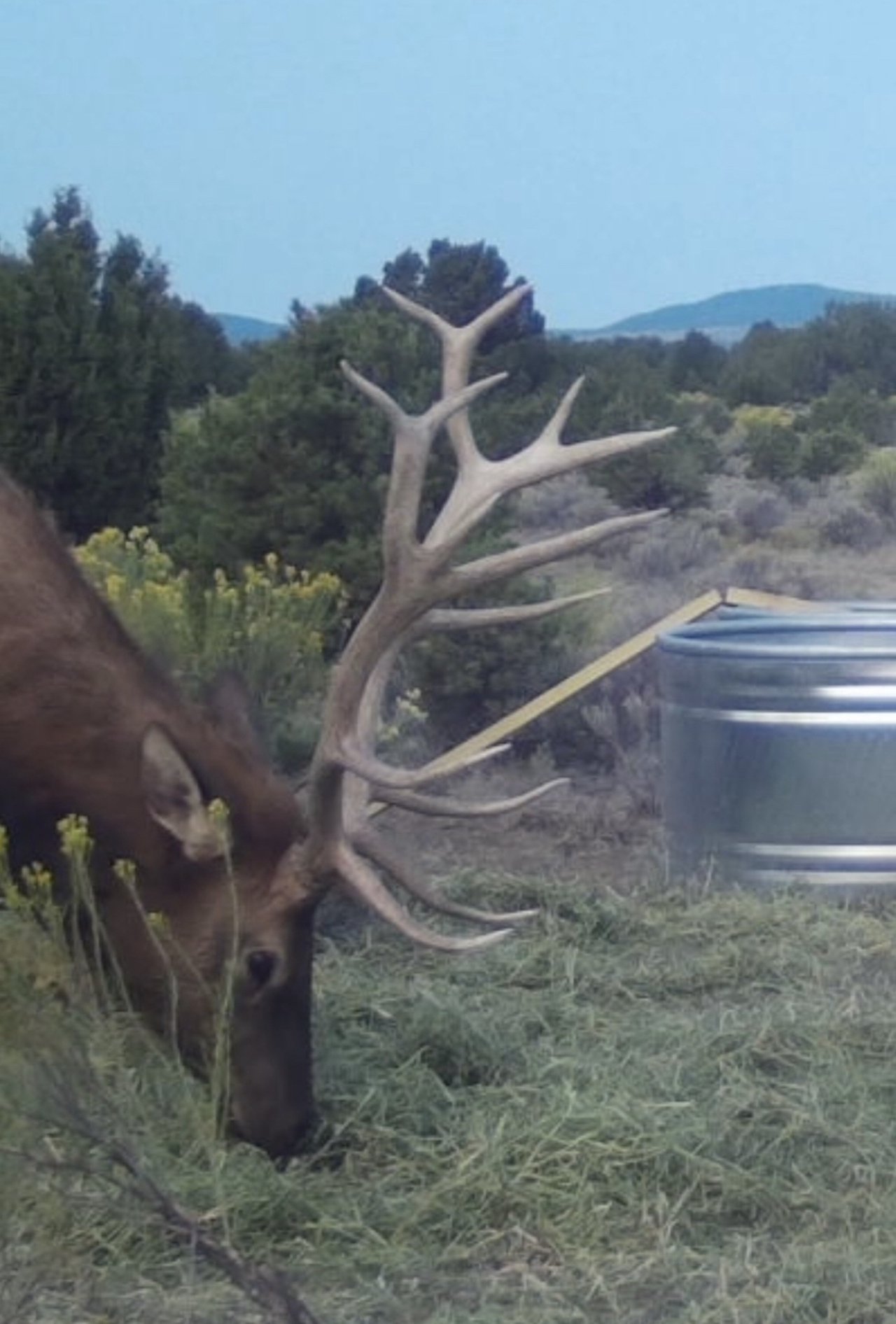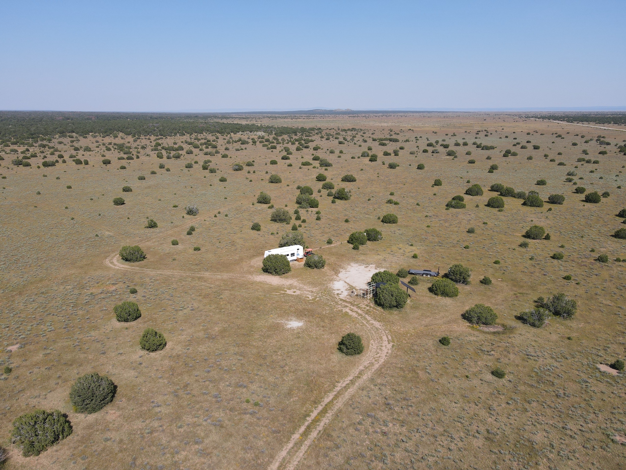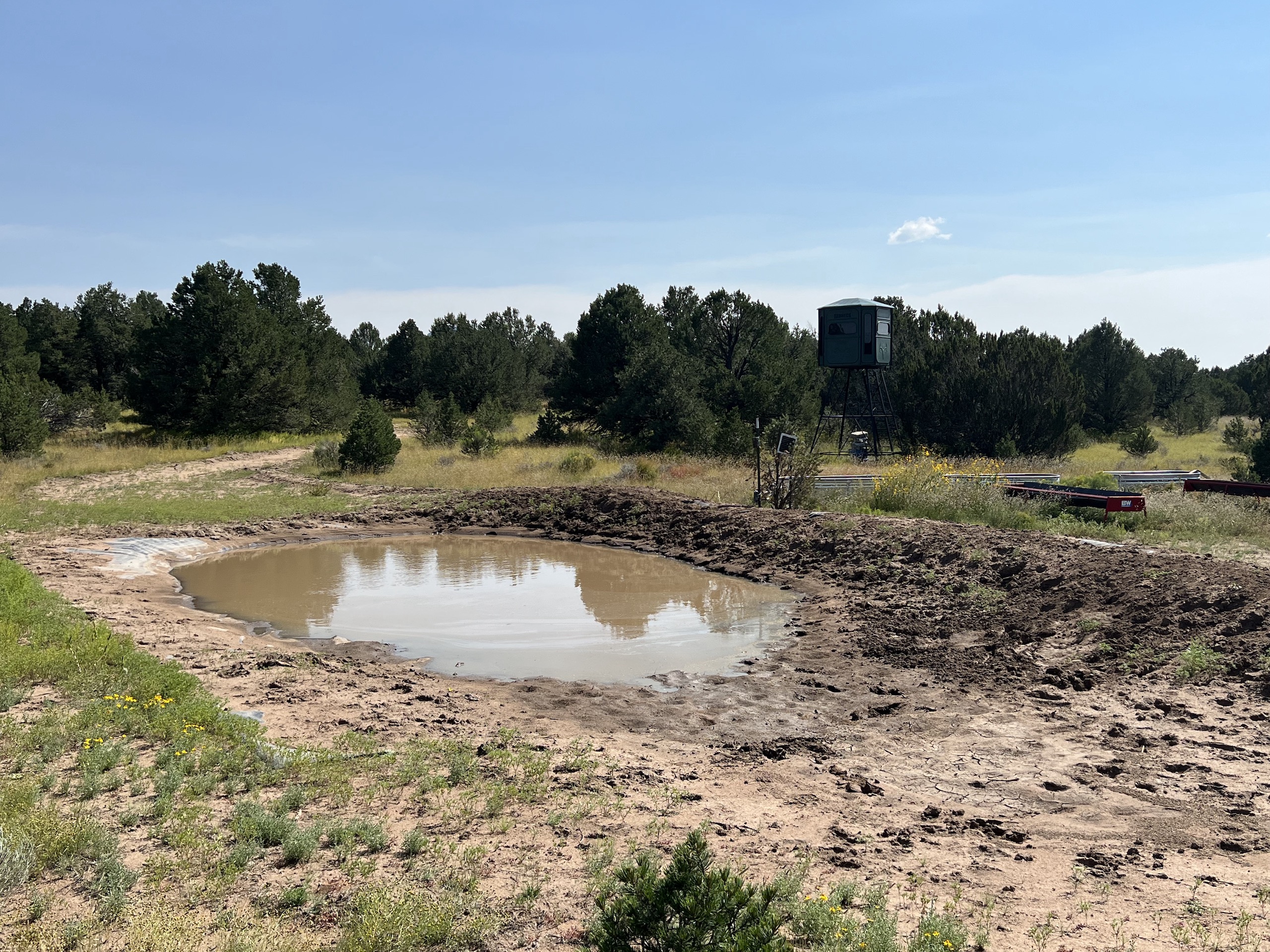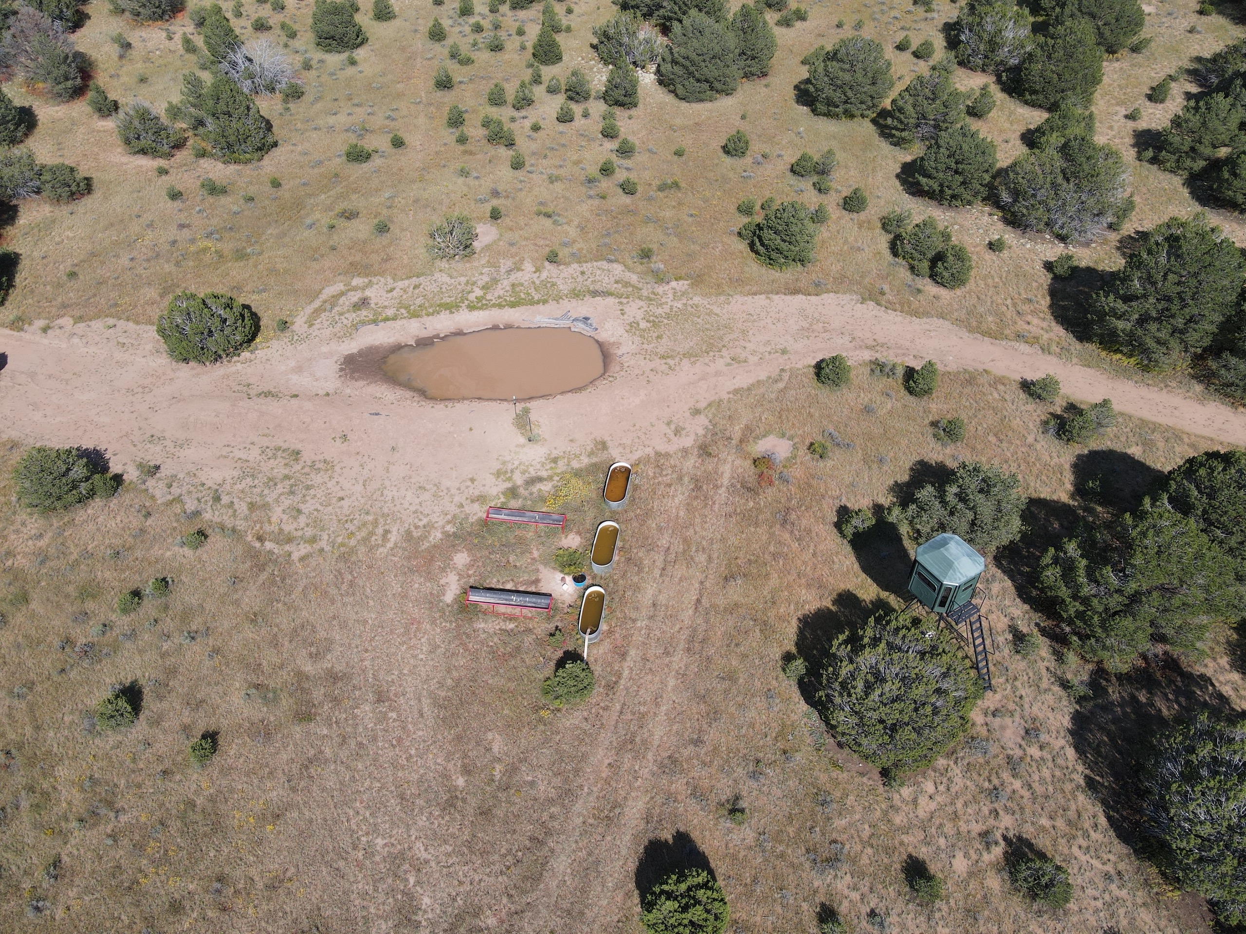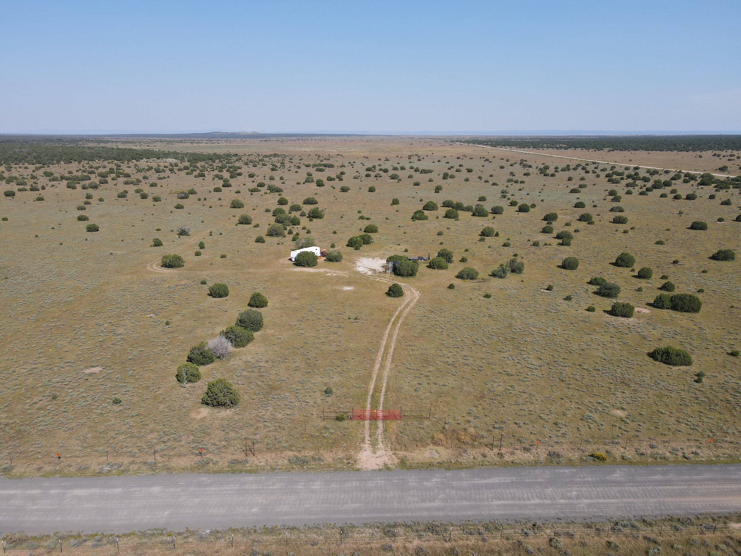 This property is located within Game Management Unit 12, which is known for its trophy elk hunting and is eligible to participate in New Mexico Game and Fish’s elk landowner system (EPLUS). Elk, mule deer, pronghorn and other wildlife utilize this property. Private land mule deer and pronghorn licenses are currently unlimited and sold over the counter, so a landowner can allow as many hunters as they choose to meet their management objectives. Trail camera photos have documented many elk to include several trophy-sized bull elk. The ranch provides good forage and water availability for maintaining elk, mule deer and pronghorn use on the property. The terrain consists of gentle topography with open meadows of native grasses, pinyon and juniper trees. Two newly built dirt tanks have had heavy elk usage and provide a key habitat component that has attracted more big game to the property. Two redneck blinds have been installed at each of the dirt tanks. Feeding troughs are placed in strategic locations on the property. A new 685-foot well, operated by solar or generator and has a 5,000-gallon storage tank. Water is piped to a travel trailer and is controlled by a hydrant, which is a big plus for a remote property. A water trailer with a holding capacity of 1000 gallons of water can be used to provide water to the numerous drinking troughs throughout the property. The perimeter of the property is fenced on three sides with new barbed-wire fencing and has three entrance gates. Road access is off Highway 117. This property offers the opportunity to own your own hunting property!