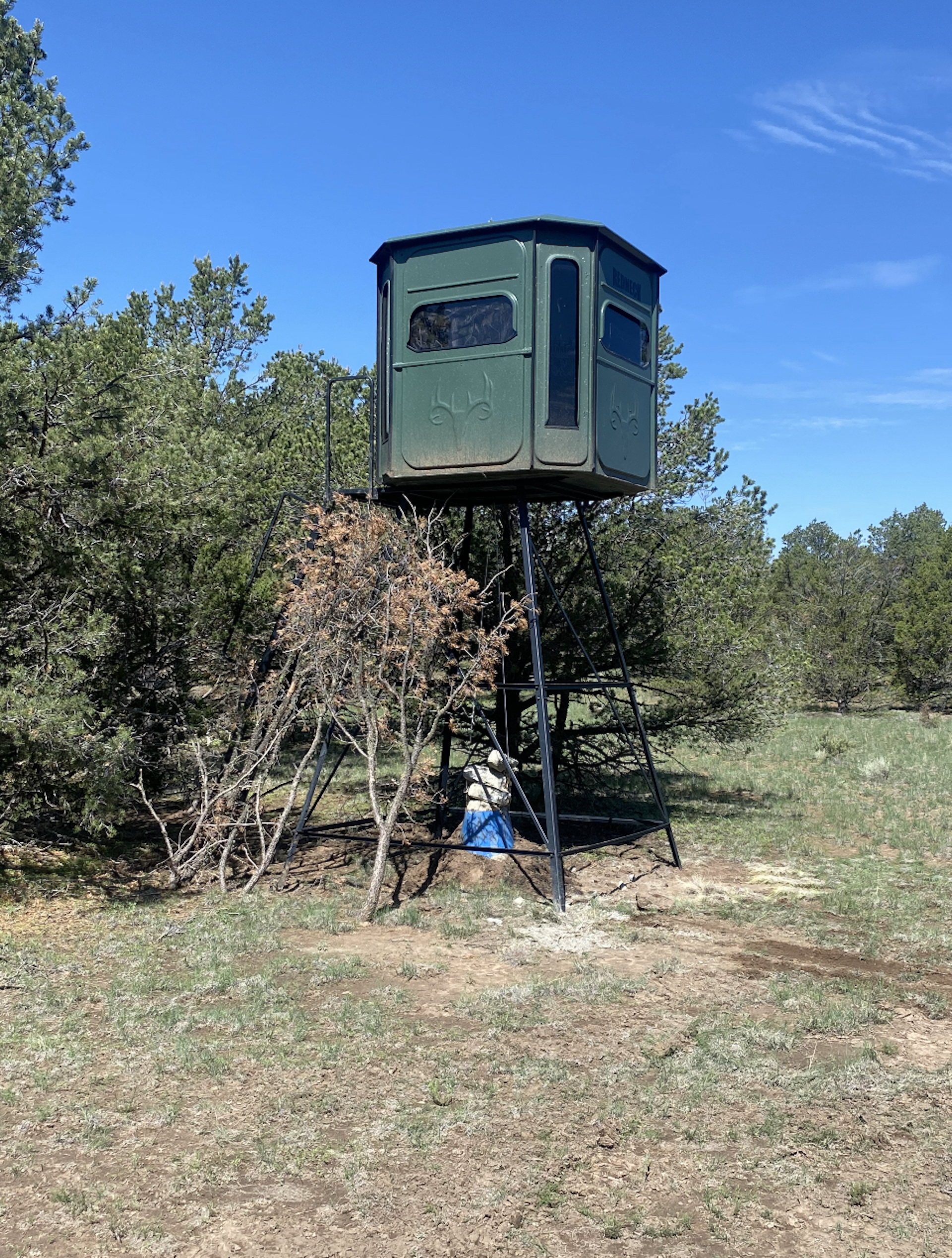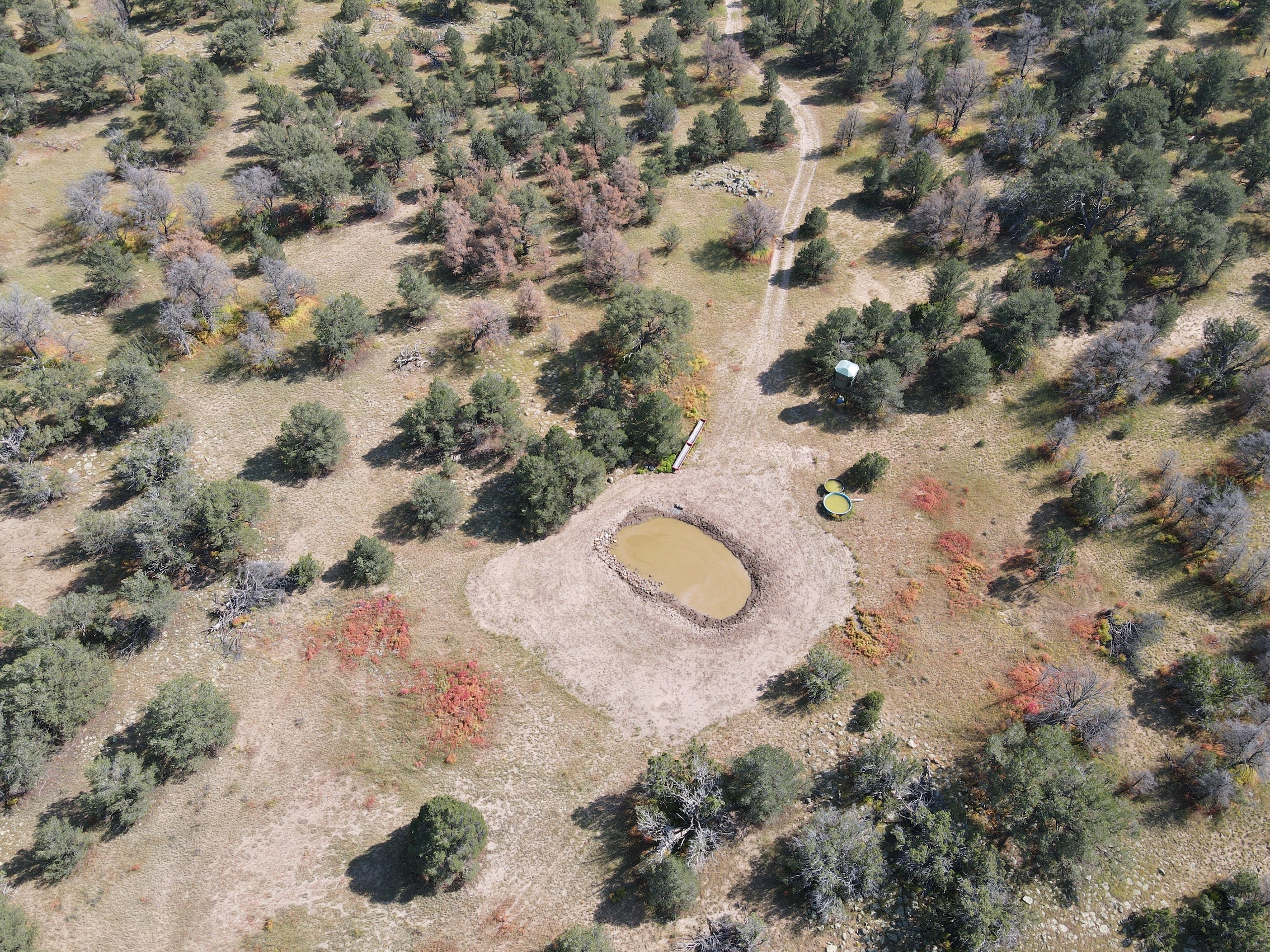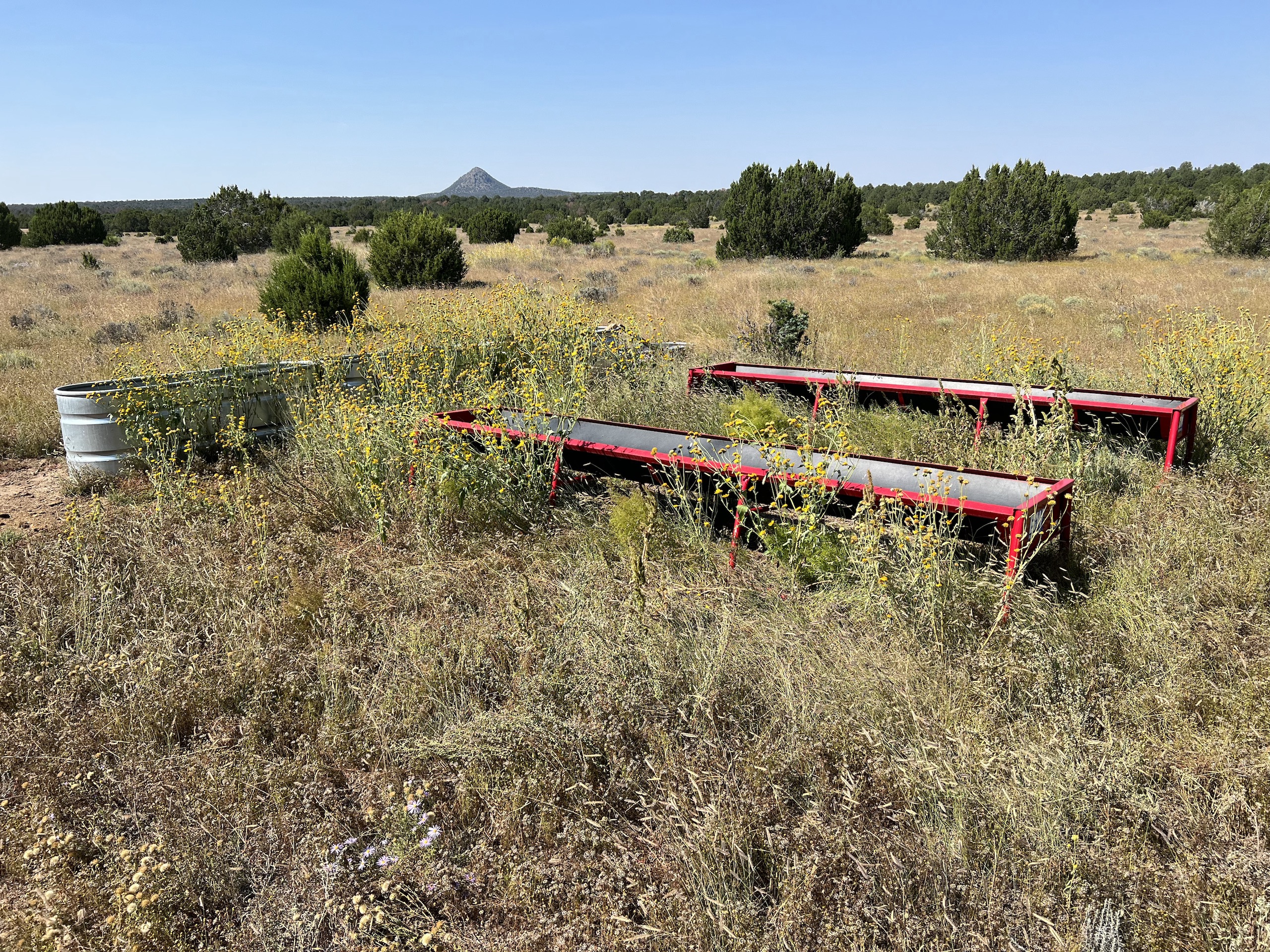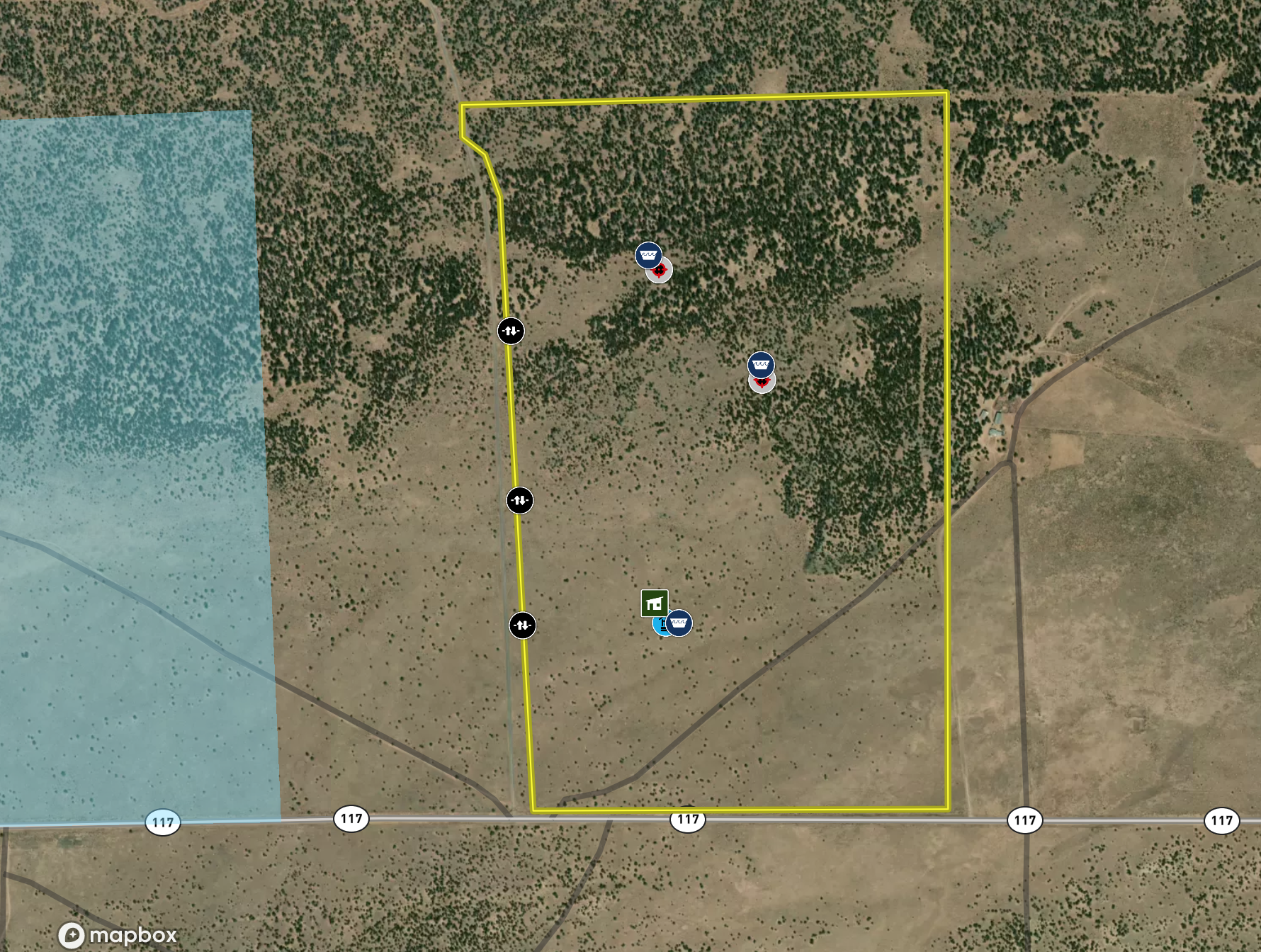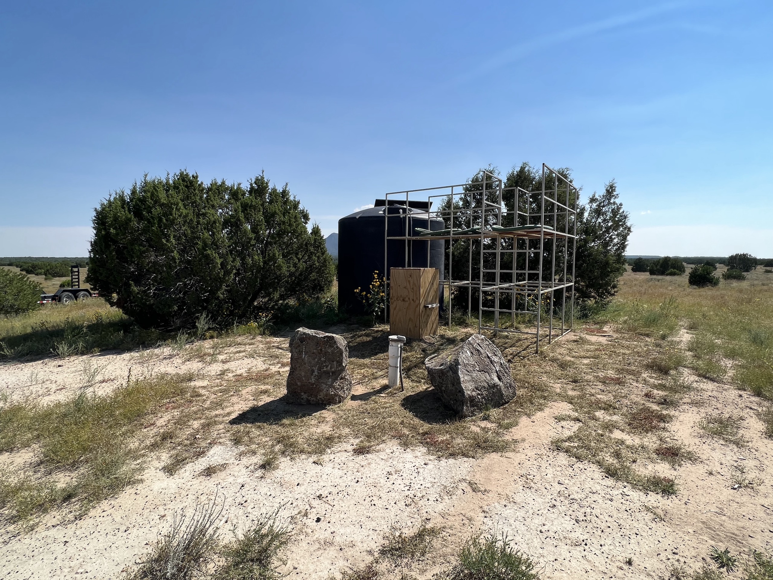 This property is located within Game Management Unit 12, which is known for its trophy elk hunting and is eligible to participate in New Mexico Game and Fish’s elk landowner system (EPLUS). Elk, mule deer, pronghorn and other wildlife utilize this property. Private land mule deer and pronghorn licenses are currently unlimited and sold over the counter, so a landowner can allow as many hunters as they choose to meet their management objectives. Trail camera photos have documented many elk to include several trophy-sized bull elk. The ranch provides good forage and water availability for maintaining elk, mule deer and pronghorn use on the property. The terrain consists of gentle topography with open meadows of native grasses, pinyon and juniper trees. Two newly built dirt tanks have had heavy elk usage and provide a key habitat component that has attracted more big game to the property. Two redneck blinds have been installed at each of the dirt tanks. Feeding troughs are placed in strategic locations on the property. A new 685-foot well, operated by solar or generator and has a 5,000-gallon storage tank. Water is piped to a travel trailer and is controlled by a hydrant, which is a big plus for a remote property. A water trailer with a holding capacity of 1000 gallons of water can be used to provide water to the numerous drinking troughs throughout the property. The perimeter of the property is fenced on three sides with new barbed-wire fencing and has three entrance gates. Road access is off Highway 117. This property offers the opportunity to own your own hunting property!