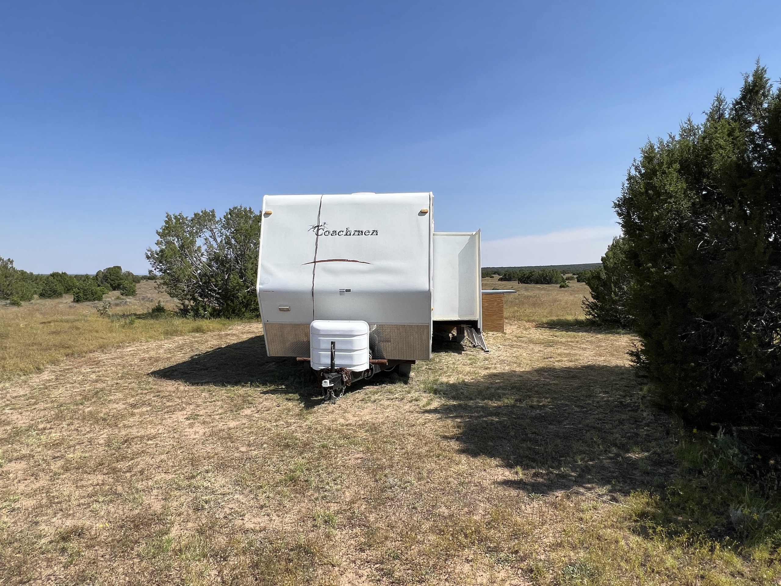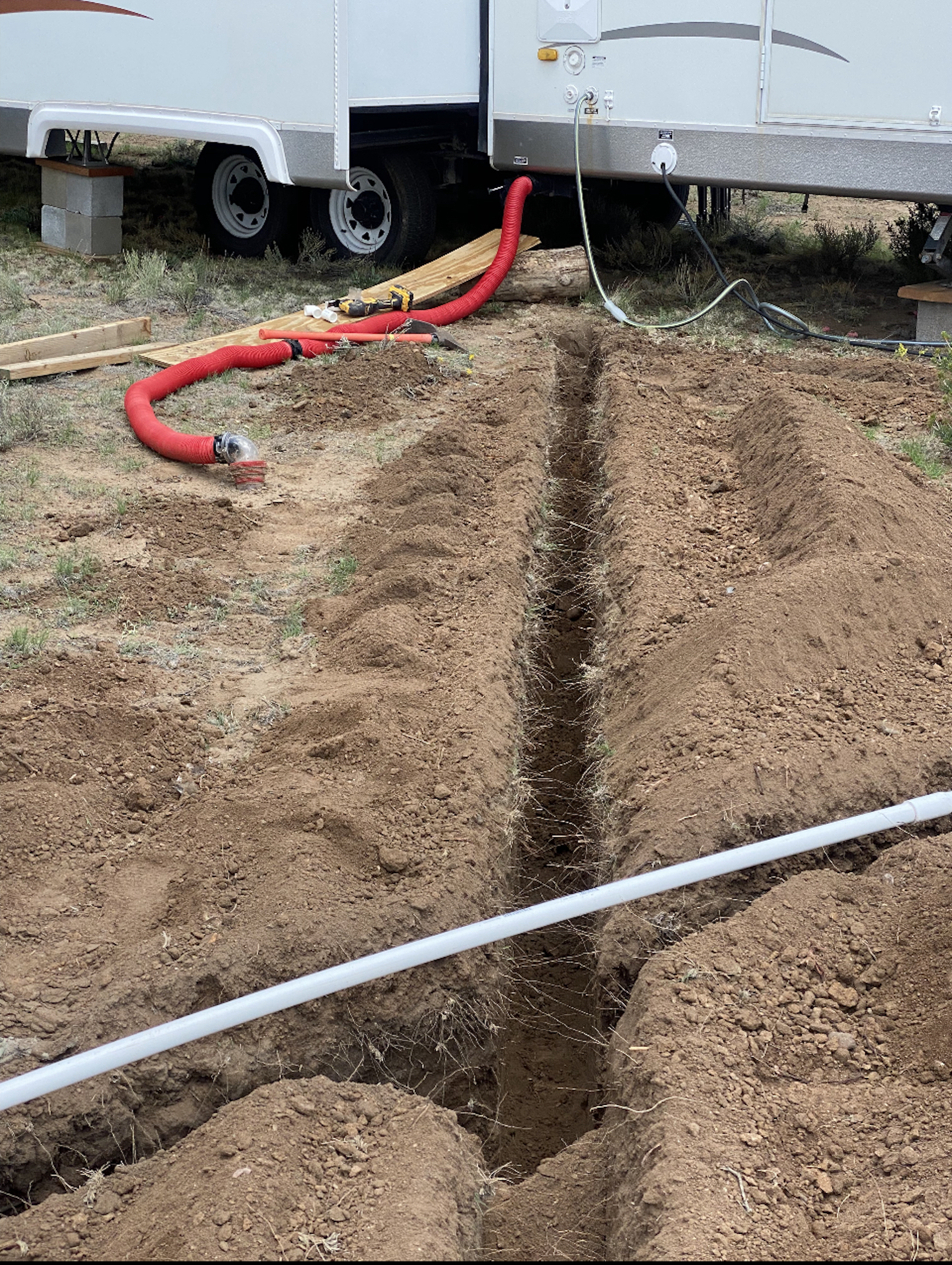 - 2008 Spirit of America 34-foot travel trailer connected to water well