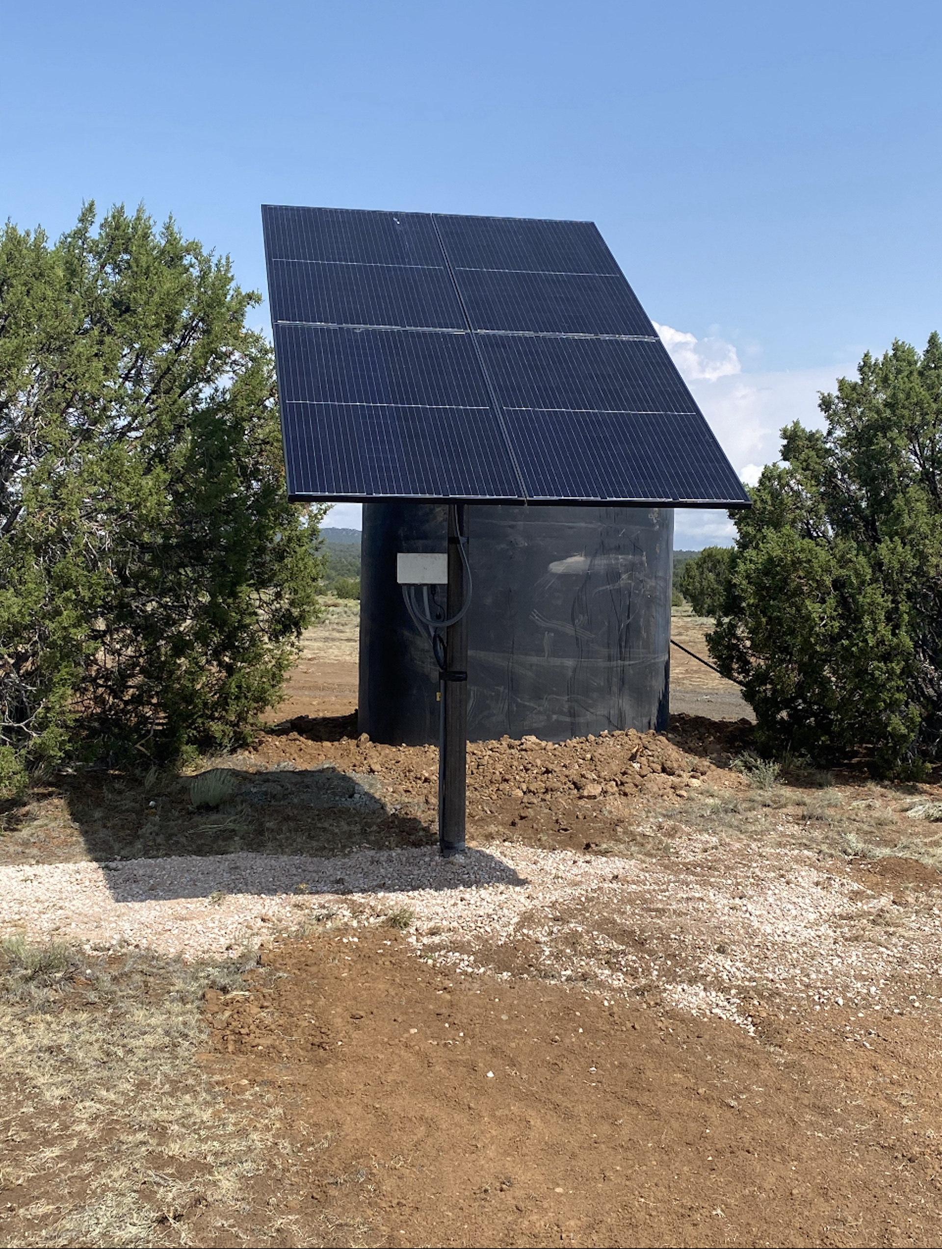 - 685-foot water well with solar pump, generator, hydrant and water storage tank