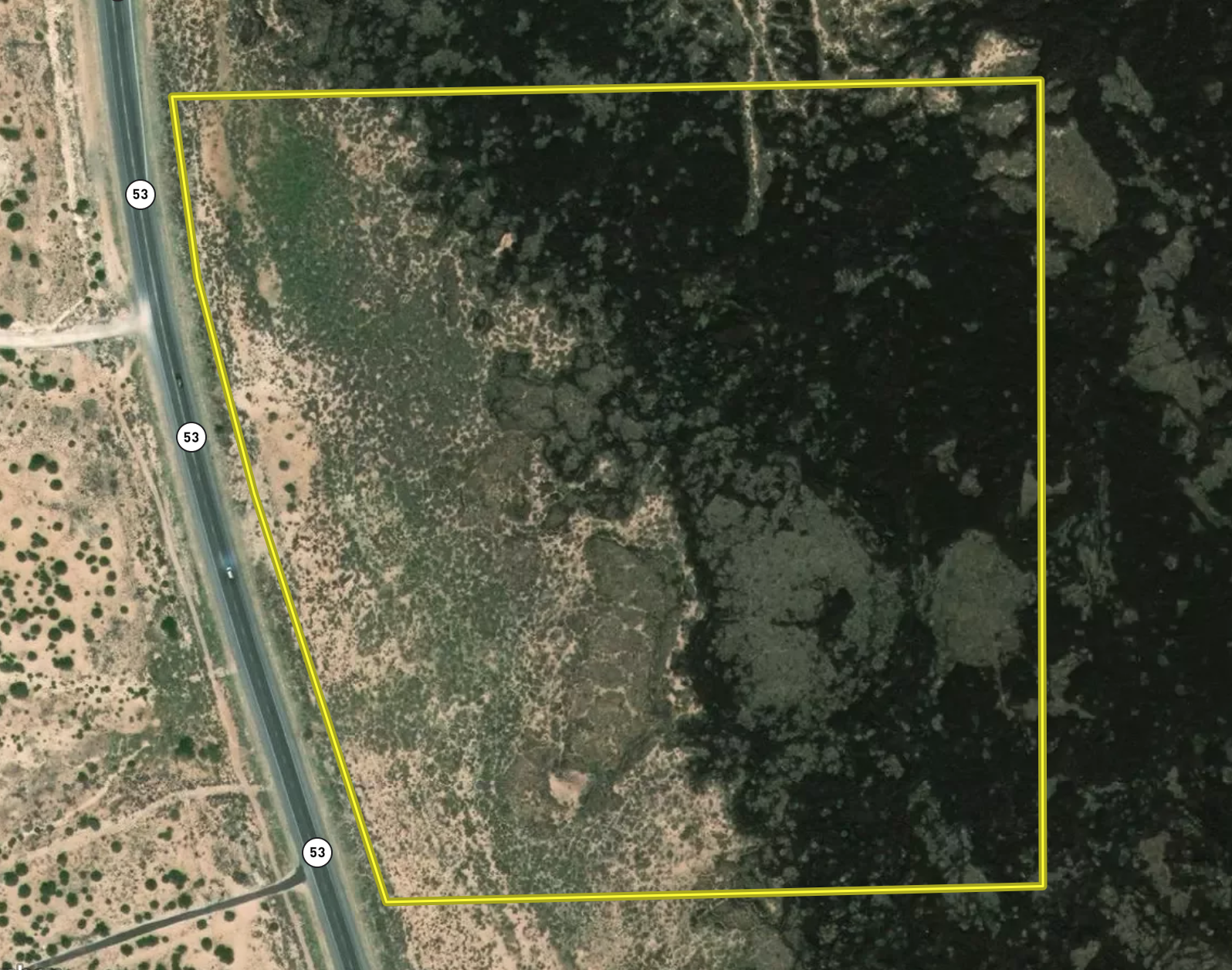 - State Highway 53 road access on the west side of the property