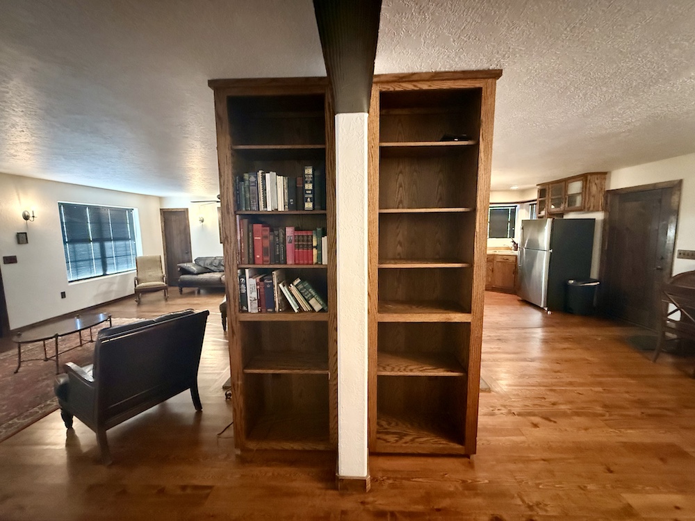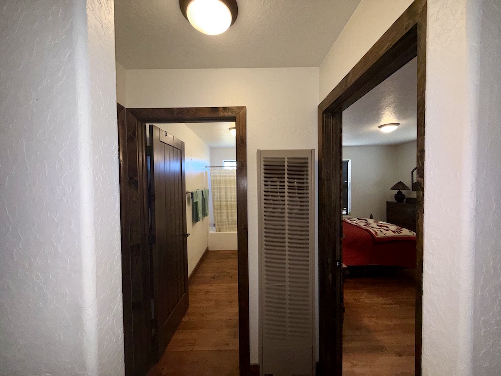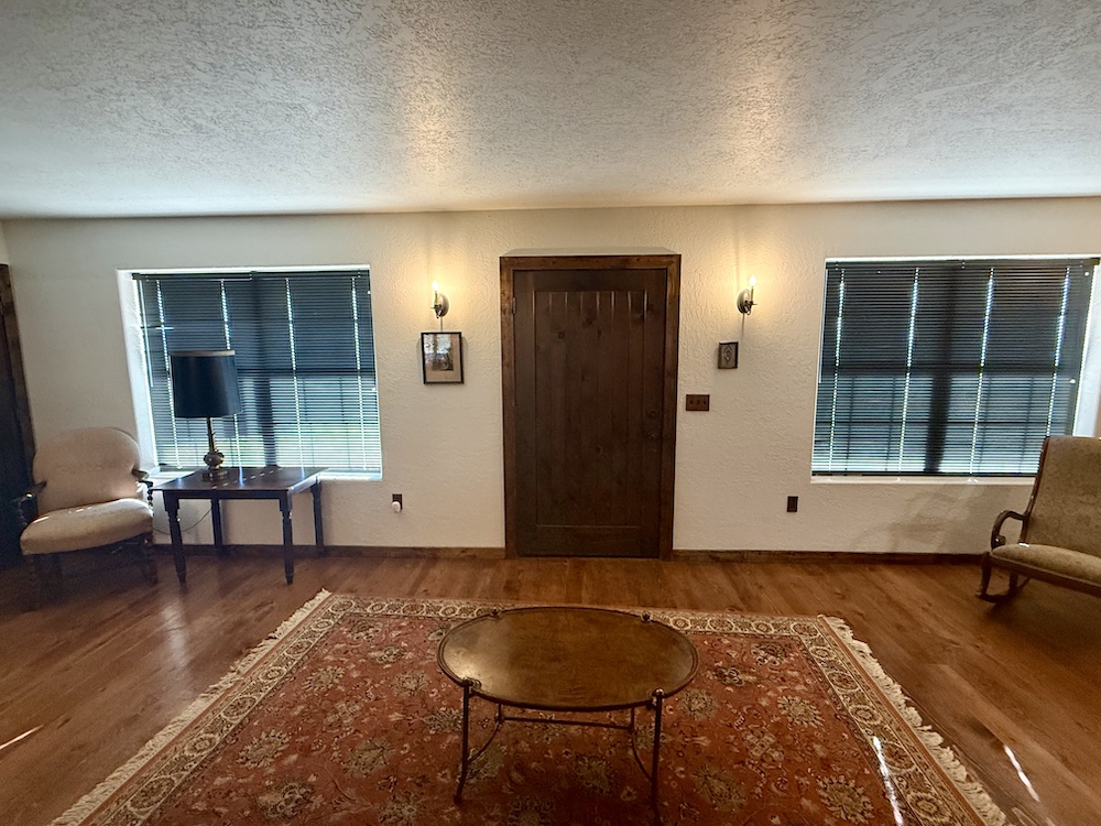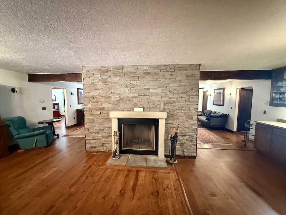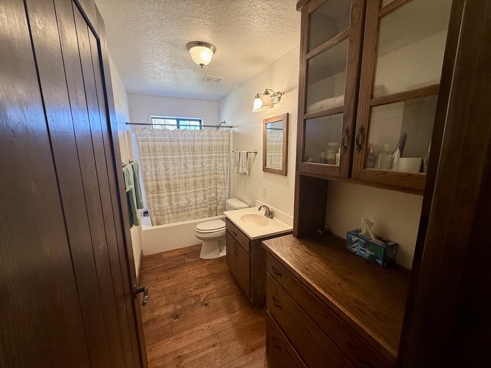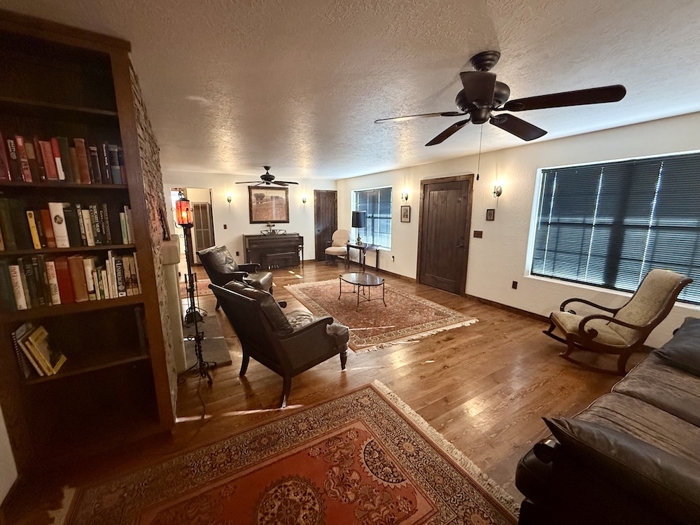 The Ranch-Style main house comprises 2,580+/- sq ft, including large porches with 1,813+/- sq ft consisting of heated living space. The spacious living, dining, and kitchen areas offer a unique fireplace in the center of the home, separating the open spaces. The 708+/- sq ft outbuilding consists of a 348+/- sq ft one-car garage with laundry space and hookups, as well as a 360+/- sq ft guest room with a 3/4 bathroom. Heating to the living areas is provided by propane wall heaters. The attractive flooring in the house consists of dark brown wood flooring, along with solid wood doors, giving the interior of the house a satisfying ranch-house look. Roofs are protected by long-lasting metal roofing. Water is supplied via the onsite water well, along with electricity onsite and a septic system. Propane is provided via a storage tank.