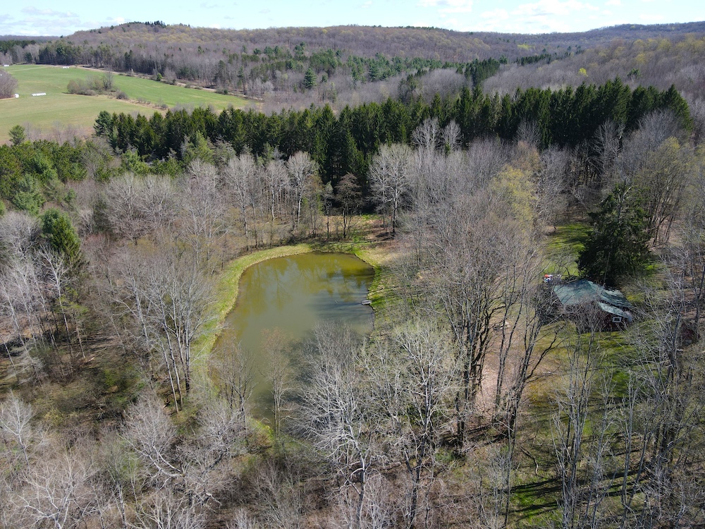 Tucked away from busy roads, the setting is quiet, secluded and ideal for a hunting camp, weekend getaway, or future residential build. As you enter the property, you’re welcomed by a charming cabin overlooking a scenic pond, complete with a groomed lawn area that creates a peaceful, park-like atmosphere.