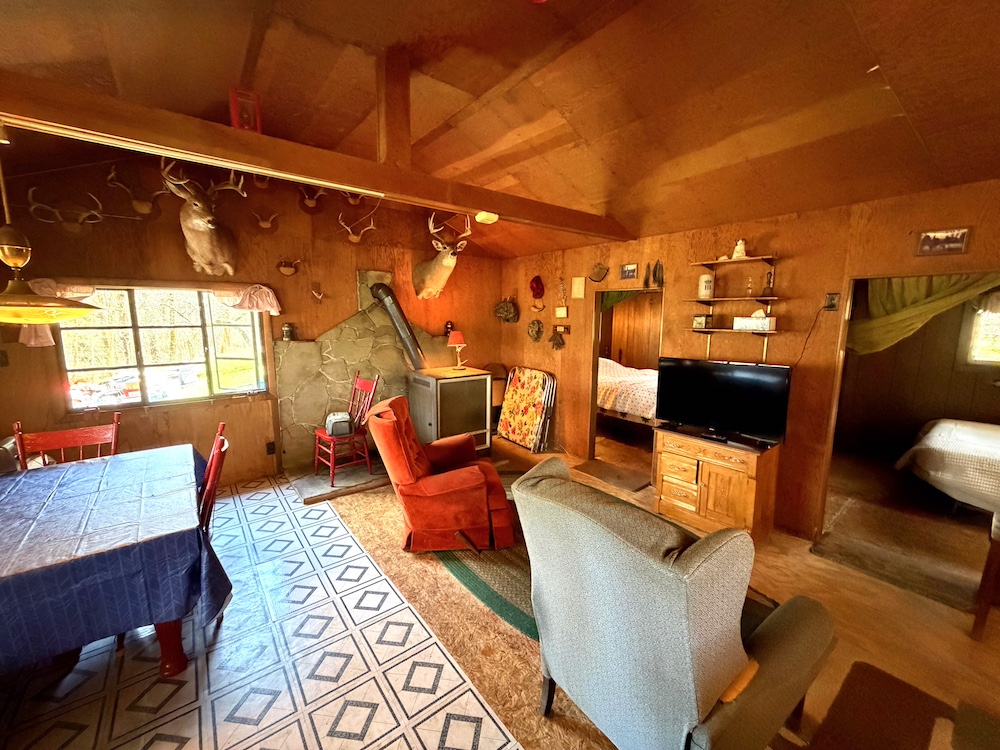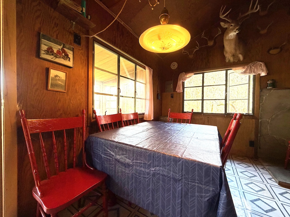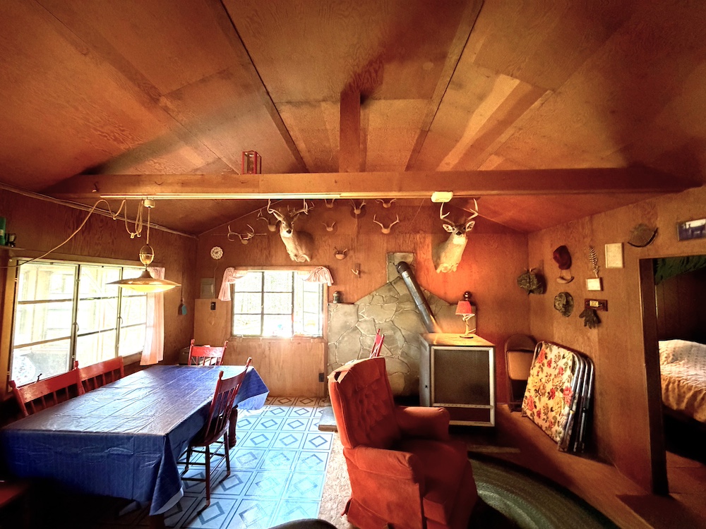 The existing 576 sq ft cabin, originally built in 1960, includes 3 bedrooms, 1 bathroom, an open kitchen and common area, plus an enclosed porch - perfect for relaxing after a day outdoors. Utilities include spring water, septic, Oil fuel and Electric and Wi-Fi on site.