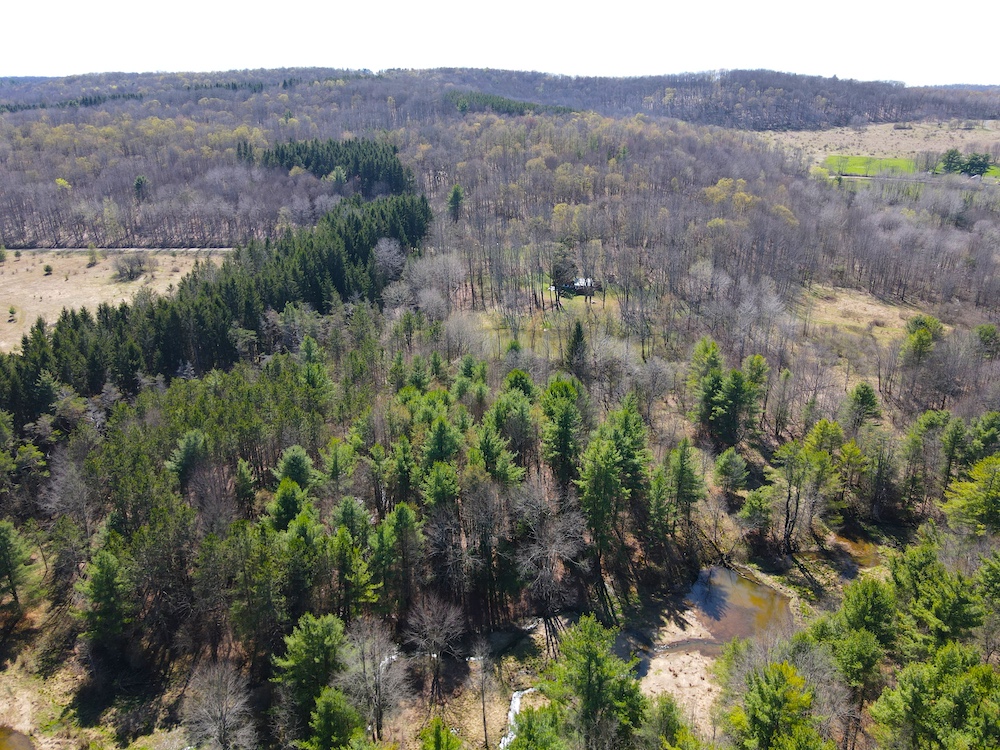 A well-established network of old logging roads - previously traveled by side-by-side ATV - remains open and easily navigable, offering excellent internal access throughout the land and doubling as ready-made walking or riding trails.