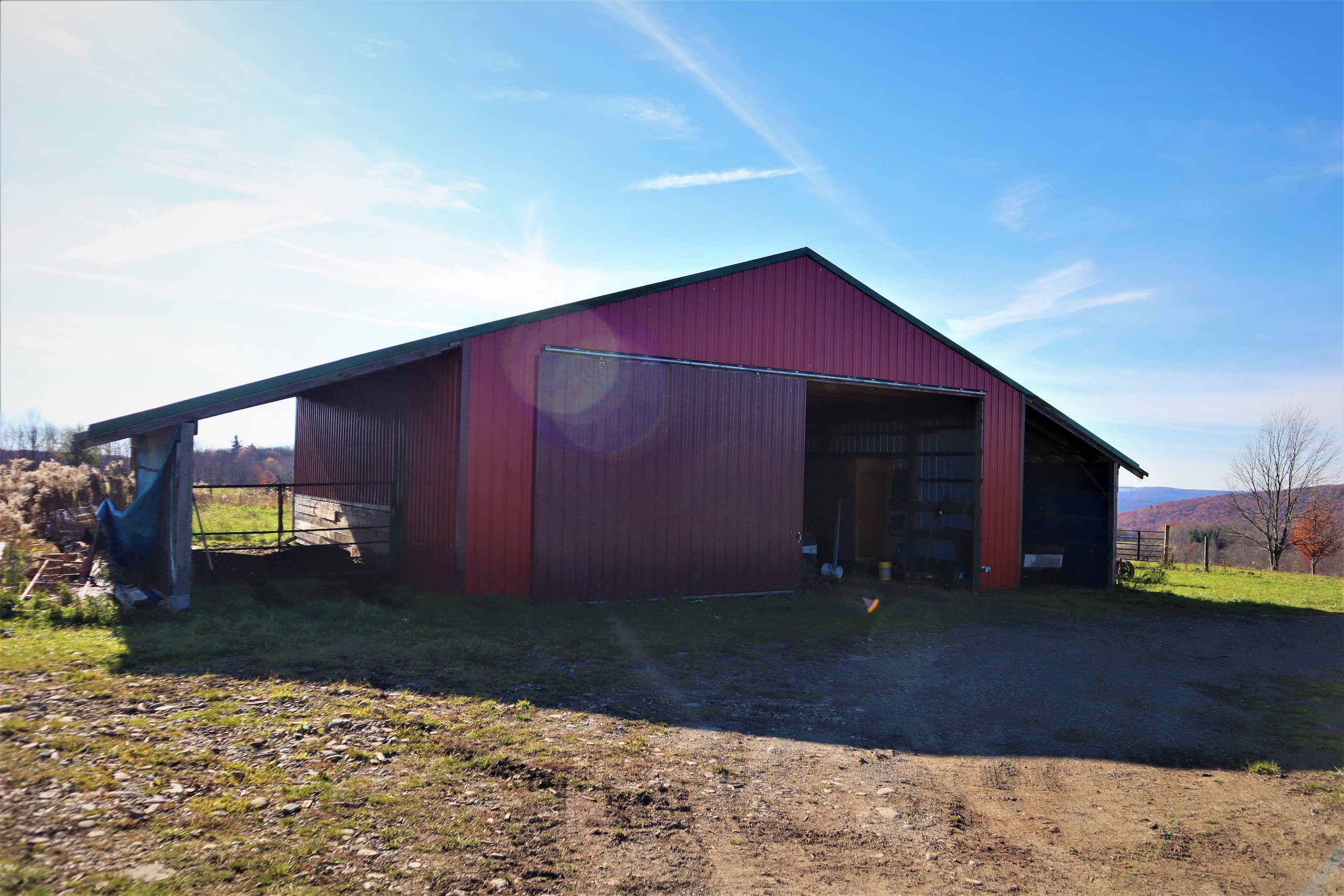 We are pleased to present his beautiful Timber frame ranch with spectacular views on acreage in Scio, NY. From the mountain top, you can see as far as you can see over rolling hills and valleys with no obstructions from cell towers or windmills in your view in any direction. Custom built with country living in mind, this open concept home is a model of the ranching lifestyle and a place where your troubles just melt away when you come home to your retreat on the mountain top. The complex joints and heavy caber construction are amazing with a great blend of wood, metal, and modern accents of texture that blends perfectly in over 1560 sqft of living space. This two-bedroom also has a loft that can be an office or made into a third bedroom, while the attached garage can be expanded into another living space of over 660 sqft of the bonus room, perfect for a man cave, a media room, or entertainment room with a bar already in place to watch football games. The master suite has a large walk-in closet and ensuite large bathroom with a river stone shower. The second bedroom additionally has its own walk-in closet. The main floor laundry is central to the Ranch, while the open concept kitchen is complimented with a large walk-in pantry. The huge Kitchen has a 4'x4' island and a bonus of 15 feet of counter space with a built-in glass range and drawer dishwasher that is barely noticed with custom facings. A central feature of the kitchen is a beautiful hammered copper double sink and matching faucet. The living room boasts 16' vaulted ceilings and faces west southwest with three large windows to let light in and bathe the room with evening sunsets, while the dining room has a French door compliment facing the same direction, ready for a walkout deck to enjoy an afternoon iced tea, or to enjoy the gentle summer the breeze. Outside, the property has two outbuildings as part of the hilltop retreat. The first is a garage/shop with a fully operational commercial meat coolers. The second is a garage/barn with two lean-tos for housing your ATV, recreational equipment, a camper, or heavy equipment. Priced well to sell, Check this mountain top retreat out! Timber frame ranch 1560 sqft (2017)-16' vaulted ceilings - French doors (walkout) - Spectacular mountain views - Open concept - Pastures (41 acres) - Mixed hardwoods - Garage/Barn 40' x 40' with two lean-to's - Garage/shop 24' x 40' (2014) - Ponds - Kitchen 15' x 20' - Dining 15'9 x 9'1 - Pantry 11' x 5'7 - Living room 22'7 x 12'10 - Bedroom 1 14'5 x 11'10 - Walk-in closet 11'11 x 7'1 - Bedroom 2 13'6 x 11'2 - Loft/office 19'3 x 11'6 - Bathroom 11'6 x 6'10 - Garage 29' x 23' - Scio central schools - GMO's to convey - Propane heat - Woodstove - Taxes $5,209 (2021) - 1,745 ft Road frontage - 2.1 miles NE of Scio, NY - 5.8 miles SE of Belmont, NY - 5.9 miles North of Wellsville, NY - 1.6 miles South of Plumb Bottom State Forest (1,666 acres) - 3.2 miles West of Vandermark State Forest (2,384 acres)