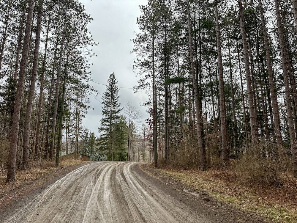 - Dirt road leading to the property