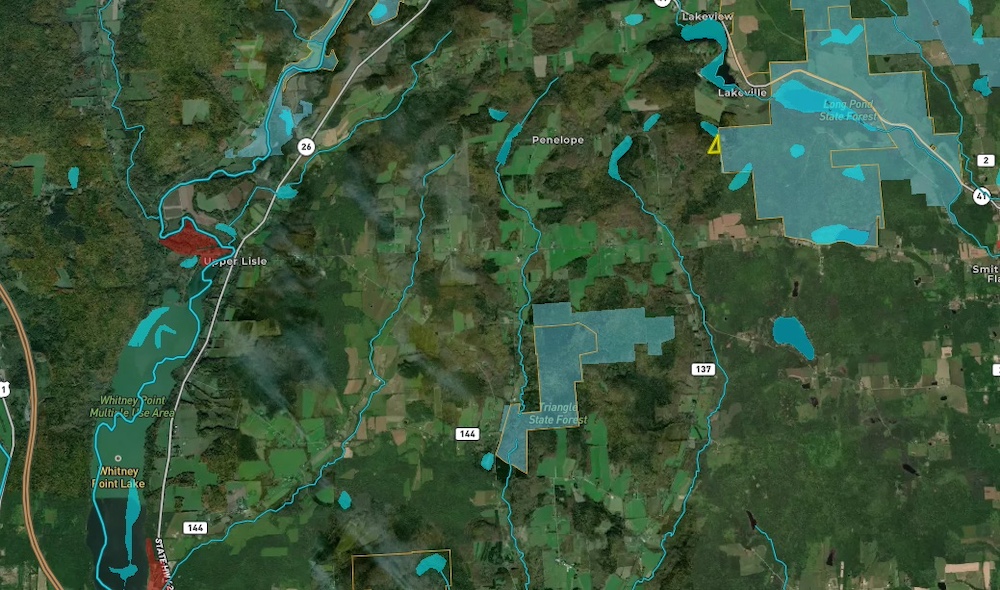 Beautiful off-grid location to set up a camp for recreational purposes. Located just off a seasonal road, this parcel has had a new entry added to allow easy access to the property. With minimal clearing, you can bring your camper or build a cabin while you enjoy all the great outdoors has to offer. The land has a trail straight to the rear of the property that is already open, making hiking, biking, or riding an ATV easy. Several locations could be planted, creating food plots for you hunters. Lots of animal sign were seen on a recent walk through. This property borders on one side with the 3,250-acre Long Pond State Forest, which offers hunting, hiking, camping, fishing and a snowmobile trail running through it. Water recreation and fishing is available within 10 minutes from Dorchester Park on the Whitney Point Reservoir, a 1200-acre lake renowned for walleye, bass and panfish among many other species and offers a public beach and public boat launch. Whitney Point Multiple Use Area is located there as well, with an additional 4546 acres of NYS Land to enjoy. This very secluded location is still only minutes away from Whitney Point and many outstanding amenities in the Binghamton, Cortland, Oneonta and surrounding areas, highlights include multiple state parks, lakes with public beaches and boat launches, shopping, baseball venues, museums, cultural and performing arts and many different culinary delights with everything from high-end restaurants to micro-breweries to family-style eateries. NYC/George Washington Bridge is only 3.5 hours away. Recent survey was completed, and lines are marked to easily identify the borders.