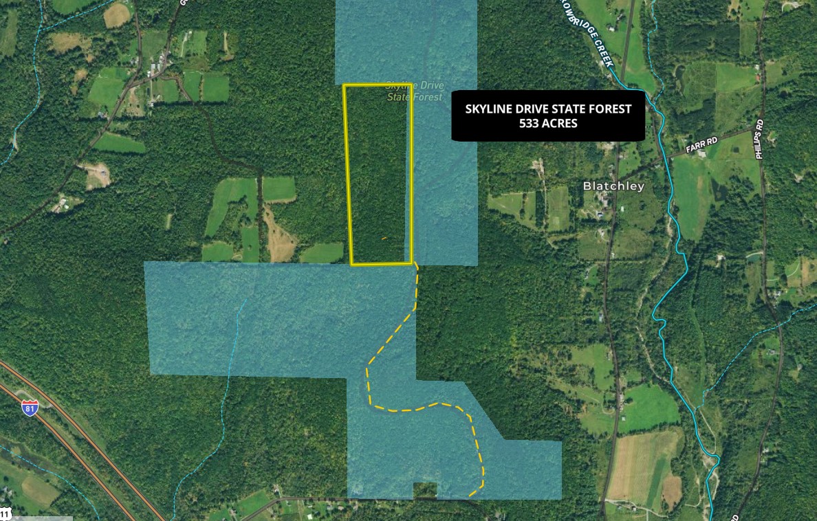 - Borders on 3 sides the Skyline Drive State Forest providing additional 533 acres for hunting, camping, fishing, trails for hiking, biking, cross country skiing