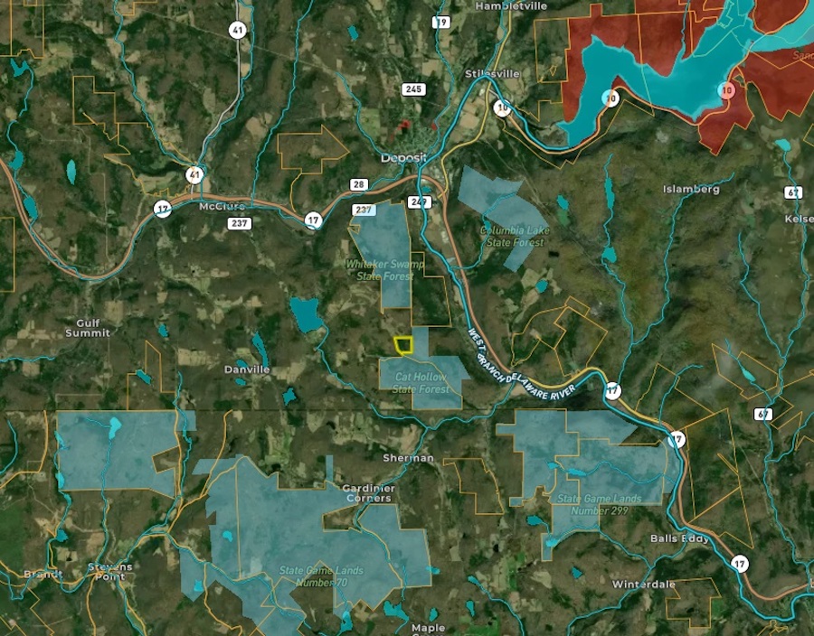 This largely wooded property would be a great place to build your own private camp or getaway. The property is at the entrance of a seasonal road. Perfect for wildlife, the smaller trees, bushes and undergrowth provide shelter. There was an abundant whitetail sign when the property was recently visited. Wild apple trees are present as well. A small creek runs through the property and feeds a larger pond just over the bordering NYS land. It is the perfect place to set up a base camp for hunting in the fall and fishing near the West Branch of the Delaware River, known for its trout. Electric is close by on the neighboring property. Amenities and shopping are close by with the town of Deposit only 5 miles away, Binghamton NY is 30 miles away. NYC/George Washington Bridge is just 2.5 hours away. This is a wonderful private sanctuary, great for hunting parties, nature lovers, or an amazing family getaway.*** Subject to subdivision ** Additional acreage is available