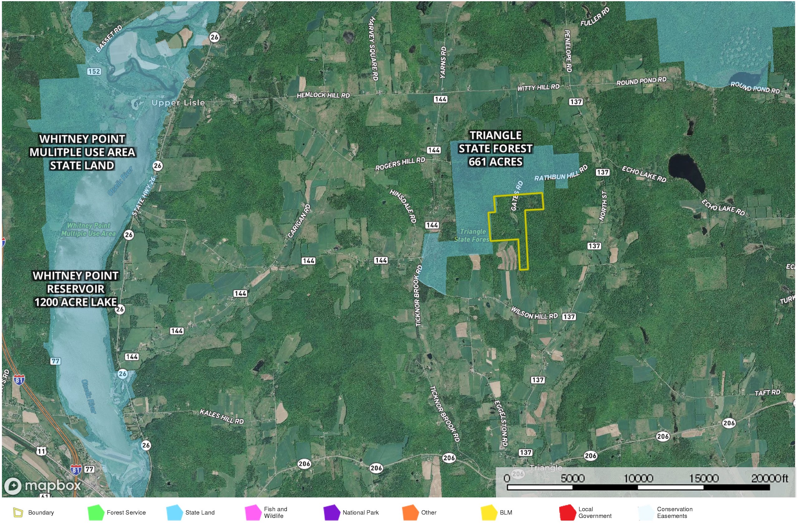 - Also nearby is Dorchester Park on the Whitney Point Reservoir, a 1200 acre lake with NYS boat launch and outstanding fishing for walleye, bass and panfish. The state park is only approx 15 min away and adjoins the Whitney Point Multi-Use State Land.