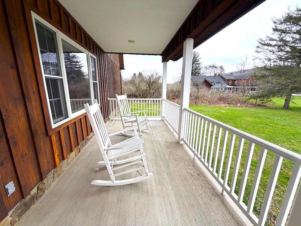 - Private patio and covered porch area