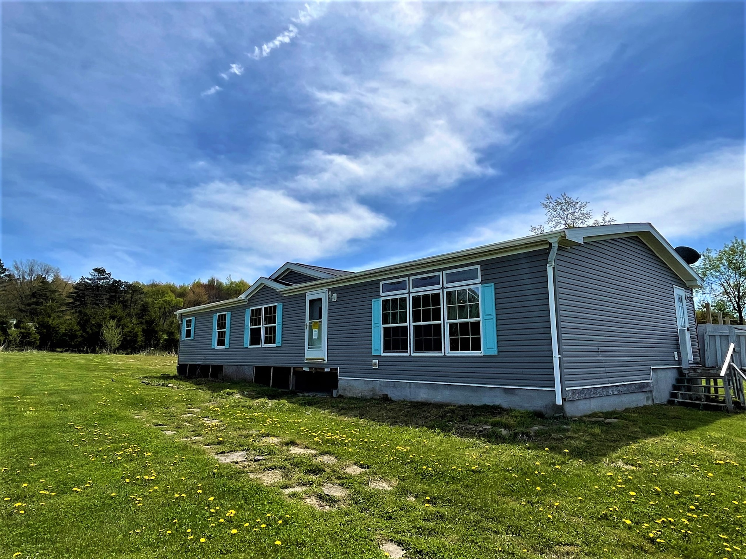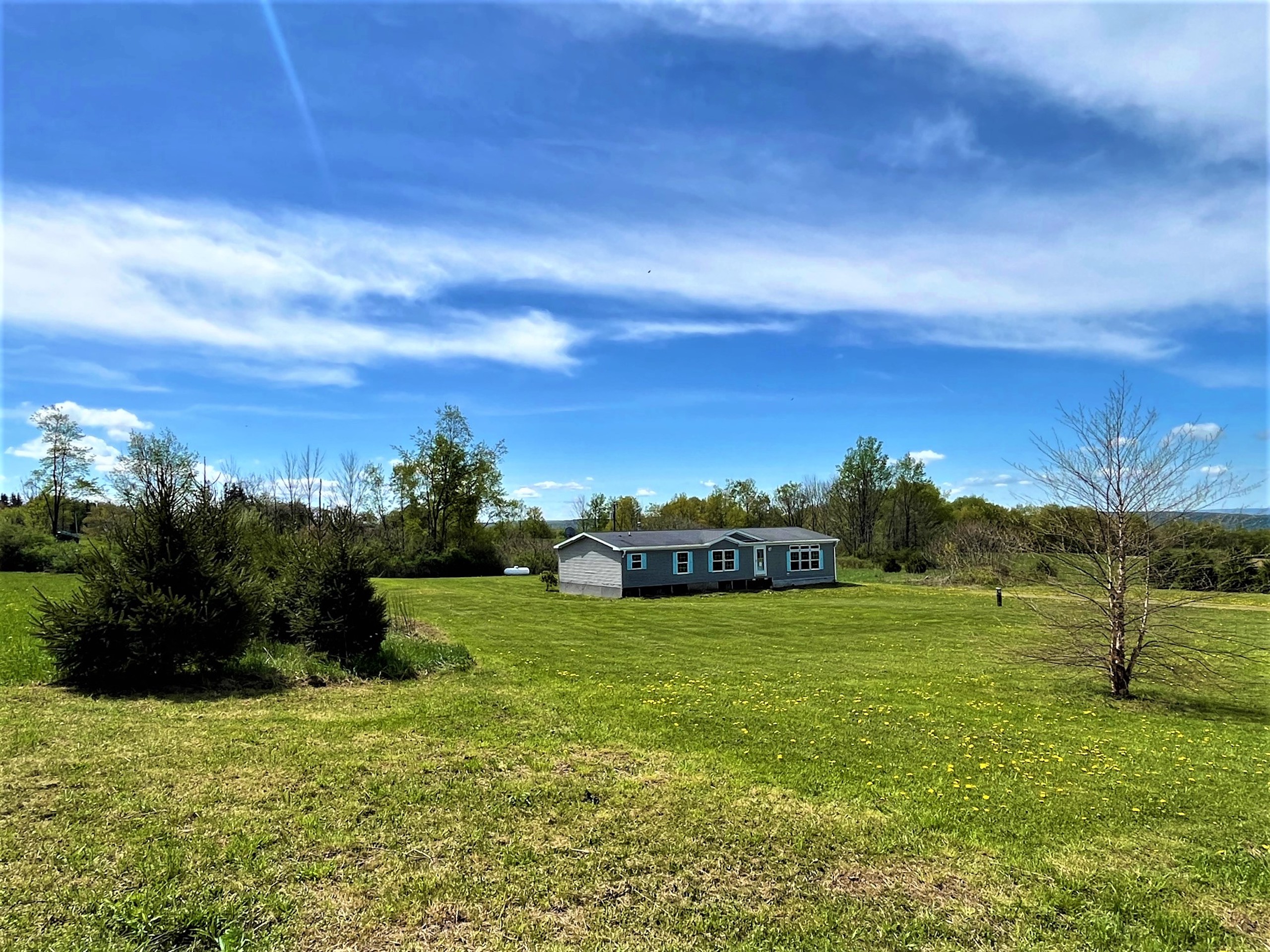 Looking for country living and a quiet road. This property is a beautiful location with views to the rolling hills of Cattaraugus county near the Zoar valley. This listing is a bank sale, foreclosed and re listed. Due to a water leak, the home has been stripped back and carpets removed. With a handyman's touch, this ranch home can be polished back to its original condition with an open concept kitchen, dining room and large great room flowing together to make an even bigger impression. The back yard has a detached deck, perfect for even more privacy and summer barbeques. A stone driveway leads you to the home, with ample room to add a garage or pole barn opposite the house. With white spruce planted for screening, on the east and west edges of the lawn define a lovely yard space for privacy. With so much potential, this property is a great opportunity to transform it into a gem. GMO's Convey, SOLD AS IS. -Country living -Hill top location -Double wide manufactured Ranch -Deck -Planted white spruce trees -875 ft Marek Road Frontage -350 ft Drake hill Road Frontage -GMO's convey. -Taxes $2,951 (2022)