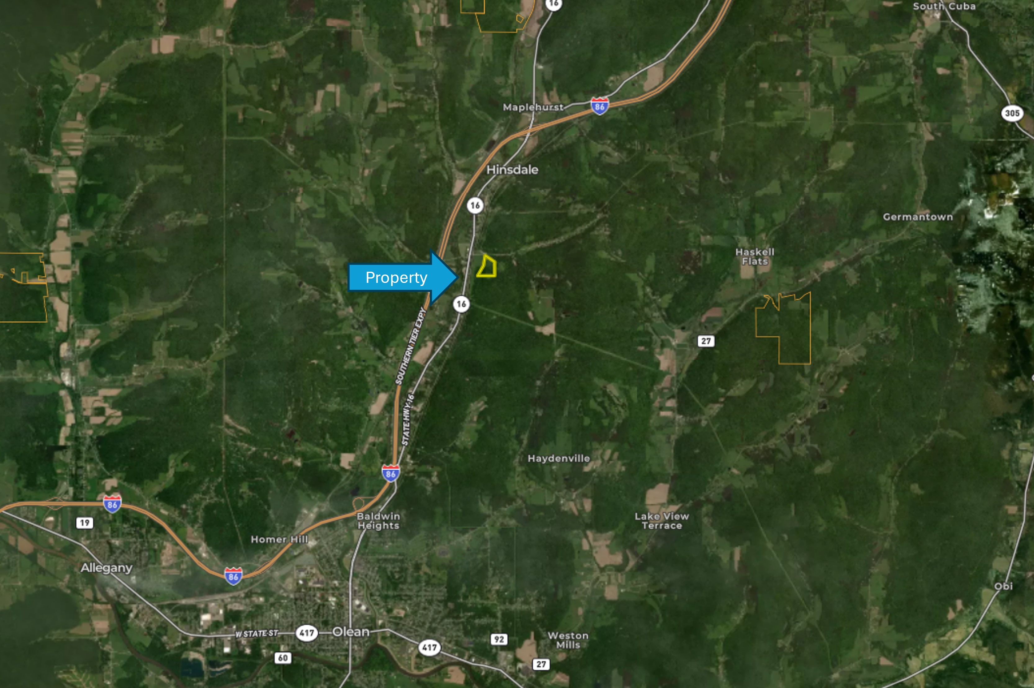 We are pleased to present a beautiful hilltop hideaway that boasts spectacular views of the valley below and enchanted mountain a far. This property is located just minutes from Olean and Hinsdale town centers and also offers a wonderful 2.8 acre building lot. A newly built cabin is perched in the center of the property on a third of an acre of yard, taking in all the views around. The cabin has solar powered lights, an LP vented heater and separate restroom. The covered porch is a perfect place to relax with an iced tea or morning coffee. The property has a network of ATV trails for access to stand locations if deer hunting is your interest. There is also a blueberry patch supporting 14 bushes on the building lot. Check this one out before it's gone, it is priced well to sell! ADDITIONAL INFORMATION: GMO's convey, Electric at the road, Shared driveway, Cabin, 1045' to Route 16, 1.2 miles to Hinsdale, NY, 4.6 miles to Olean, NY