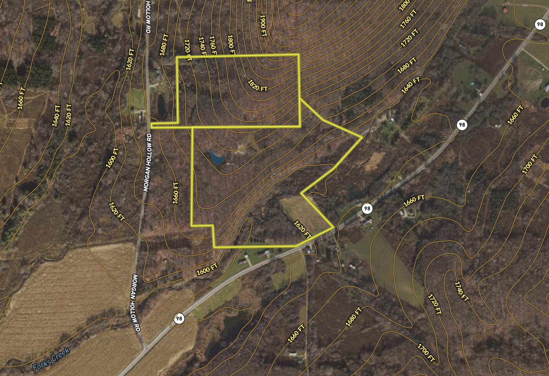 A private driveway entrance from Morgan Hollow Road leads you to a secluded and private camp where a single wide mobile home is situated overlooking a pond surrounded by woods. The mobile home is currently used for a recreational camp. A secondary build site has already been cleared and a Private Drilled Well, Electric, and Armstrong Internet are on site. This is a great opportunity for your getaway destination or a place to build a cabin or home of your dreams. Two tax parcels are a part of this sale, which includes road Frontage Route 98. If entering the property from Route 98 there is an open field that leads to a flowing stream before transitioning to thick brush where wildlife sign is abundant. A mixture of tree species is throughout the property and there is a diversity of locations to hunt with trail access throughout. Seller will convey a Survey from 2016. All Gas, Mineral, Oil, Timber, and Surface Rights will convey. We look forward to showing you this great opportunity.