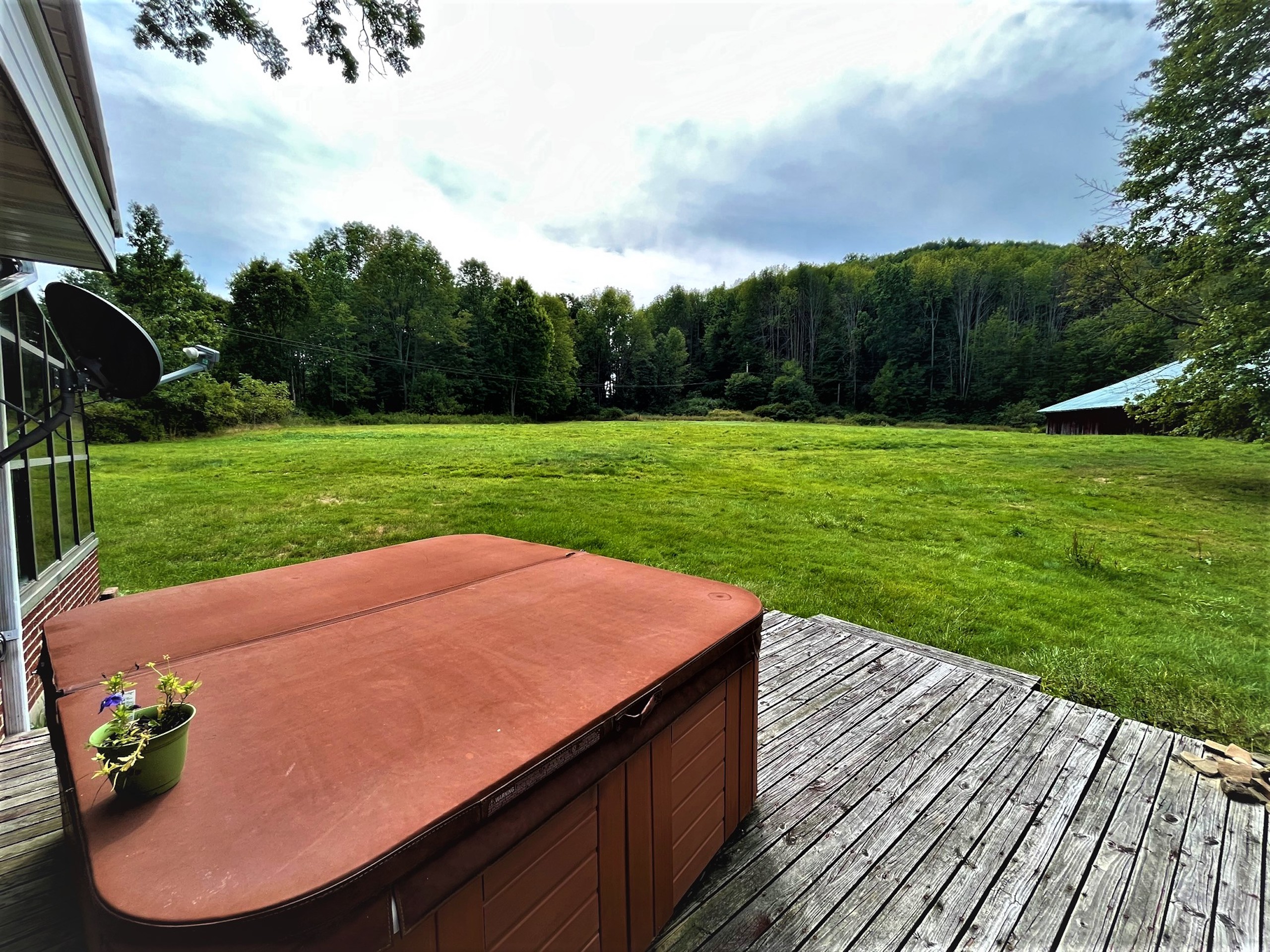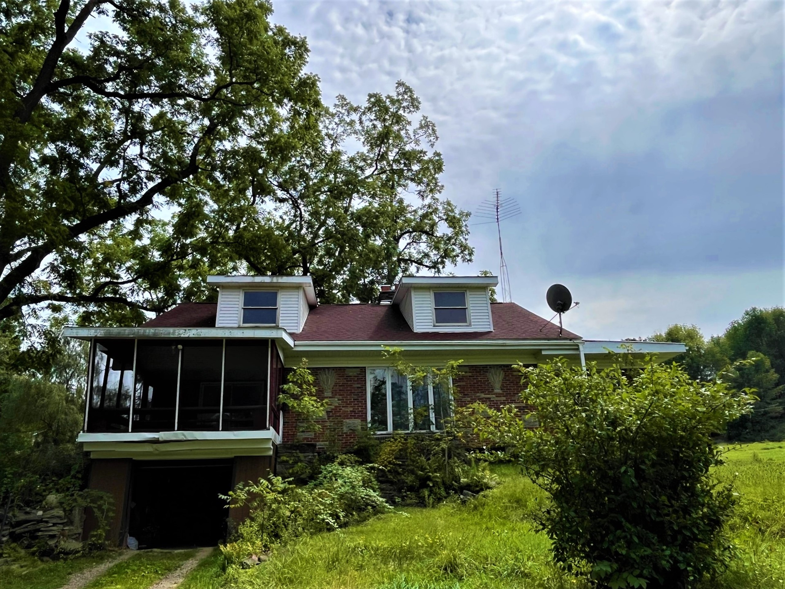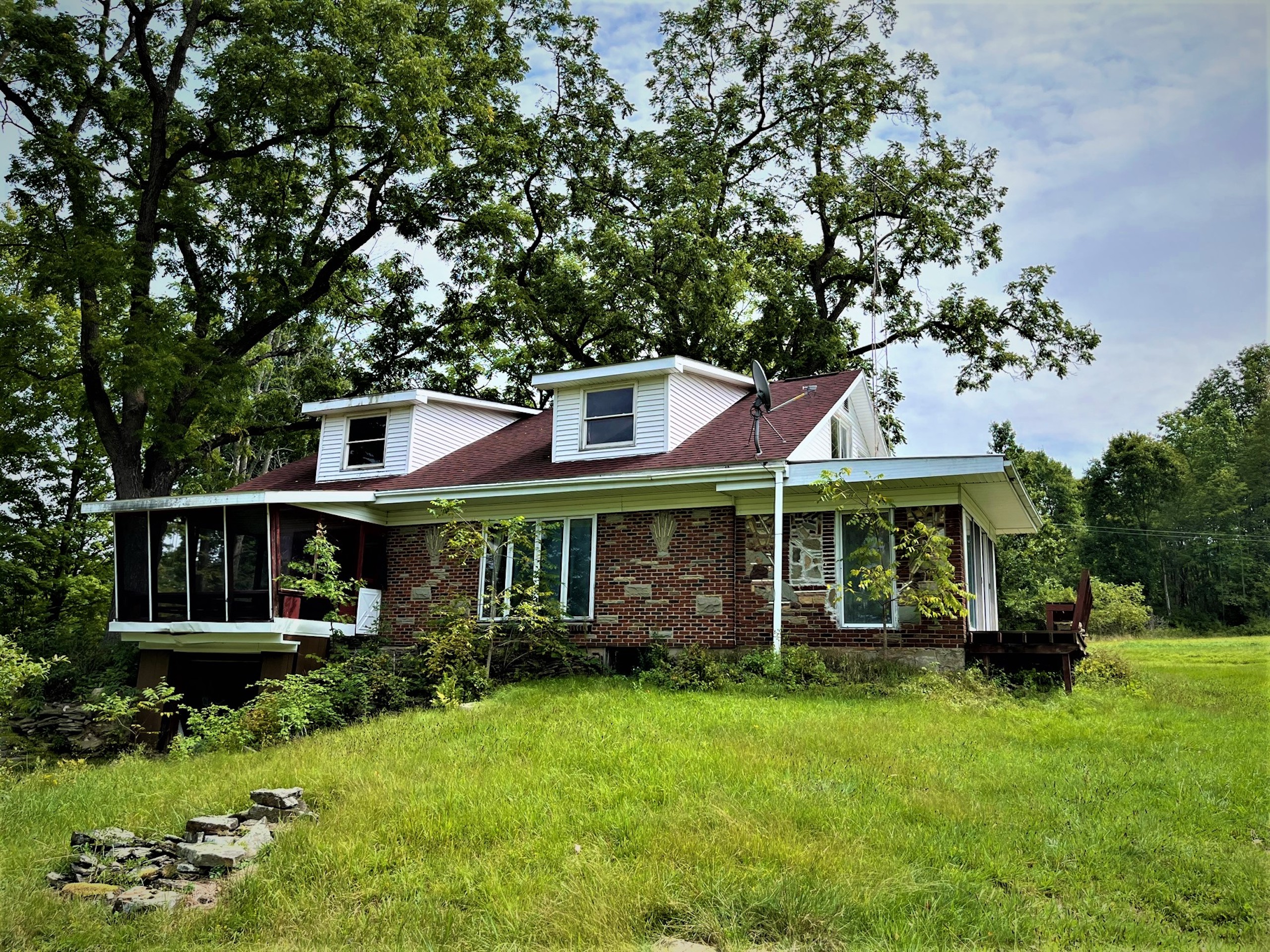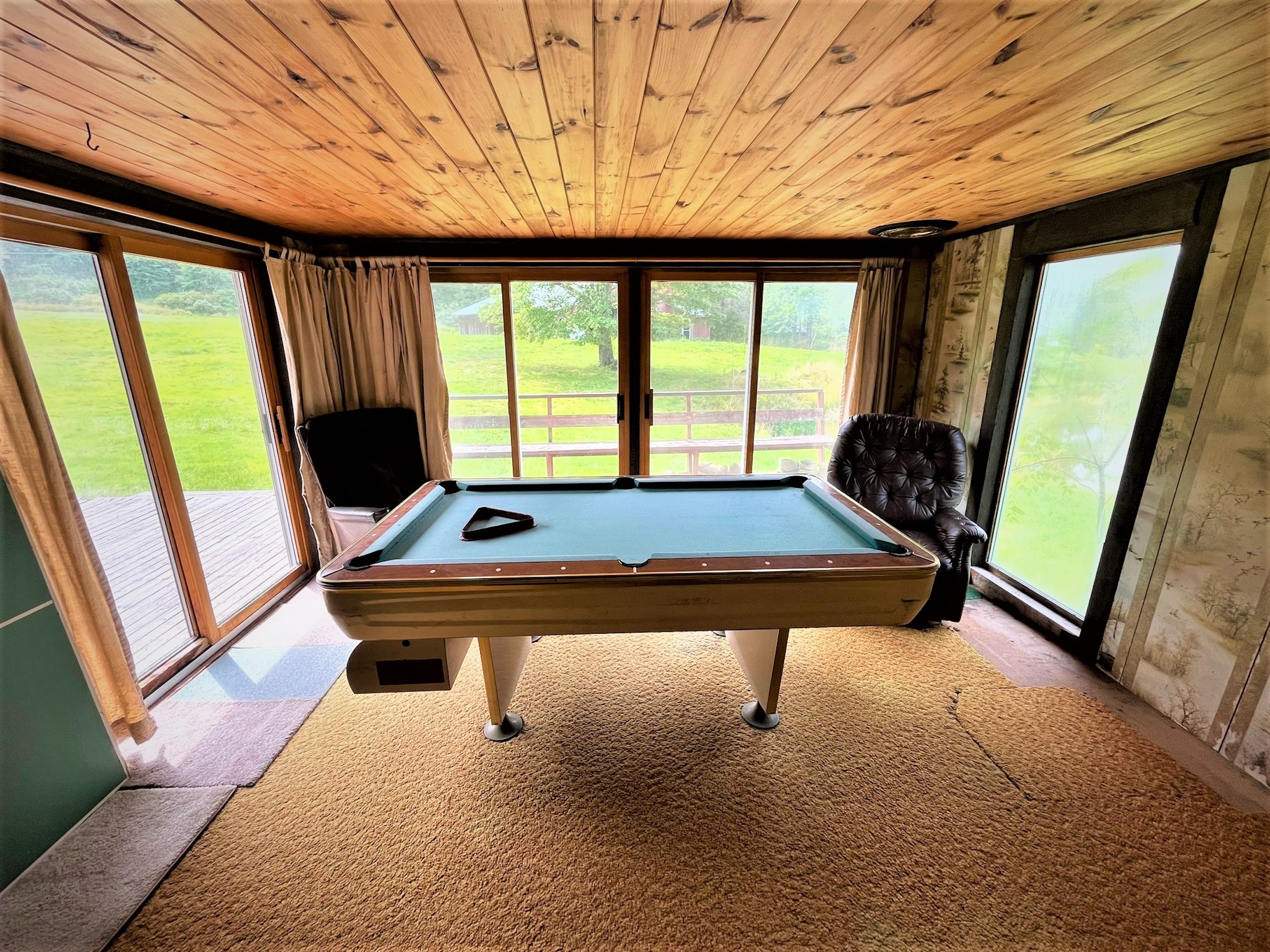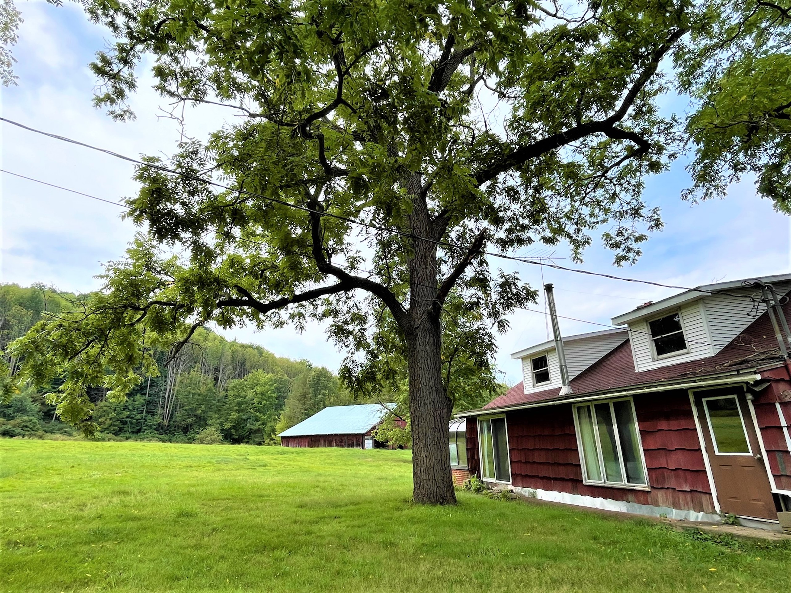 Looking for a small farmette close to town? This charming parcel is literally minutes from the center of town (Olean, NY) right on the Allegany River. Only 1.23 miles from downtown and 3.7 miles from St. Bonaventure University, this property could leave you thinking you are away or in the country, but you have all of the conveniences to city services. Nested up on a small hill, the home overlooks the Allegany River right out the driveway and has plenty of privacy and space for a small hobby farm for light animals or a couple of horses. The barn has six stalls, power and a water source, with approximately 1.9 acres of open space for a small pasture. A pond sits between the house and barn and has fruit trees planted on its bank. A small utility shed is also on the property, easily converted to a chicken coop or used for wood storage for the wood stoves inside the home. The house is a 1940 charmer that needs a little TLC and some updates, but the rooms are large and enjoy views over the property from each room. A nice feature of the home is a fully screened porch connected to the kitchen overlooking the river and property where breezy breakfasts and sunset suppers can be enjoyed outside, while a greenhouse/Florida room is featured in the back of the house to bump start a garden or enjoy sun and warmth in the winter months. A very large family room has large floor-to-ceiling windows gazing west looking over the pond and barn, where a cozy wood stove heats the front of the house. An extension of this room is an extra space where a pool table is found, with two sliding screen doors that leads to a back deck and hot tub with privacy. A living room and two bedrooms are on the rear side of the house, with a kitchen and dining room on the north side of the house. The second story is partially finished and could be converted and finished into two more bedrooms. The property comes with whole house contents, including a John deer riding lawnmower and three youth ATVs in the barn. (Excluding the large TV and speakers in the owner's bedroom) Priced well to sell, and offering country living on the doorstep of town, check this one out. Sold AS IS.