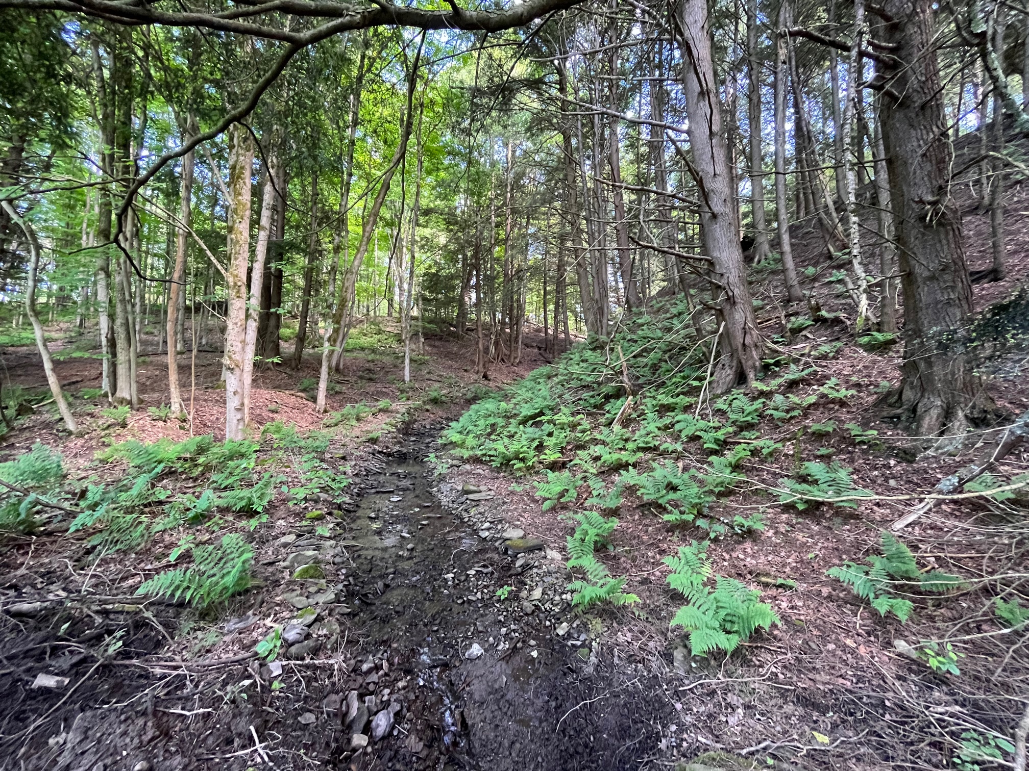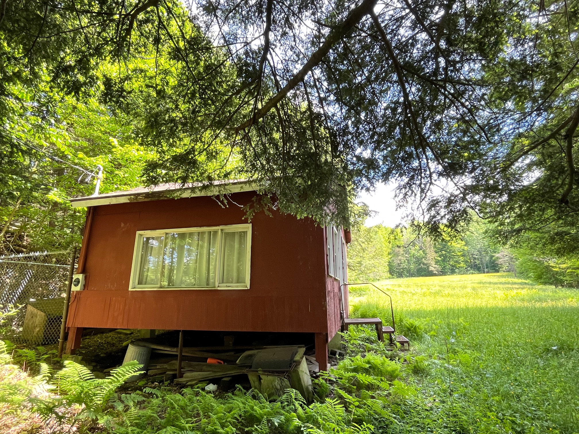 Nestled privately above a beautiful stream just minutes west of Little Valley, NY in New Albion, rests this scenic and quiet property overlooking a large field under the shade of huge pine trees and hemlocks. The field is a green fielded full of native grasses and some clovers that is a natural and popular feeding, bedding, and fawning destination for deer on the property. Deer sign was abundant and easy to observe. As you progress further into the property the southern portion of the land is a well populated mature stand of very large cherry, oak and maple trees that would have some marketable value. A large quarter acre pond is an attractive feature for deer and all wildlife who meander through the woods, and good location for a strategically placed tree stand. The cabin is located at the north end of the property, elevated off the ground and approximately 300 sqft, large enough for a good recreational cottage or deer camp. Below the cabin is a stream that flows parallel to Leon Road, where the relaxing sound can be heard while you sleep or nap. Above the cabin is a hidden location that is perfect for a tent camp location for summer nights under the stars. This property has been enjoyed for many years by the family as a summer retreat and in the fall a deer camp with many deer taken on opening day. Electric is on the property, connected to the cabin, merely needing to be updated. Priced well to sell, don't let this one get by you. - Private - Quiet - Pond - Stream - Timber - Field -Cabin - Electric - GMO's Convey - 1.2 miles to New Albion, NY - 5.3 miles to Little Valley, NY - 12.6 miles to Ellicottville, NY Taxes $684 (2021)