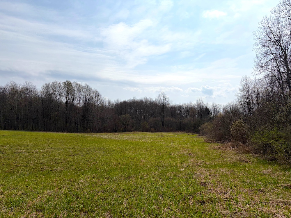 - Three open fields currently in hay production