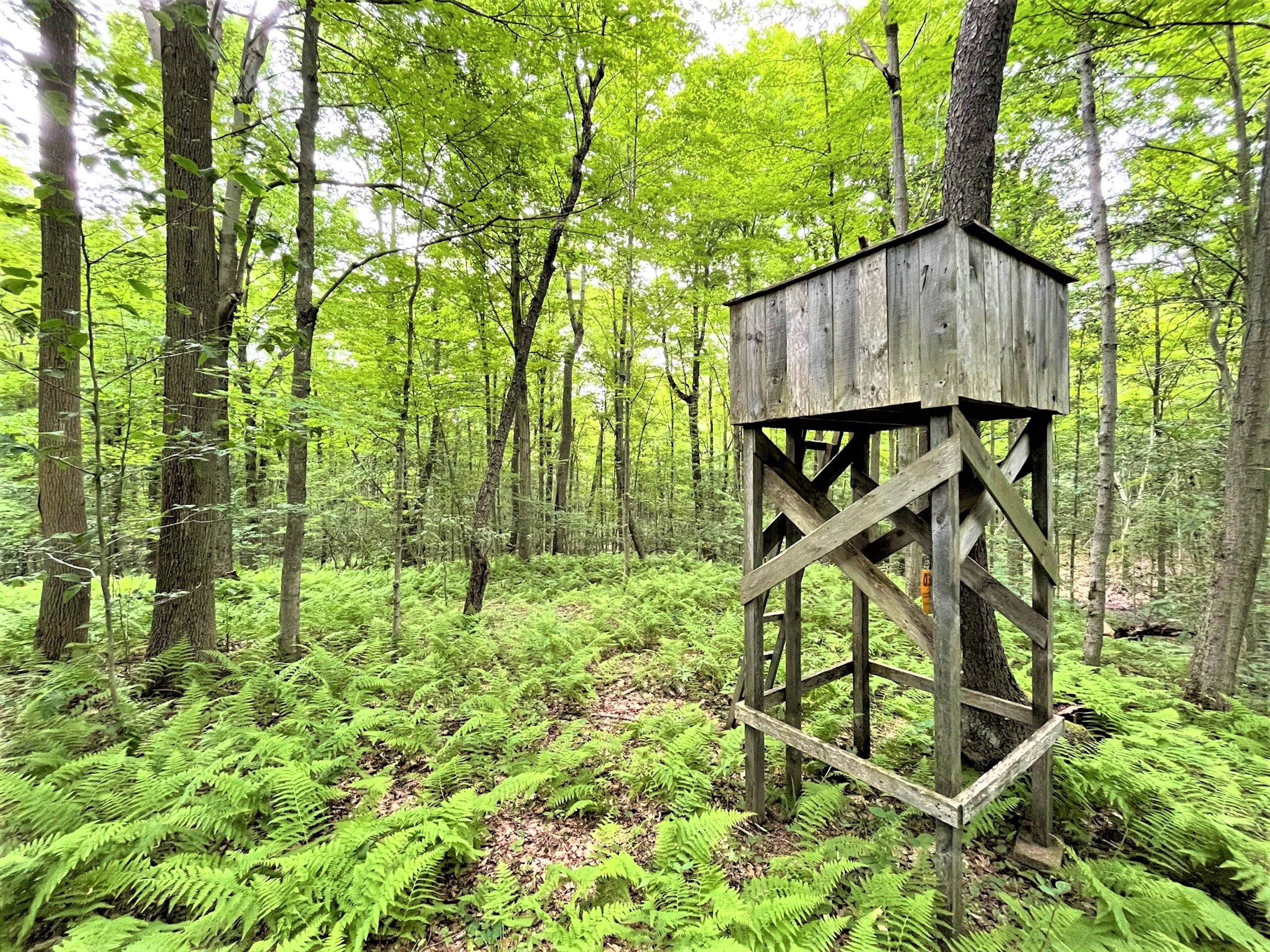 Looking for a head start on building your new home or just looking for a place to camp, hunt, relax and enjoy the seasons? This one is it! A newer built garage with all the equipment included... total turn-key for hunters needing or wanting to maintain a great tract of land with food plots, trail networks, high hardwood ridges, and lower hemlock creek bottoms. Upon entering the property, you are greeted with a large food plot straight ahead and a fully serviced garage to your left. The garage has a 400 amp service, easily enough to run a house, a camper, or other buildings you see fit. The entry is perfectly suitable for a building location for a home, and a little further up the road with over 600 feet of frontage, there are multiple building locations for houses, too, The trail network navigates the entire property for strategic access throughout the woods, and several stand locations are in place and will remain with the property. Deer and turkey hunting opportunities are excellent, and the property annually produces a great harvest of deer. This is a complete package opportunity, sold AS-IS; check it out; priced well to sell!