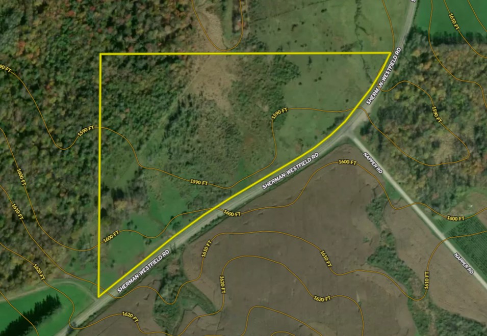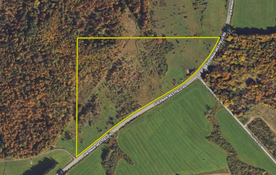 We are pleased to present a large building lot with mixed use opportunity just minutes north of Sherman. This property has 2,062 feet of road frontage gently wrapping a bend on the Sherman-Westfield road offering several places to build a house, add a cabin or camper or use as a rentable property for pasture. Currently the 10 acres of pasture is rented and contributes a portion of $1800/year towards carrying taxes on the property. This rent can be paired with the sister listing and parcel next door of 236 acres. (MLS# 11265929). As you view the property from the road, each end of the pasture would present a great location for a building site for a country home. Electric lines are at the road, and selecting a new driveway access is a breeze. Further into the property there is a gas well is also found here nearest the wood line. The GMO's will convey to the purchaser. Check this property out, close to town, this property has several uses for the outdoor enthusiast or to build a home with hunting at your back doorstep. ADDITIONAL INFORMATION: GMO's convey, 2,062 ft road frontage, Electric at the road, Building locations, Food plot locations, Deer hunting, 3.1 miles to Sherman, NY, 6.7 miles to Chautauqua lake, 7.1 miles to PA line, Close to Westfield, Peek-n-Peak Ski Resort, Findley Lake, Sold AS IS.