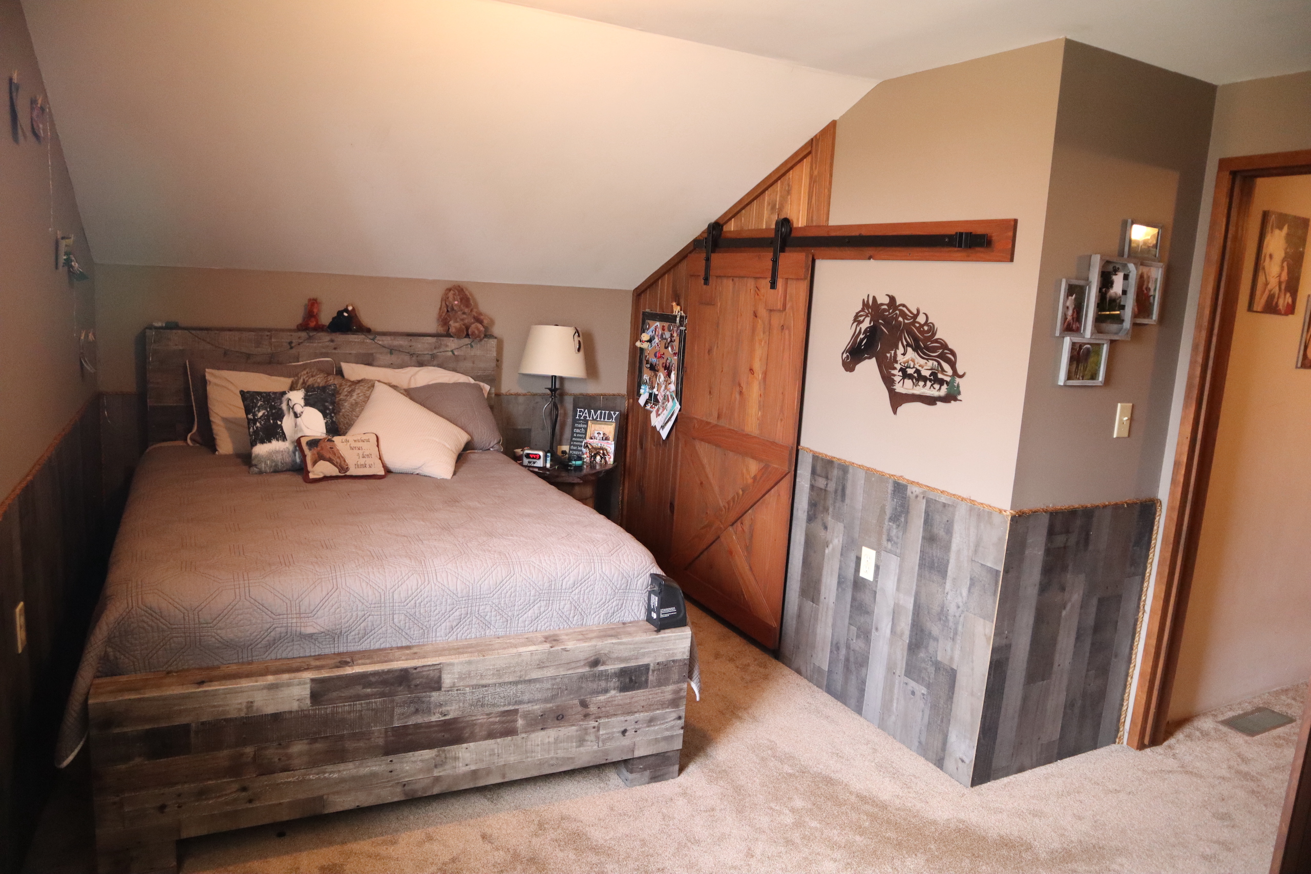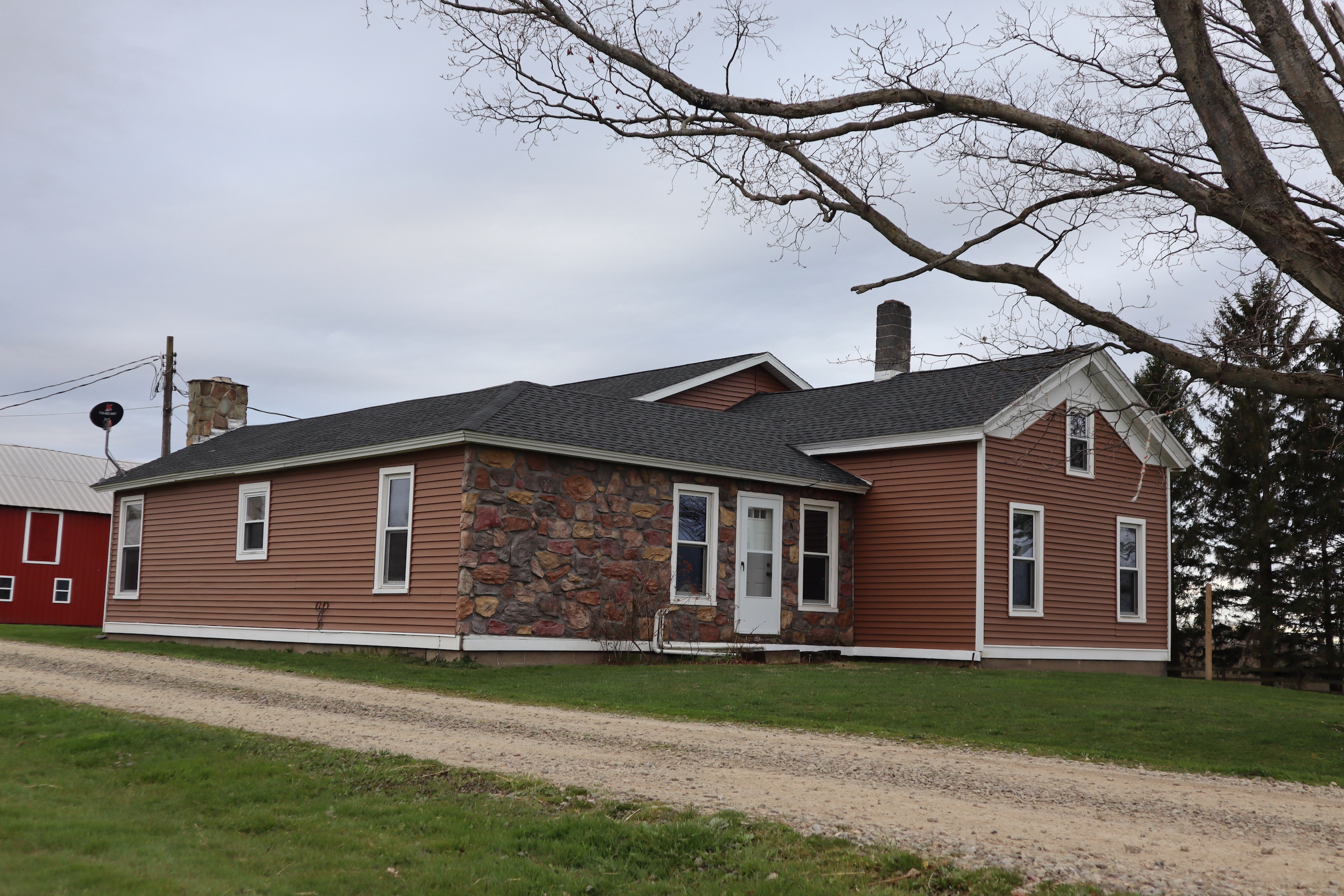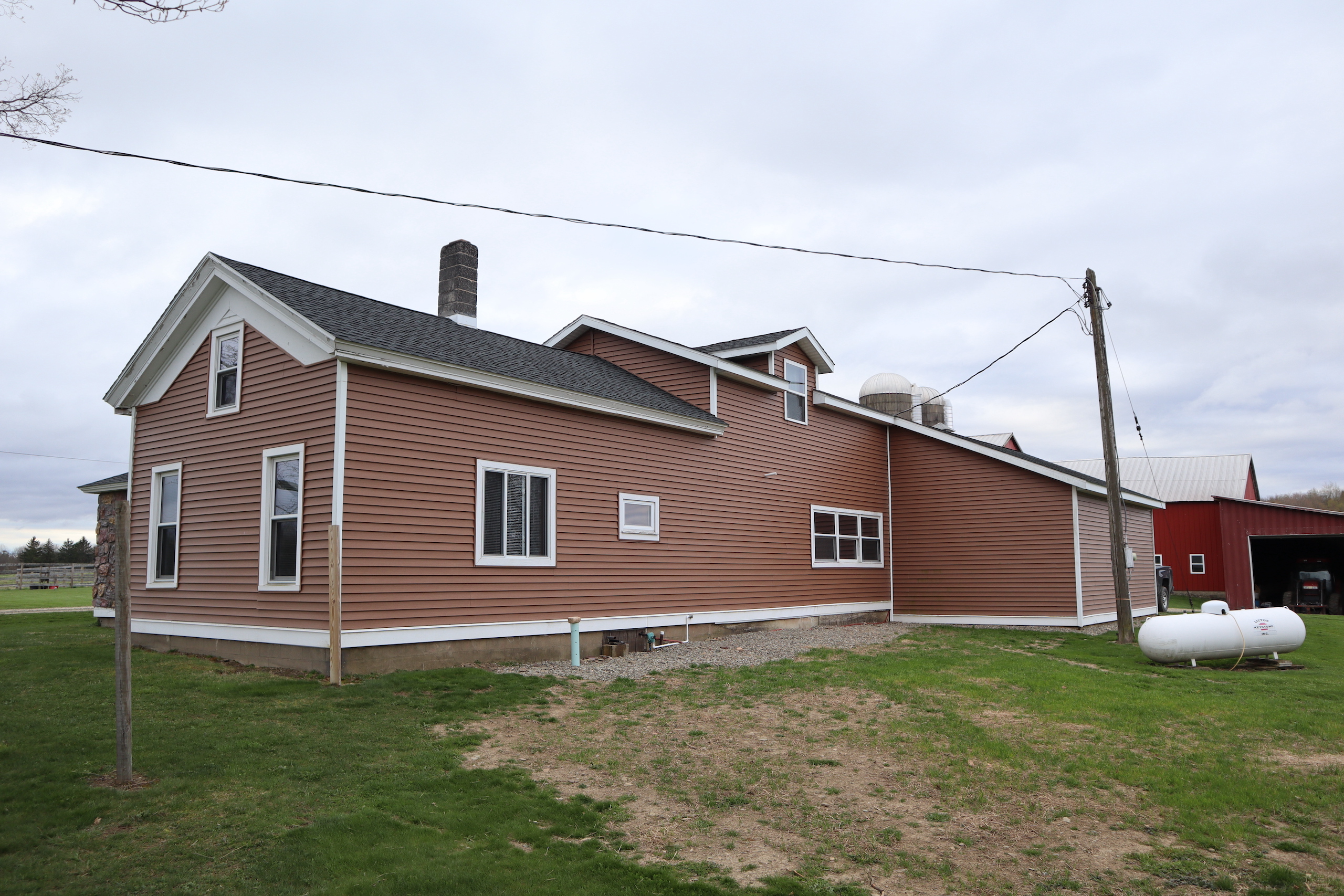 Morning sunrise and evening sunsets bath this spectacular farm, bosting pride of ownership and immaculate décor awaiting your discovery on this beautiful and active farm. This 1880 farm home has been meticulously renovated, decorated, and detailed in every way with inspiration from log home living and country life magazines. You are immediately impressed by the open concept design with tongue and groove wood walls and heavy beam exposed truss ceilings for a BIG ROOM feeling. Warmed by a fieldstone hearth and heated floors in the 22' x 15' kitchen, enjoy meals in the dining room under custom-made light and lamp fixtures. Meal preparations are a breeze, and storage abounds with 28 feet of running countertop and cupboard space. The 24' x 15' great room connects the open space with a second fieldstone wall feature leading to the 16'x 12' master bedroom with an 11' x 7' ensuite bathroom. The rustic and western theme carries upstairs, where a 23' x 16' second bedroom is found with its own 9' x 8' bathroom. Across the hall is a bonus loft-style bedroom suitable for that secret hideaway space for children to play in or use as another bedroom.