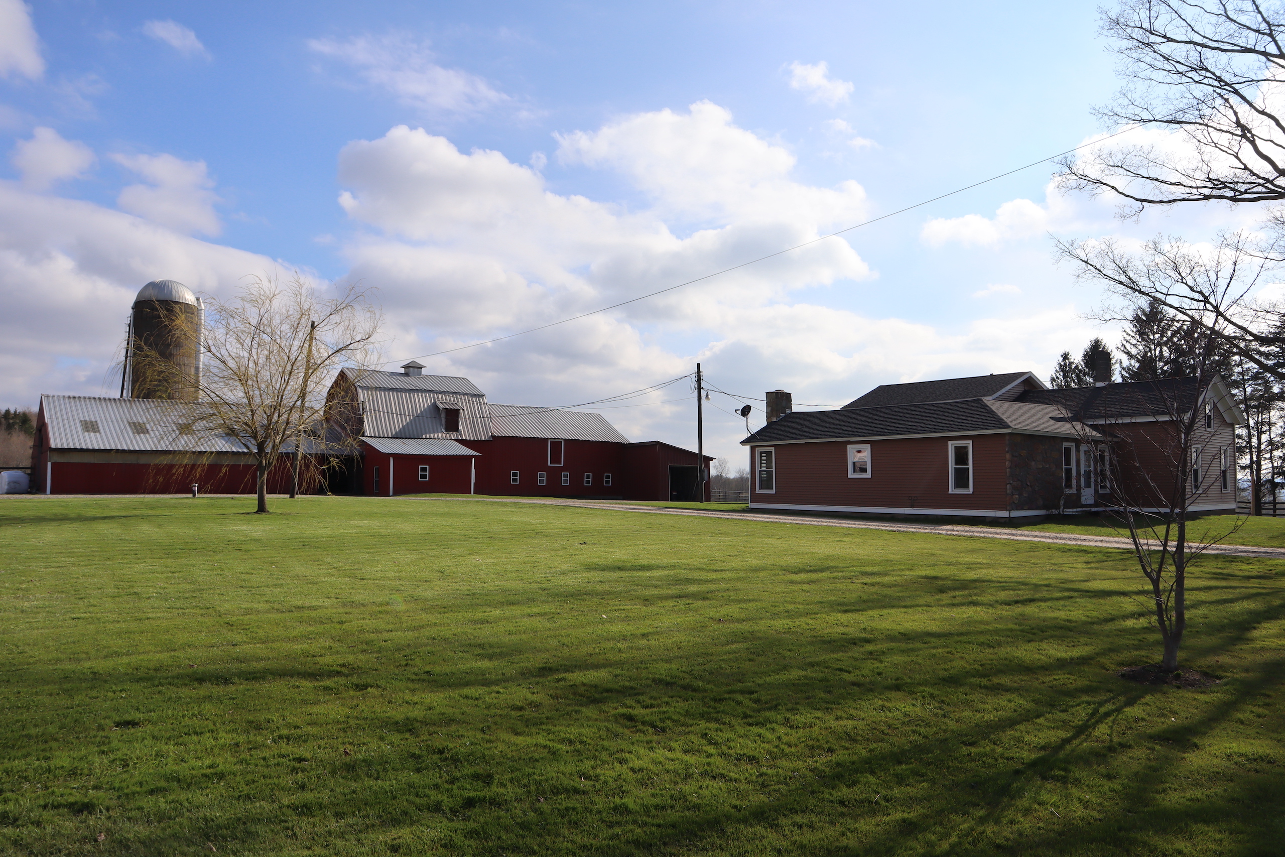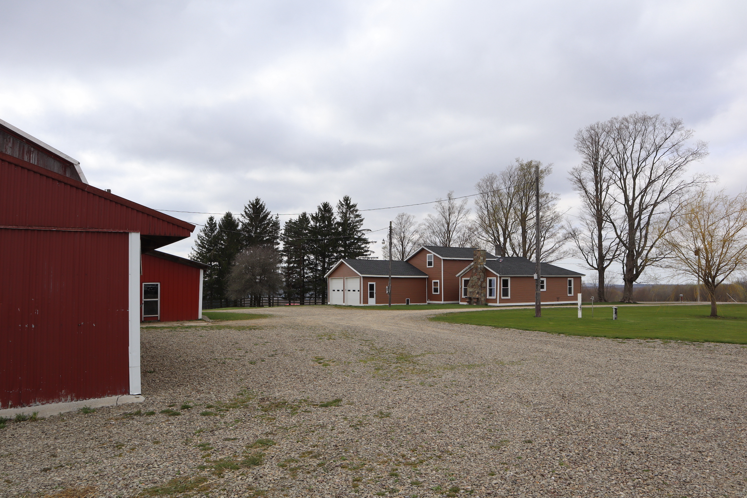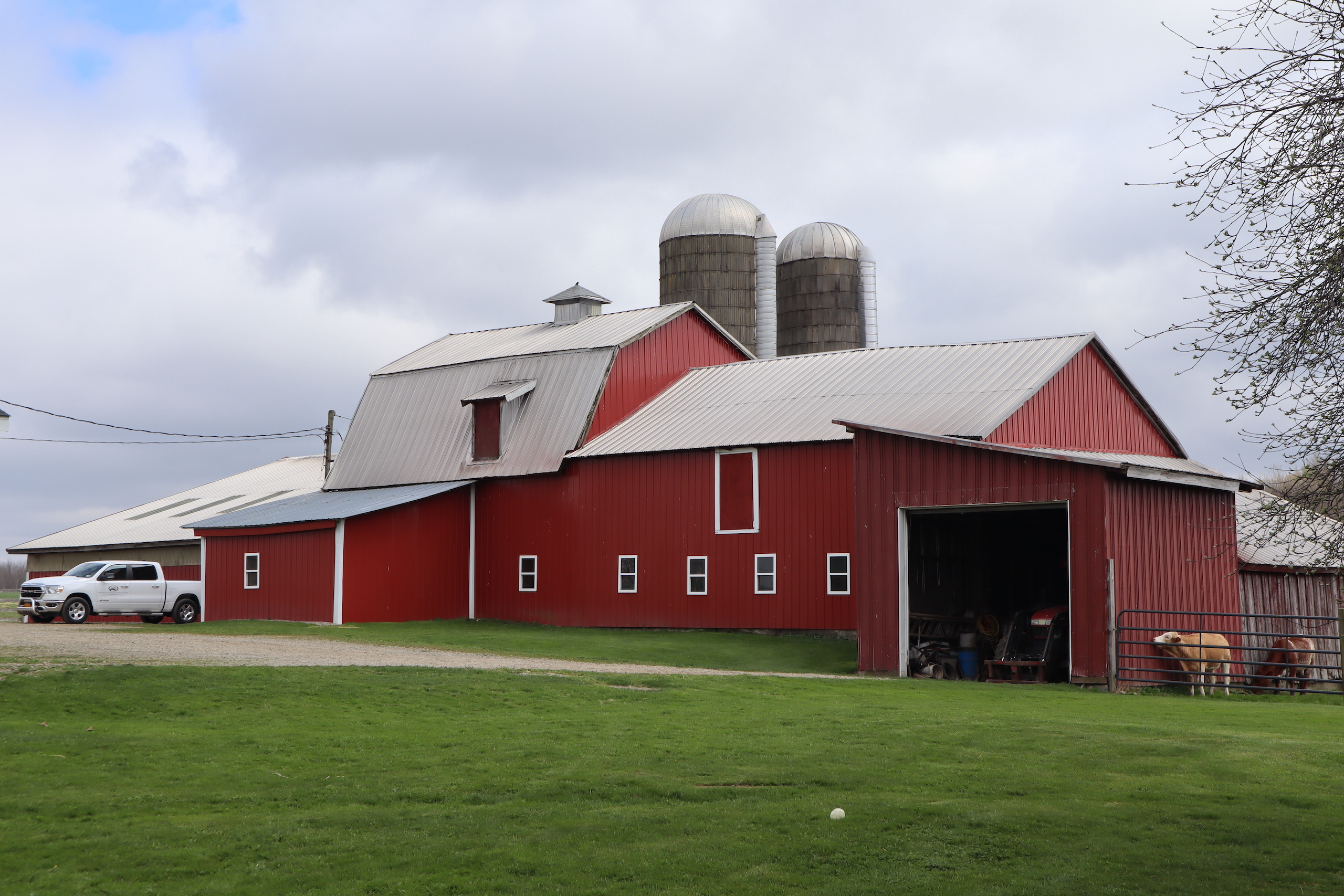 The working farm operation is not excluded from the owner's sense of organization and workflow. The 150' x 50' barn houses 65 head of Simmental, Simmental/Angus, and Simmental/Herford beef cows and can support up to 90 animals. (The cattle are negotiable). This farm could easily be used for horses or light animals too. Breeding stalls, loafing pens, headgates, squeeze chutes, loading chutes, etc., are all staples of an operation this big. The silos were constructed only ten years ago. The farm also has two New holland skid-steers, a New Holland manure spreader, and a Case/IH Cx100 tractor on-site to complete the day's work. (These are also negotiable). A newly constructed 60' x 48' steel barn was recently built (2017) and can store a class A coach, RV's, ATV's tractors, boats, ten cars, or additional land and farm equipment. The north side also has a carport for even more canopied space.