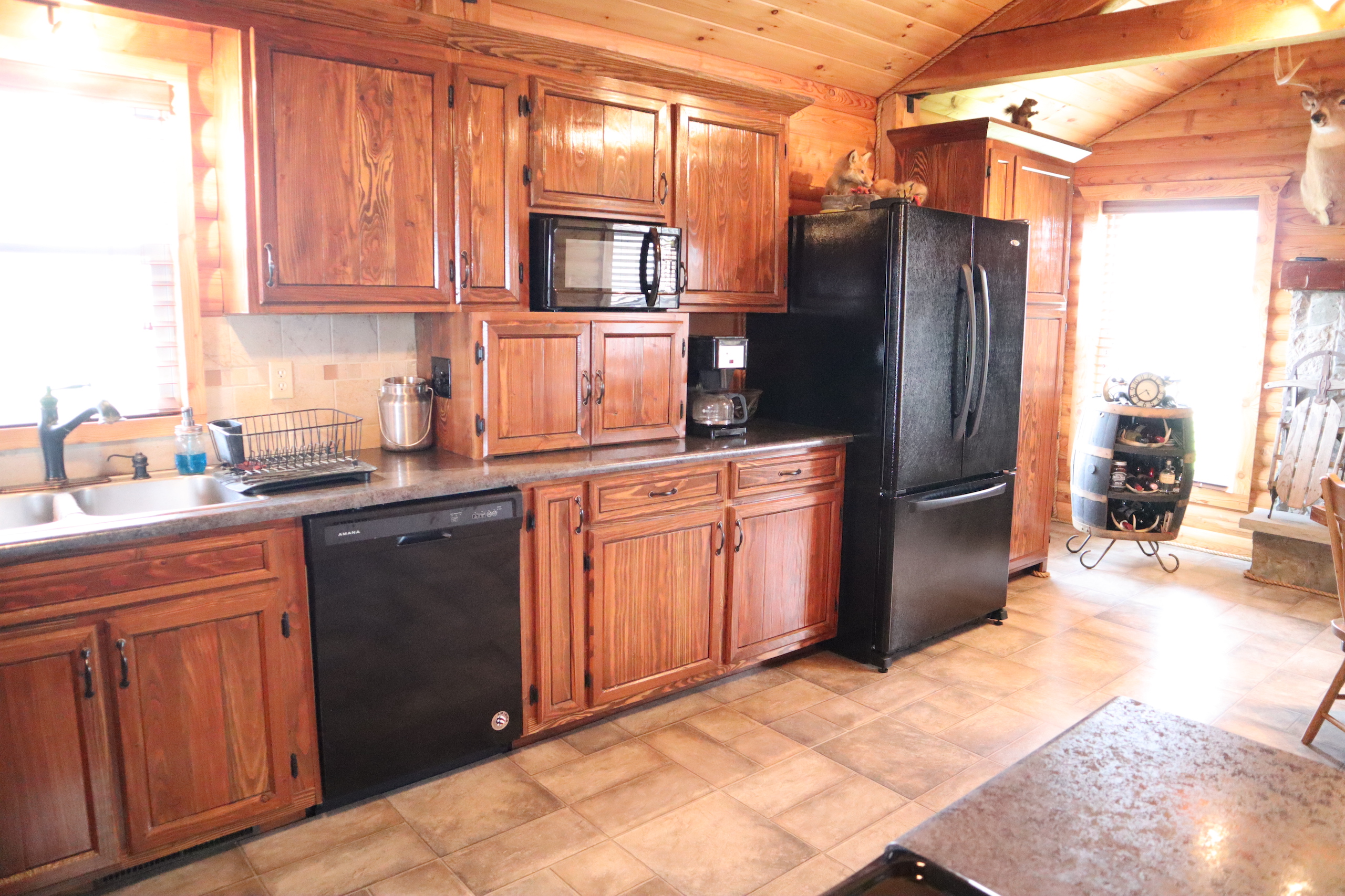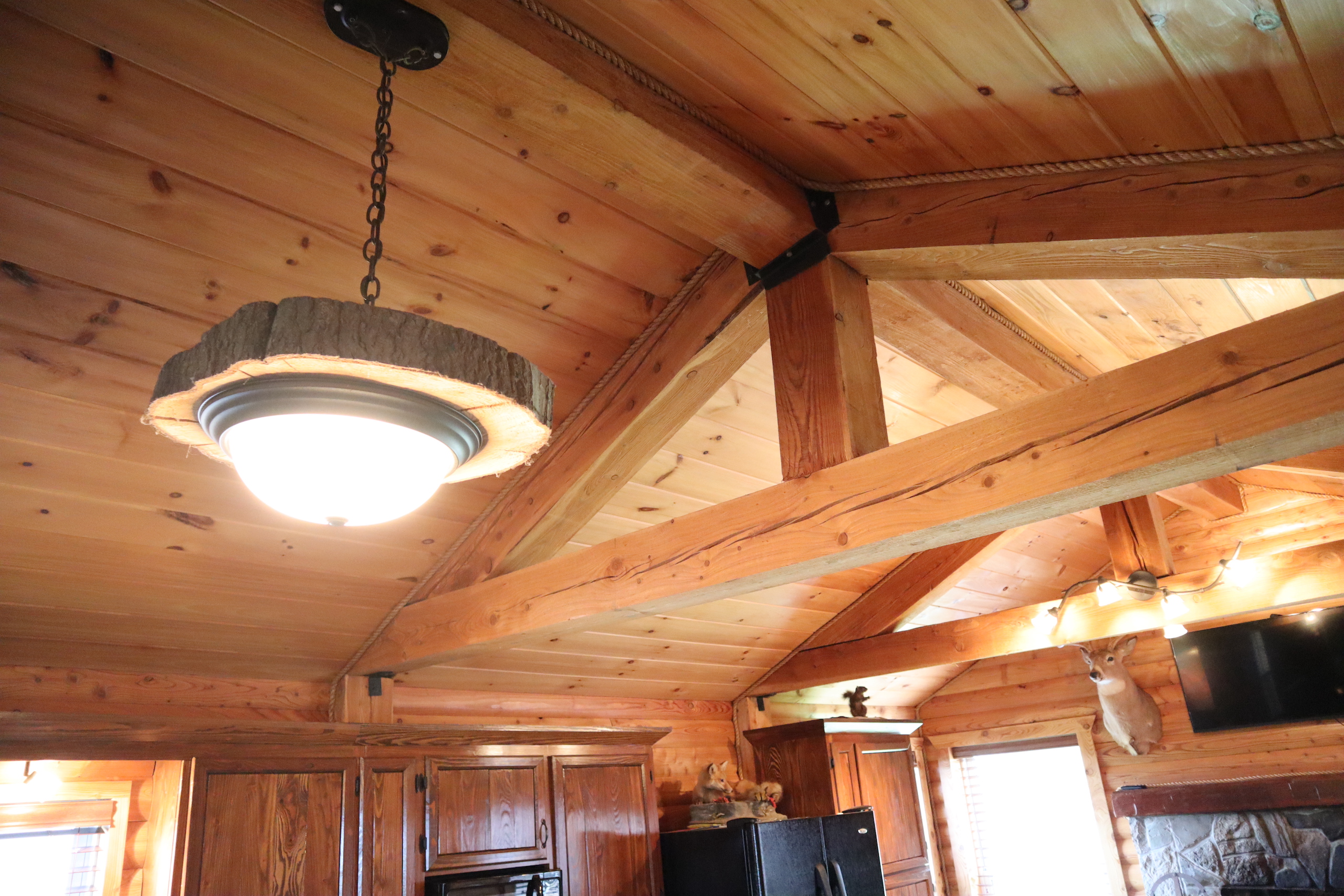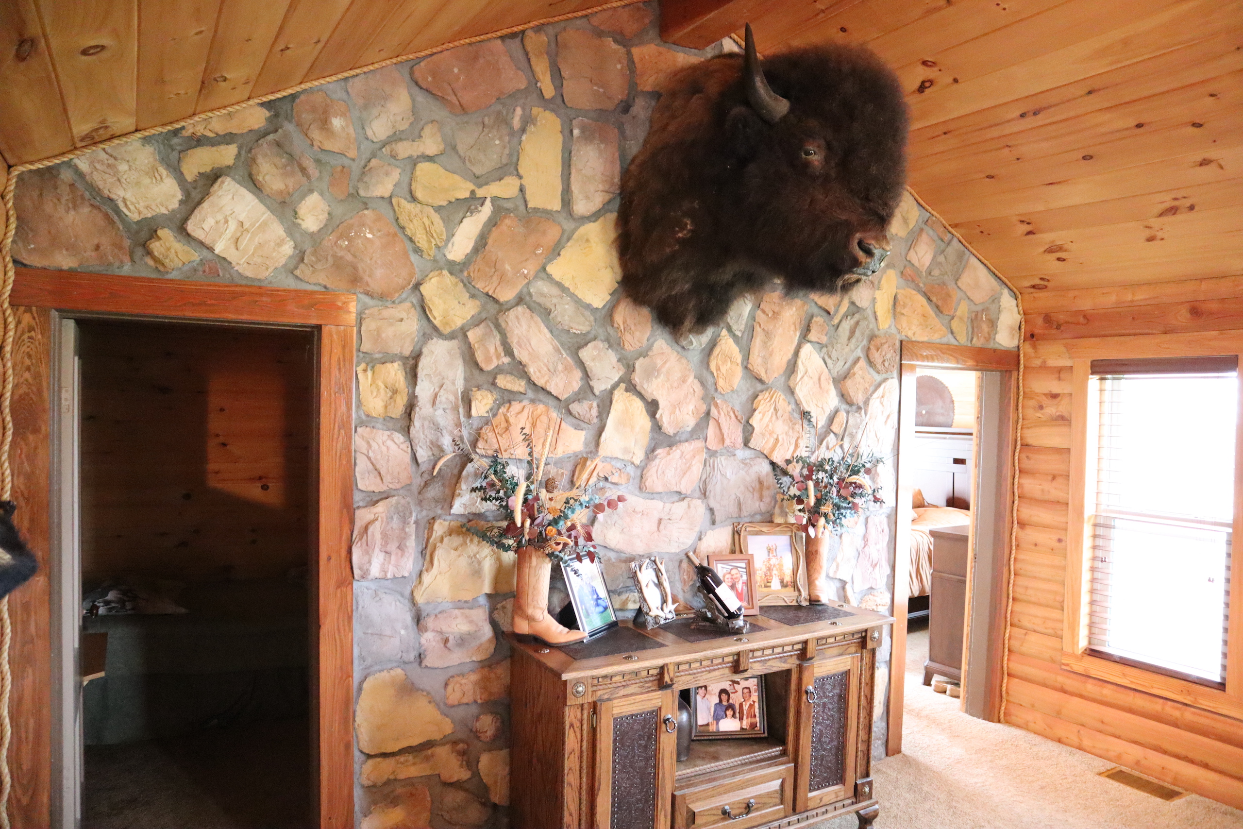 - Fieldstone fireplace