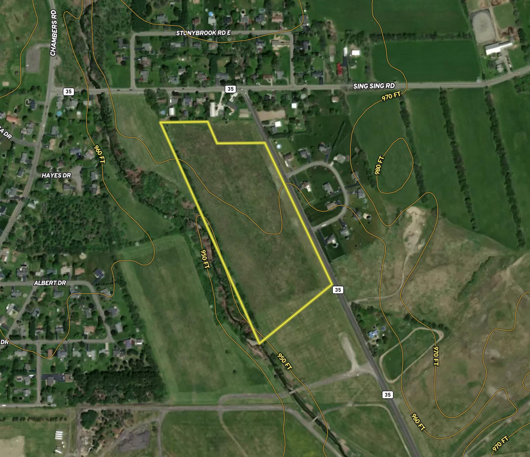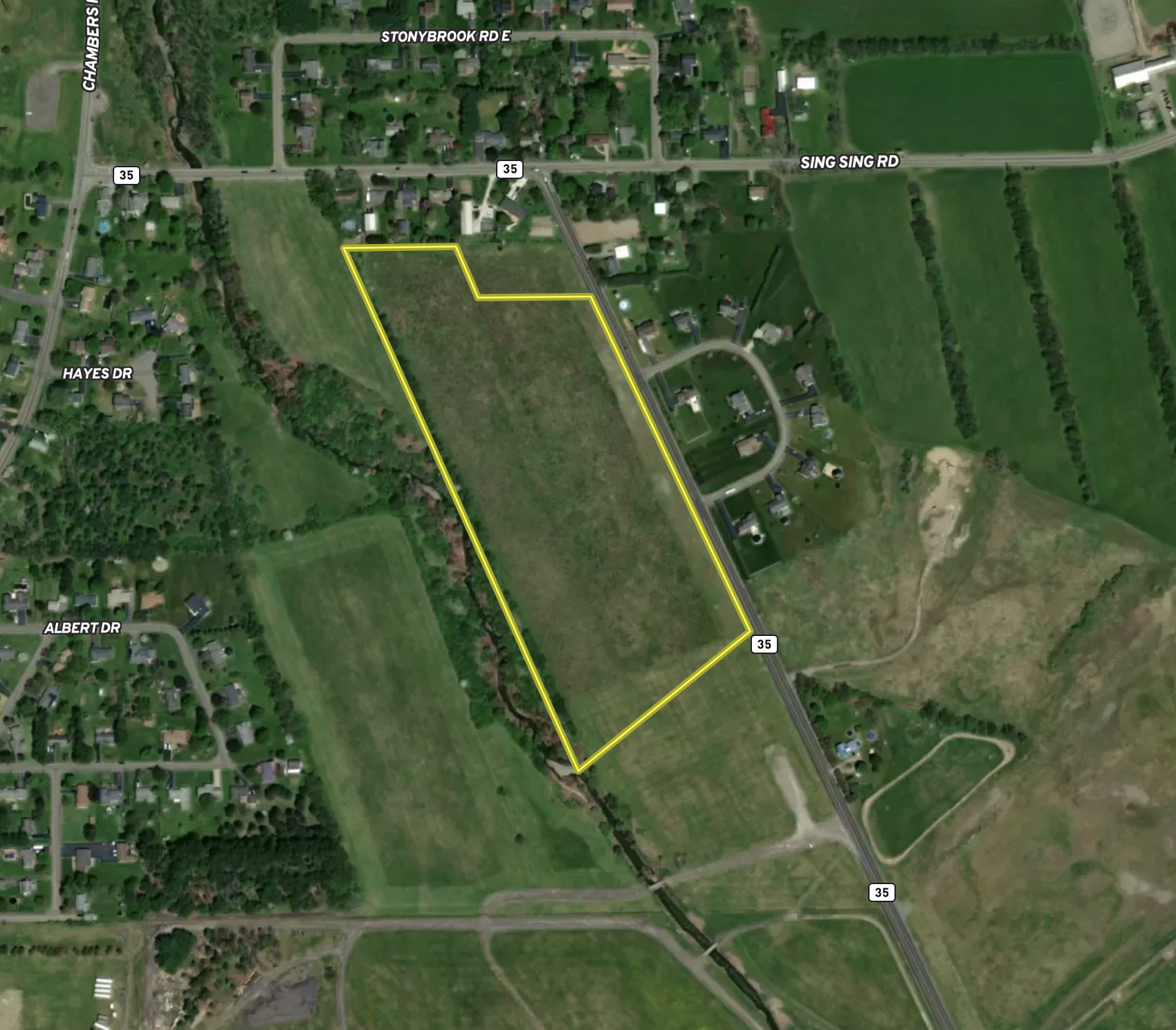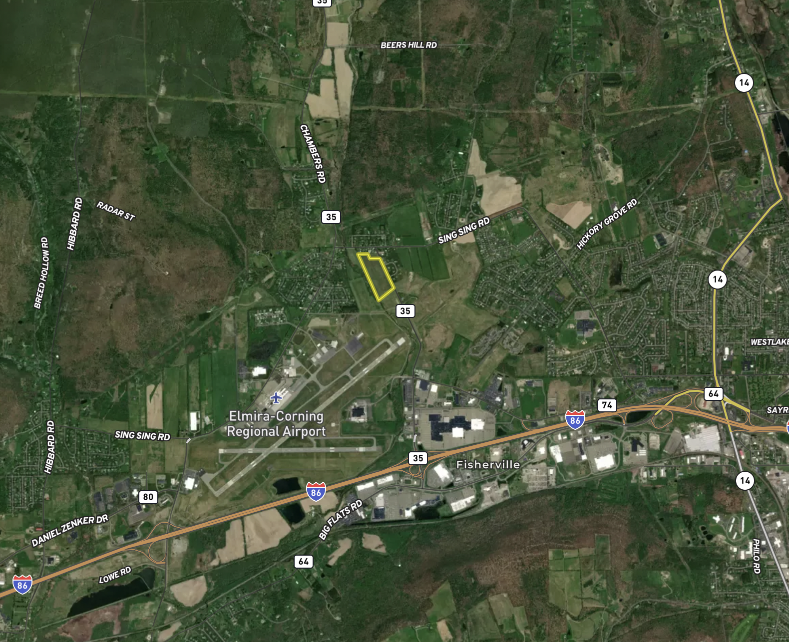 Flat green meadow with eastern mountain views best describes the layout for this parcel. Once upon a time, this land was part of a larger family-owned dairy farm with a lot of history in this area. This property is now zoned residential and ideal for potentially building your new home with land to stretch out or invest in subdividing. Hugging this land on all sides is County owned, which ensures privacy and views. Sing Sing Creek nearly touches the backside in a few spots and stretches along the length of the property. Over 1100 feet of road frontage on Chambers Road and located within minutes of the Elmira Corning airport, making it easy to travel. Big Flats, known as the Southern Tier gateway to the Finger Lakes, has a hometown feel with close proximity to shopping and conveniences nearby. Many nature preserves and attractions call this area home, including the Chemung river featuring many activities like canoeing, kayaking and fishing. All oil, gas, mineral and timber rights convey with the sale. Contact us today with questions and to explore the possibilities of building or developing this land further.