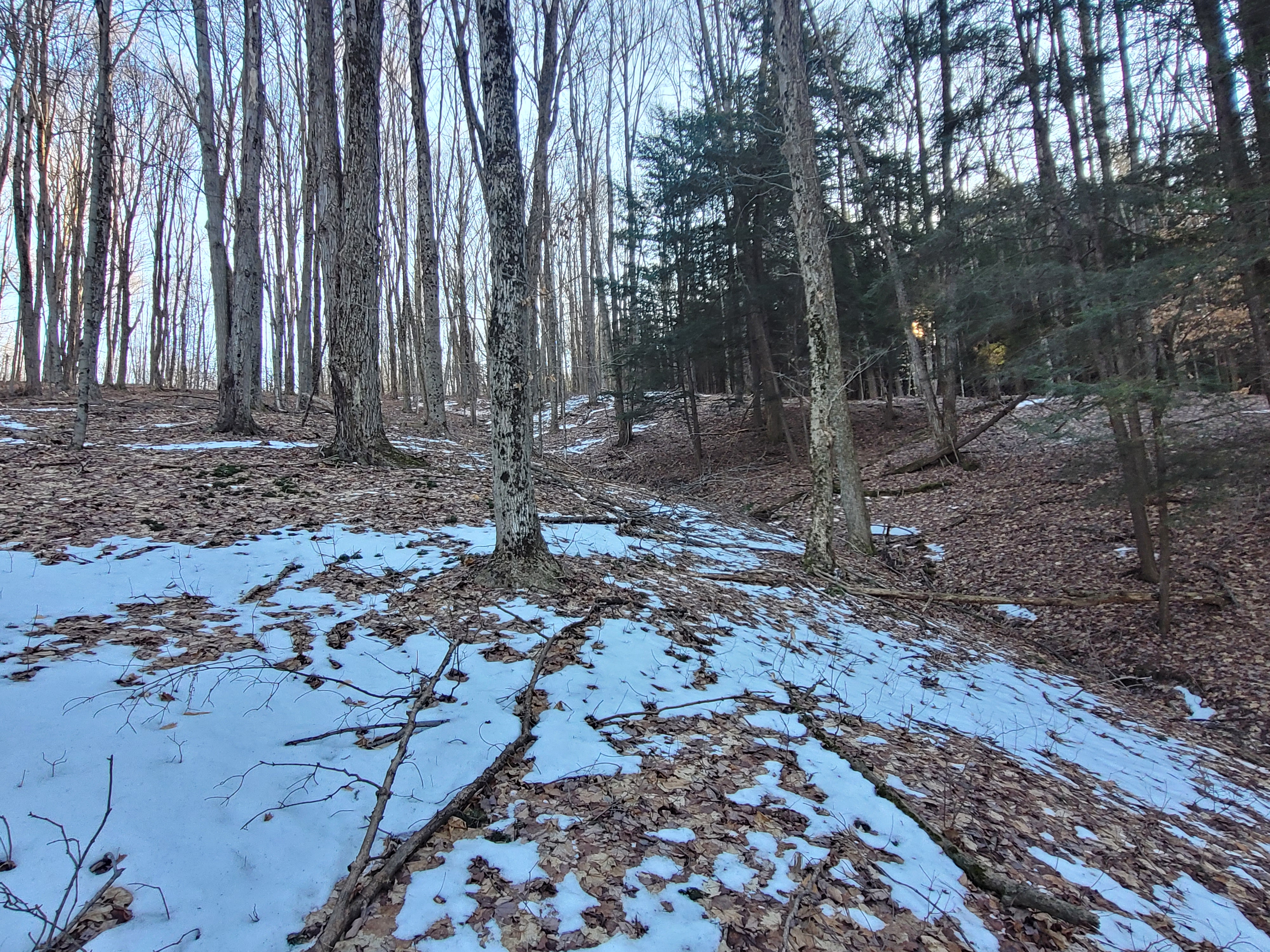 - Woodlot is mostly Maple with a few Cherry trees, with a Hemlock stand to the right side