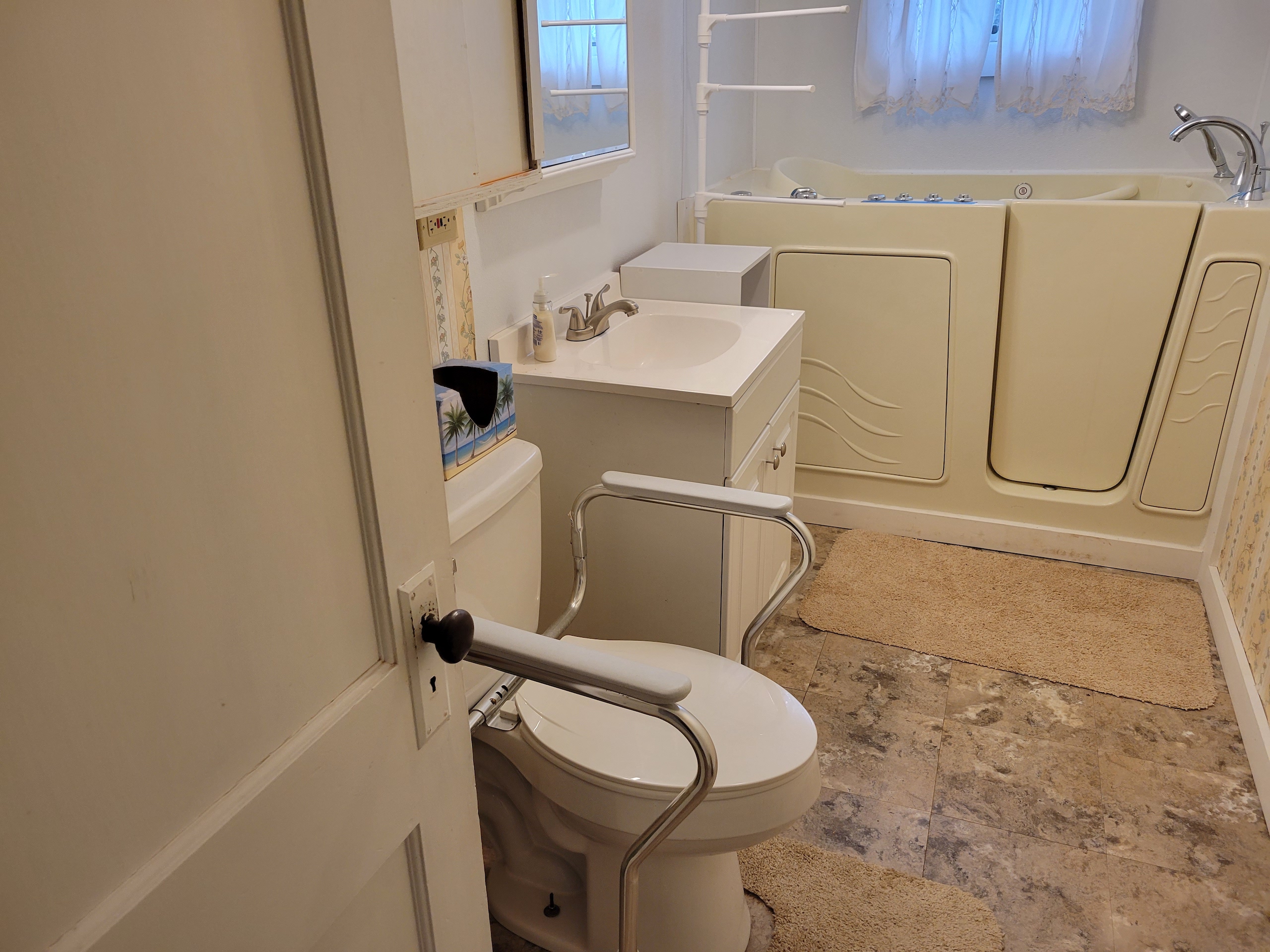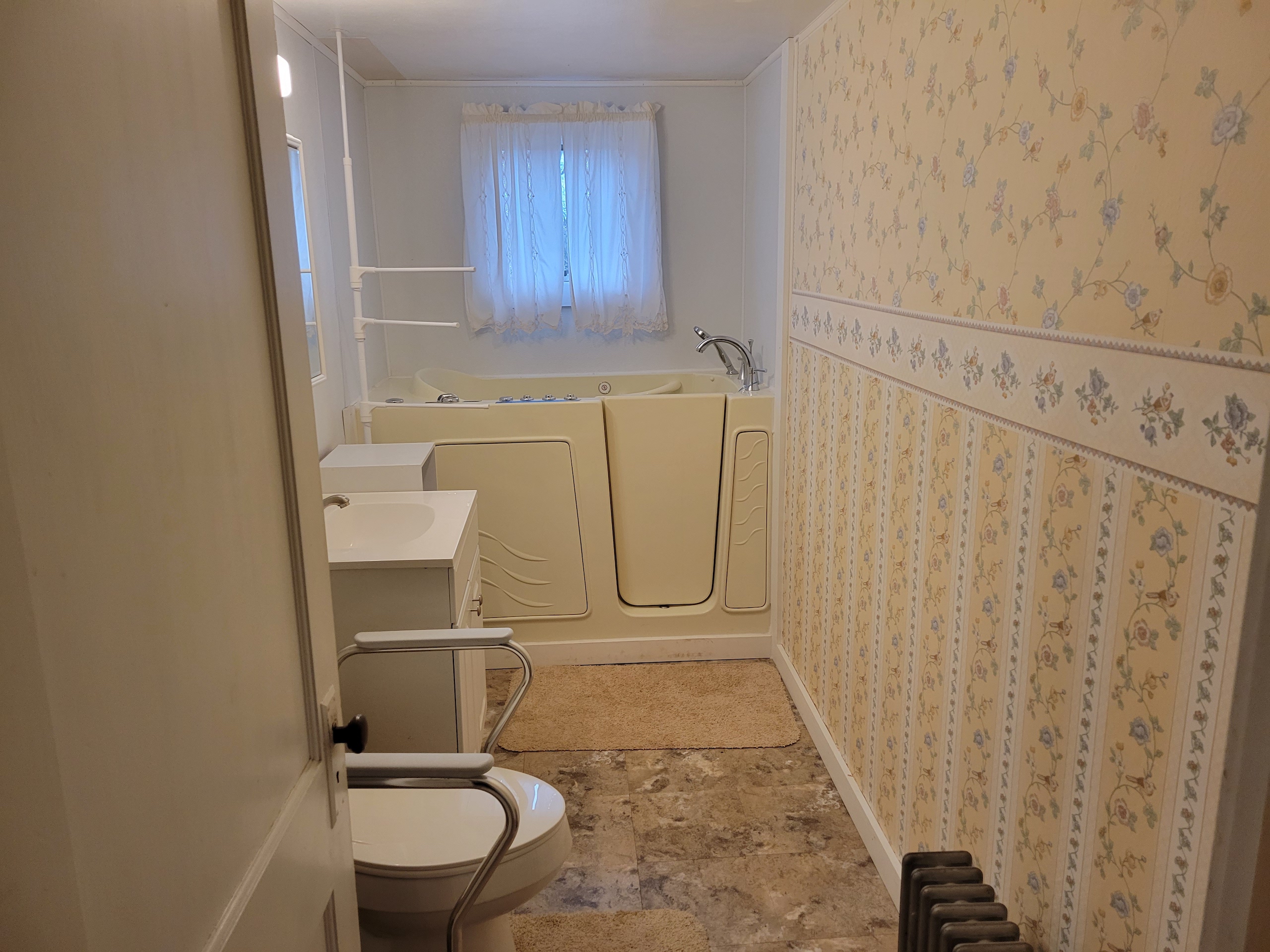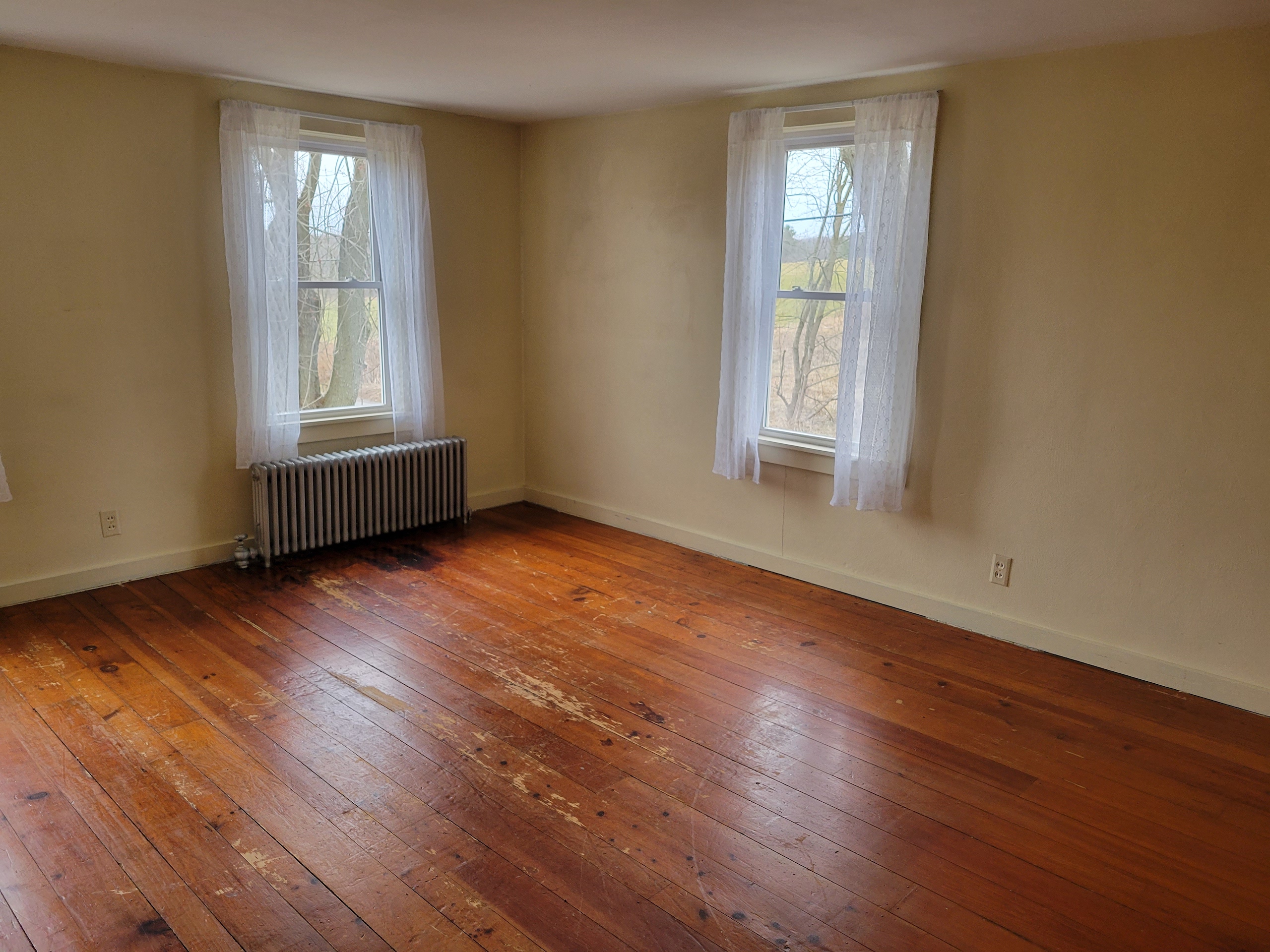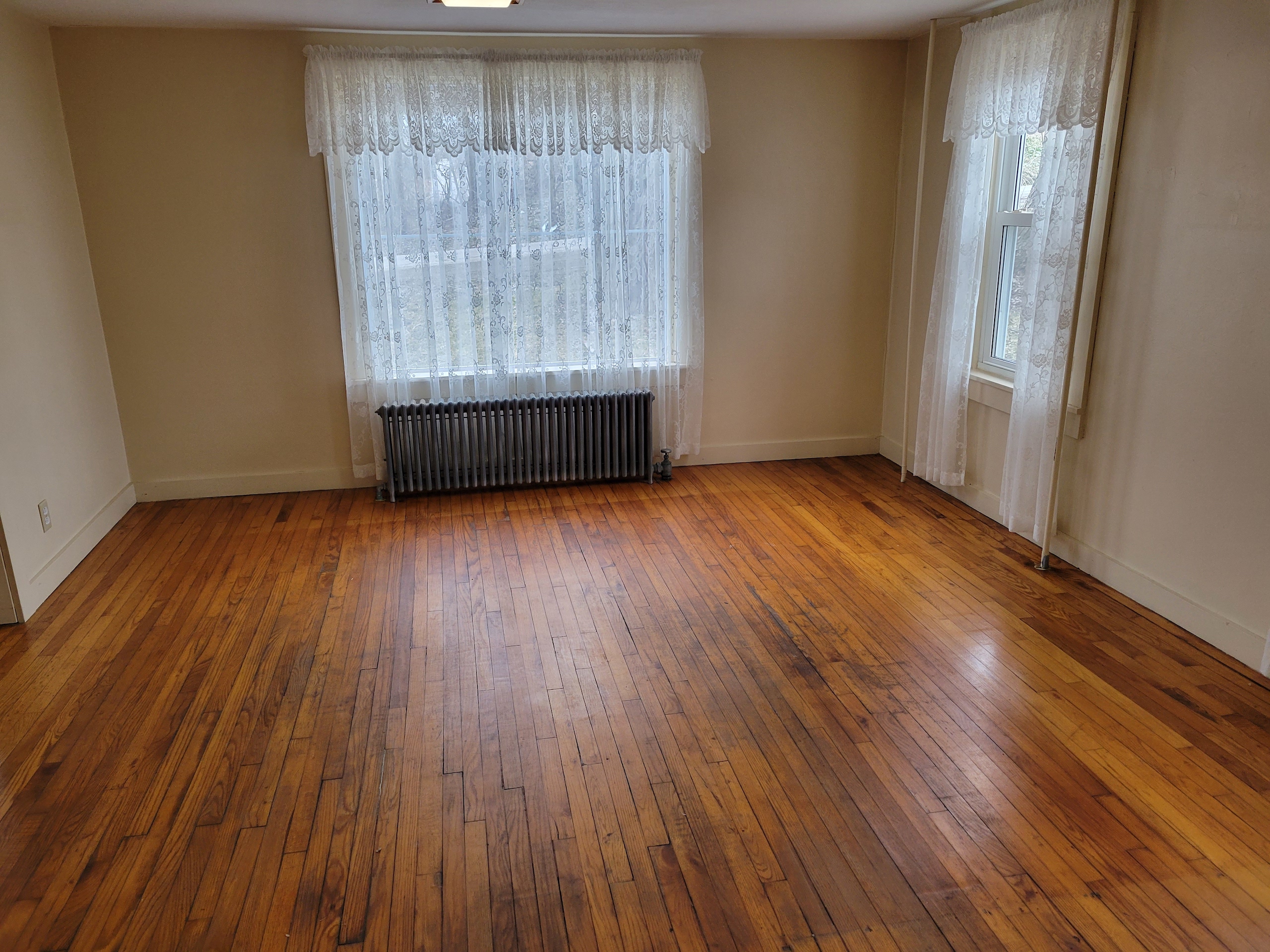 - Some carpeting over hardwoods