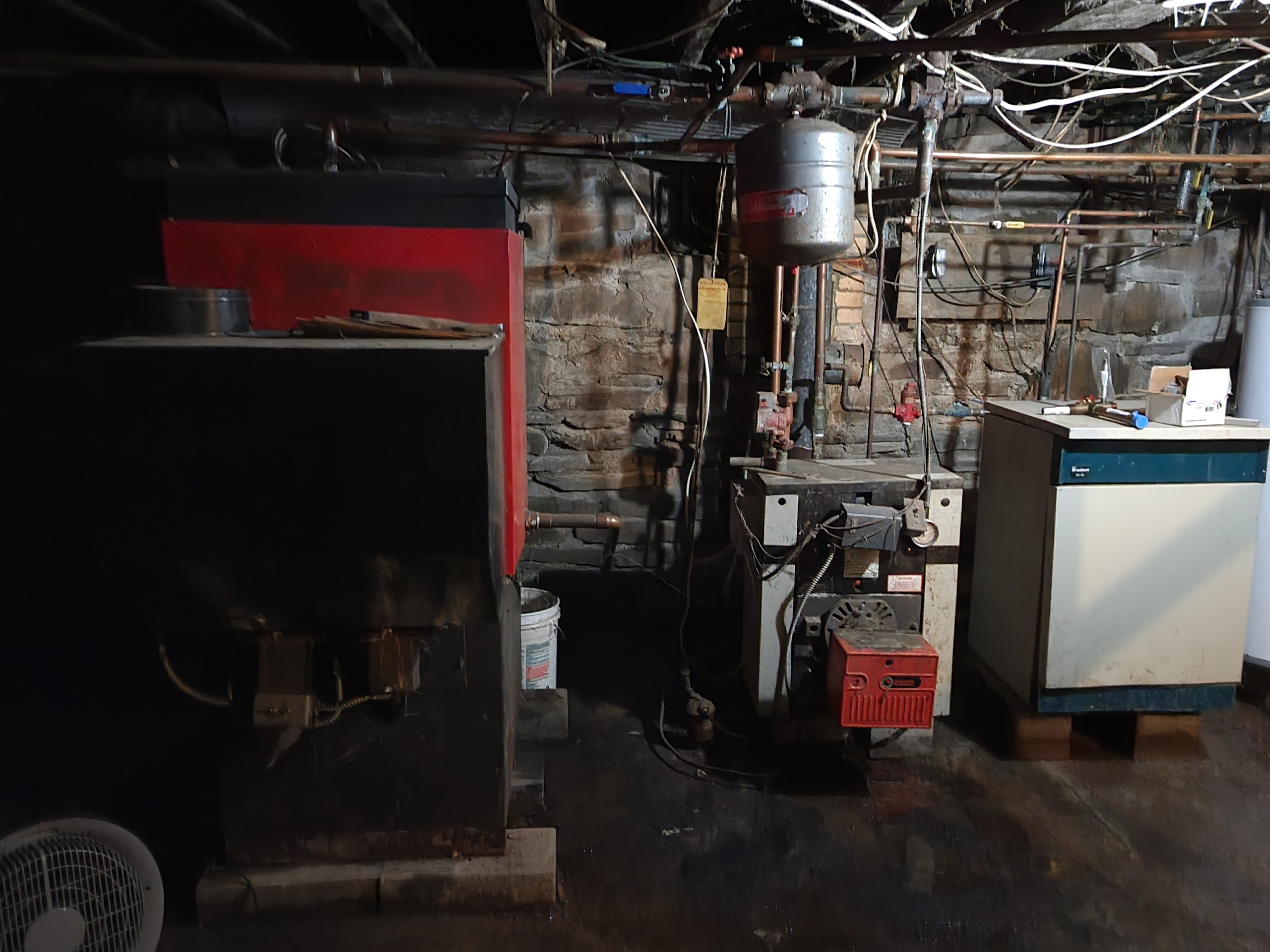 - Hot water heat with radiators and baseboards