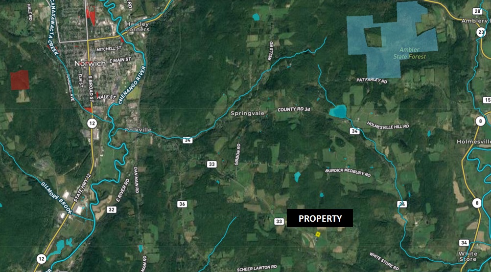 In an area of NYS renowned for wildlife conservation, hunting and fishing, many outdoor recreational opportunities are nearby. Within 5 miles in either direction, there is Lyon Brook State Forest with 528 acres and Ambler State Forest with 629 acres. Fishing for trout, bass and other species, as well as canoeing, is available close by on the Chenango and Unadilla Rivers. Amenities are easily accessible in Norwich, less than 5 minutes from this property. Commute to Oneonta in 40 minutes or Binghamton in 50 minutes, with additional shopping, colleges, entertainment and restaurants. NYC/George Washington Bridge is just 3 hours away. This property is in the Norwich City School District.