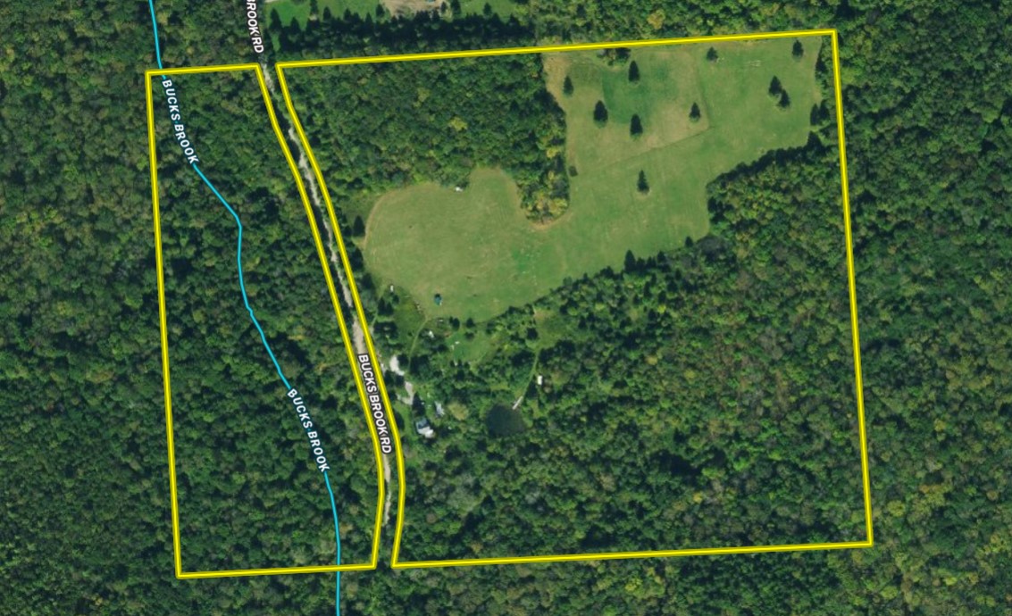 - Borders on THREE SIDES Bucks Brook State Forest (2178 acres) for additional hunting, hiking, fishing, camping