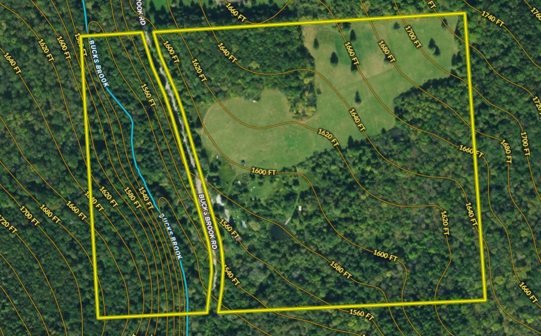 - 1346’ (a quarter of a mile) of Bucks Brook runs through this property