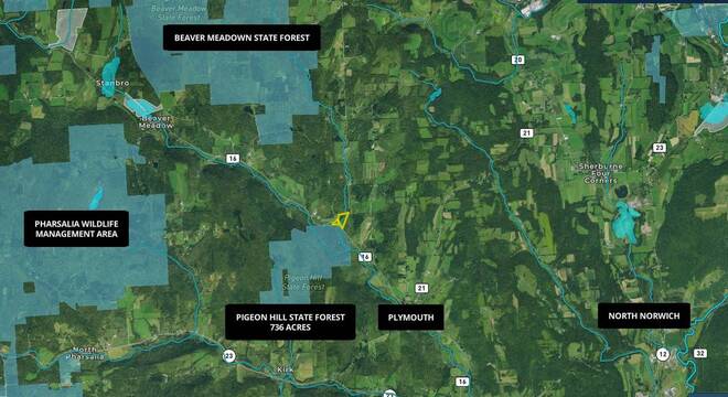 - Border 736 acres of Pigeon Hill State Forest for easy access to hunting, trapping, hiking, and fishing on east branch of Canasawacta Creek