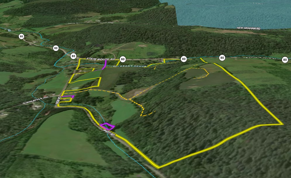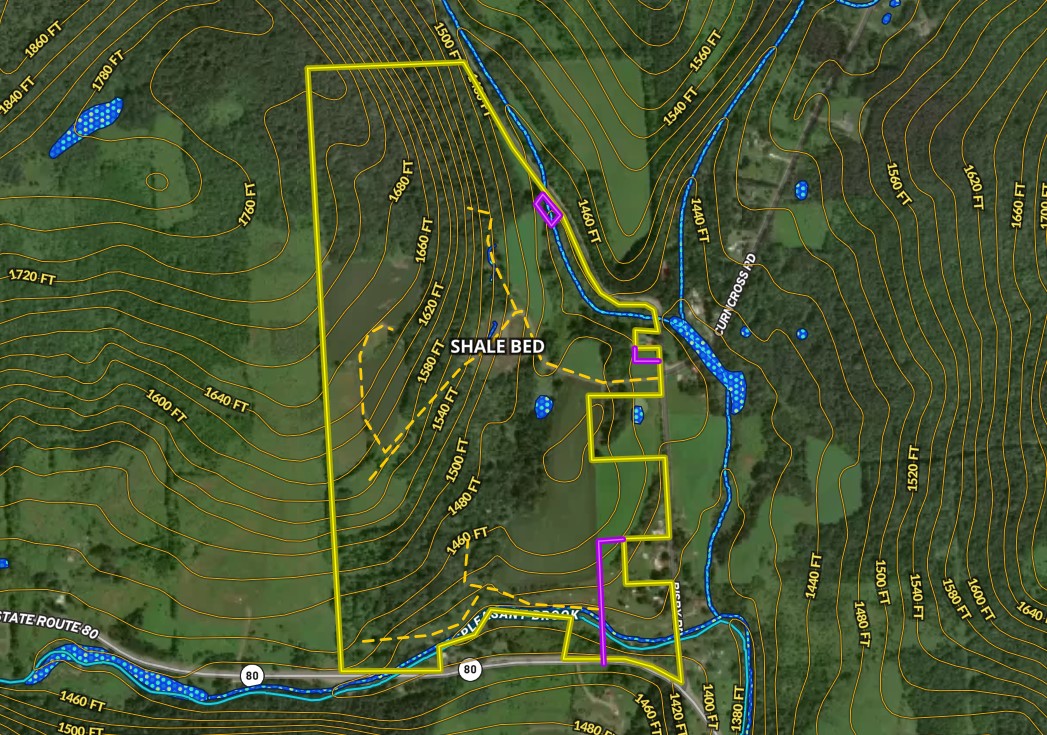 With loads of whitetail signs, this is a really nice hunting property that features a diverse habitat including a mix of active ag fields, brush, woods and water in an area of Central New York State that is renowned for its wildlife conservation and management areas for the outdoor enthusiast. 44 acres of tillable ag fields are currently planted to corn and hay. Approximately 26 acres of thick brush provide both browse and ideal cover for deer and other area wildlife, while the property is also loaded with wild apple trees offering an attractive additional food source. There is 2103’ of a trout stream, Pleasant Brook, that runs along the lower portion of the property. The land is gently rolling with a gentle slope upwards from Bisby Road. There are 86 acres of woods, which are a mix of hard and soft woods, as well as hemlock. The property was logged a few years ago, which created a nice undergrowth with blackberries and Forbes as well as cover for the deer and area wildlife, and there is a nice stand of future timber. There are also wild apple trees throughout, attracting the deer and wild turkeys with these additional food sources. A nice shale driveway leads through the property and up to the corn fields, as well as an extensive ATV trail system providing access throughout. The property contains a former shale pit. There is electricity available at the paved, year-round maintained road and could provide power should the new owner be interested in building a camp or even a year-round home. Another over 5800 acres are available just 4 miles away at the Beaver Meadow State Forest, offering additional hunting, camping, hiking, and snowmobiling recreation. Amenities, shopping and restaurants are available 9 miles away in Sherburne as well as Norwich in 17 miles. NYC/George Washington Bridge is located just 3.5 hours away. A portion of larger parcel, subject to Town approval of subdivision