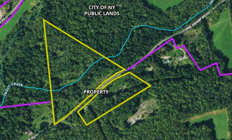 This private and affordable three-bedroom, one-bath, two-story farmhouse is perfect for a vacation getaway, hunting camp, or make it your year-round home. The house features a freshly painted exterior and a three-year-old roof on the outside, with a huge deck for cookouts and plenty of room for entertaining. Inside features a cozy open kitchen with an eat-in dining area, a nice sized living room with a sliding glass door with pretty views out to the deck, downstairs bedroom, bathroom with first-floor laundry, and new wood stove with triple-walled stainless pipe professionally installed. The house is being sold "as is" and is located on one side of the road, with the remainder of the property on the other side. Set in a wooded lot, with a mix of hardwoods including maple, ash, oak, as well as softwoods, and sporadic wild apple trees, the property is bordered on two sides by approximately 184 acres of additional NYC public lands providing additional hunting, hiking and wildlife enjoyment. In addition, there is 882 feet of frontage on Trout Creek, which passes through the property. This diverse habitat, along with surrounding agricultural land, attracts and retains whitetail, wild turkey, and other wildlife, providing great hunting opportunities as well as just enjoying surrounding nature. When needed, shopping, amenities, and restaurants are readily available in the town of Trout Creek, 1.6 miles away, Walton only 15 minutes, Sidney 20 minutes, and Oneonta only a half-hour away. Outstanding fishing, boating, and water sports are available with a choice of two amazing man-made lakes: Cannonsville Reservoir is only 4.5 miles down the road with 4703 acres of water, public boat launches, and public fishing areas. Outstanding fishing and water sports available only 4.5 miles away on the Cannonsville Reservoir, 4703-acre lake with public launches, and less than 30 minutes to the renowned 5763 acres Pepacton Reservoir with trophy trout, smallmouth bass, and catfish fishing. Steam Mill State Forest is located just 5.7 miles with 5618 acres for additional hunting, hiking, camping, and winter sports, including snowmobiling and country skiing. In addition, with less than an hour to Cooperstown, more opportunities for culture and entertainment are available with the National Baseball Hall of Fame, Fenimore Art Museum, NYS Historical Society, Farmers Museum, Brewery Ommegang, Glimmerglass Opera, Cooperstown Dreams Park, as well as shopping, several area golf courses, and many choices of outstanding restaurants. NYC and the George Washington Bridge is only 2.5 hours away. Don't miss this great opportunity to buy this affordable property, which can be used as a very comfortable hunting camp, vacation getaway, or year-round home in a beautiful Delaware County location. Accepting offers!