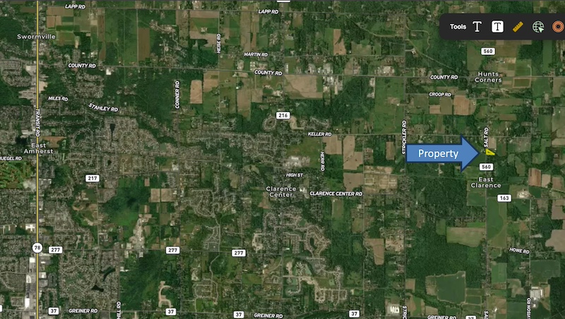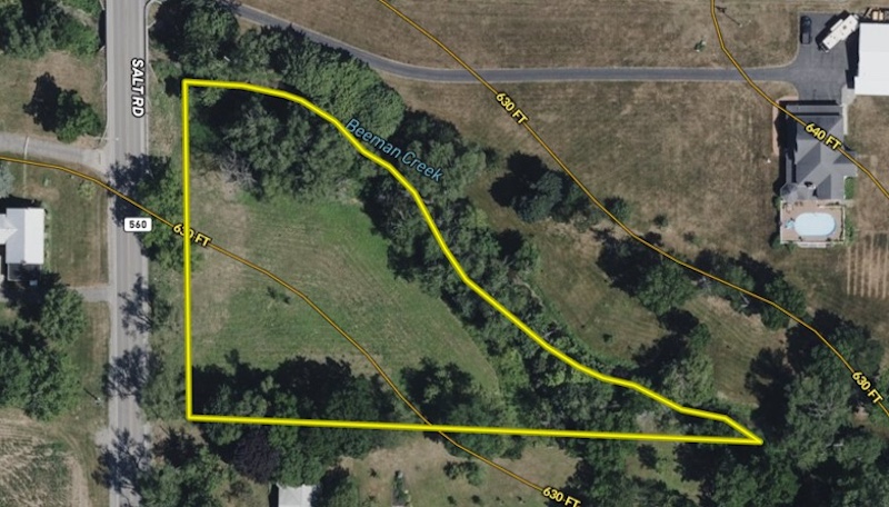 Discover the perfect opportunity to build your dream home on Salt Rd in Clarence, NY, located within the Clarence School District. This spacious 1.3± acre building lot offers an impressive 198 feet of road frontage, providing flexibility for a variety of home designs. Enjoy the convenience of electric and municipal water available at the road, helping streamline the building process. The property's rear boundary is defined by Beeman Creek, offering a peaceful, natural backdrop and a sense of privacy that's hard to find. Ideally situated just minutes from Transit Road shopping, dining, and everyday amenities, with easy access to the I-90 Thruway for a smooth commute, this lot combines tranquility with convenience. A rare opportunity to secure a prime piece of land in one of Clarence's most sought-after locations—bring your vision and make it a reality. ADDITIONAL INFORMATION: Buyer's agent must be present for showings, Clarence Schools, Municipal water, Septic required, Natural gas, Beeman Creek Border, New Survey available, .9 miles to County Road, 2.5 miles to Clarence, 5.5 miles to Transit Road, Taxes TBD. Buyer agent must be present on all showings. Do not send clients out without accompanying them. Disclaimer: Map illustrations are for reference purposes only and not the representations of the Listing agent or brokerage Whitetail Properties Real Estate LLC. Illustrations are provided by Land ID. Parties should be advised to confirm Illustrations with licensed professional service providers.