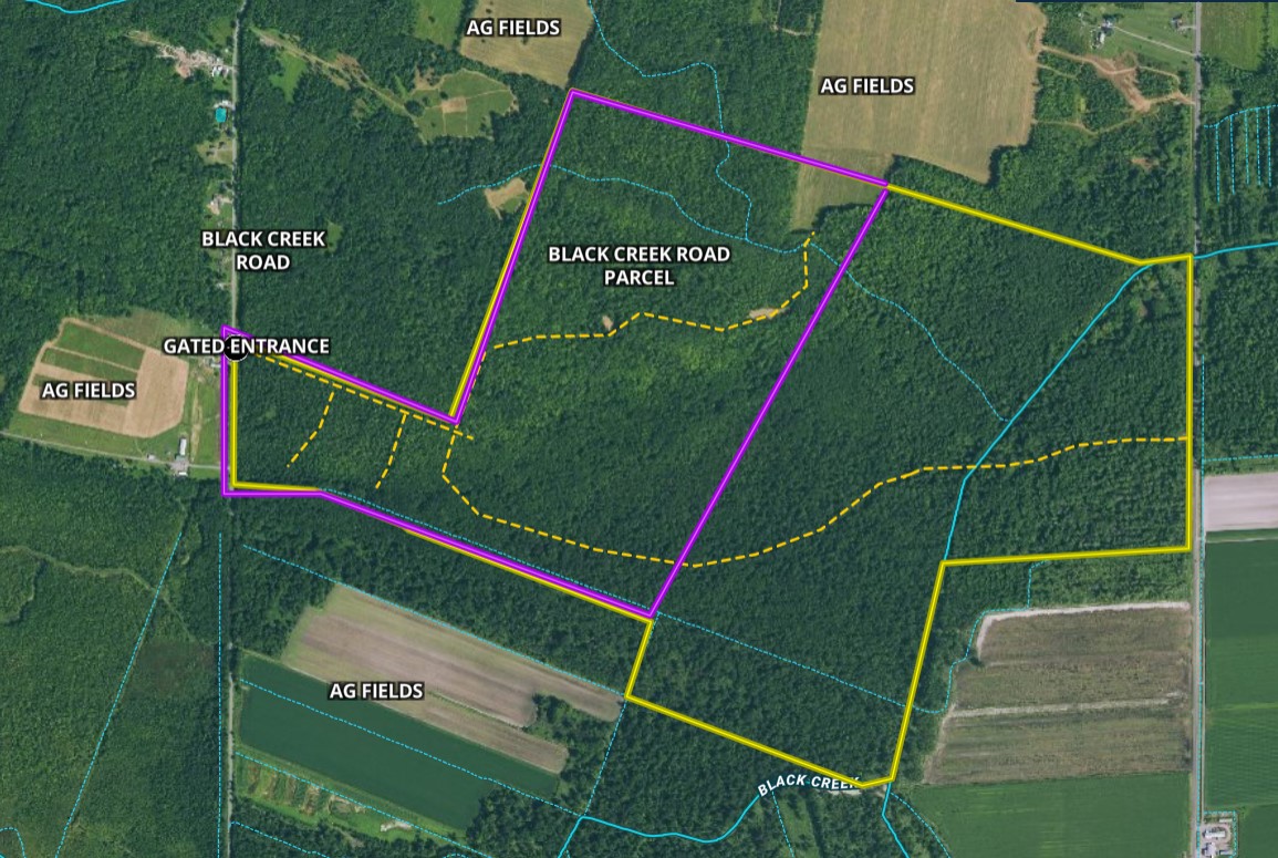Prime flat, wooded hunting spot with a mixture of hardwoods and softwoods, a small agricultural field and other areas of tall brushy habitat. There is 1162’ of road frontage on Black Creek Road with a gated driveway that proceeds 2059 feet into the property before turning into a trail. At the end of the driveway, there is a nice location for a camp and to park vehicles with room enough to turn around. Old logging trails intertwine throughout the property providing access to the interior. This property is priced right and is a highly desirable area location with prime deer hunting as well as only minutes to public launches on Oneida Lake, NYS largest inland lake, renowned fishing for walleye and yellow perch, bass, northern pike and many other species. The main property cover is a very dense mixture of hard and softwoods, with some portions of wet swamp-like areas perfect for big trophy buck cover. Deer sign was evident and the deer have choices on neighboring agricultural properties to feed on corn, soybeans and alfalfa and return to this huge property to bed down and live in. Following QDMA practices, this property could be developed into one of the premier hunting sites in Central New York because of its size, topography and location. Furthermore, the young timber lot offers future income opportunities, and electric is available at the road. The property has a great location near Syracuse and surrounding communities for amenities as well as area attractions and culture: renowned restaurants and breweries, shopping, culture and performing arts all well within a half hour or less. NYS parks, forests and wildlife management areas abound in the surrounding areas. Cicero Swamp Wildlife Management Area and Verona Beach State Park are both 12 minutes away. Albany is a two hour drive and only 4 hours from NYC/George Washington Bridge. There are multiple options for building sites. This property is being offered as a portion of a larger parcel, subdivision subject to town approval. This parcel could be made larger if desired, or the full 510-acre parcel could be purchased as well. Call the listing agent today to schedule your appointment to see this great tract.