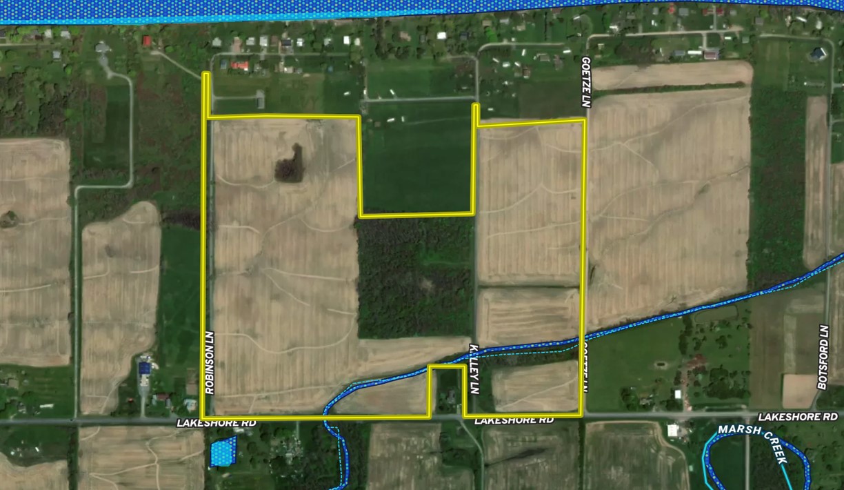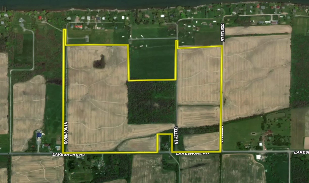 Lake Ontario is known for great fishing, sunsets and boating. But the shoreline is more than beaches and lighthouses. The south shore of Lyndonville is also known for excellent soil construction for tillable acreage and it is in high demand being so close to towns and the big blue. This 63.12-acre parcel is unique in that it is currently tillable acreage with a nice woods in the middle, but it also lays out well for developing residential and vacation opportunities for building. It has 1,712 feet of frontage on Lakeshore Road, 1,879 feet of frontage on Robinson Road, 1,713 feet of frontage on Kelley Lane, and 1,629 feet of frontage on Goetze Lane. Each of these roads provides convenient access for farming equipment and implements to tender the fields. Approximately 52 acres of the parcel are tillable and the remaining acreage is wooded. A small drainage creek courses east-west near Lakeshore Road and empties into Lake Ontario. The soil construction is excellent, comprised of Collamer Silty loam, and suitable for nearly any crop. Priced well to sell!