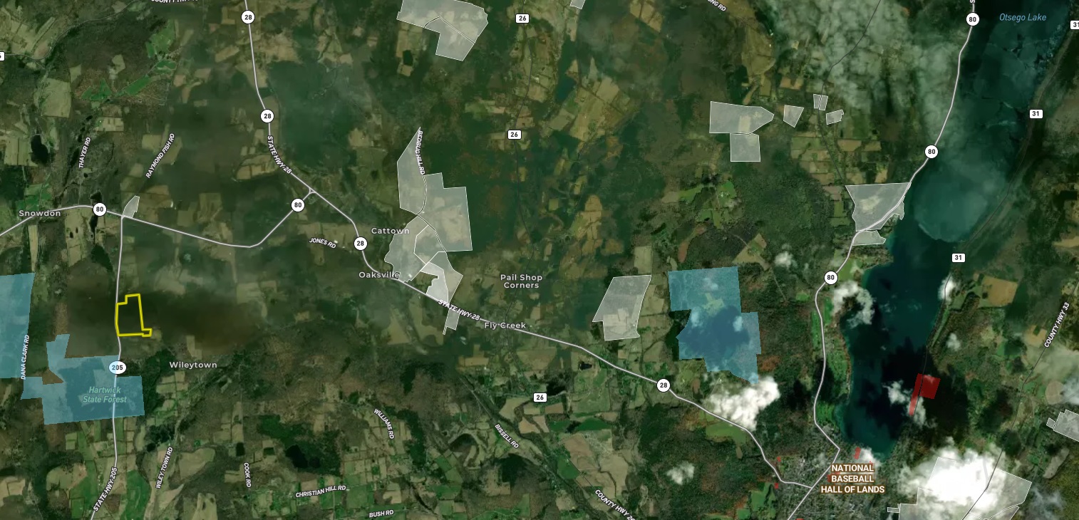 The property is Just a short drive from Cooperstown and is in an area known for its robust whitetail deer population, wild turkey, grouse and overall thriving wildlife population. It would make a really nice building site for a home or new cabin or use one of the two trailers already on site as a campsite, with 2 wells, 2 septics and electrical service already in place. The property is a beautiful location on a paved, town-maintained road. The building site is down a 350-foot-long drive that creates a quiet site nestled among the mixed hardwoods, with easy-to-walk or ATV trails and level open areas. With just a gentle sloping grade, it presents several opportunities to create an ideal hunting property or just a quiet getaway. This is a secluded location yet with amenities less than a 15 minutes away in Cooperstown, including the National Baseball Hall of Fame, Cooperstown Dreams Park, as well as shopping, hospital, gas and cultural attractions like the Fenimore Art Museum, Farmers Museum, Brewery Ommegang, and Glimmerglass Theatre. Outstanding fishing awaits nearby on Otsego Lake, 4046 acres of pristine water, with lake trout, walleye and perch among many other species, the Glimmerglass State Park, with its public beach and picnic grounds, as well as fantastic water recreational activities. Oneonta is 30 minutes away, with Hartwick College and SUNY Oneonta, and the property is 3.25 hours from the George Washington Bridge/NYC.