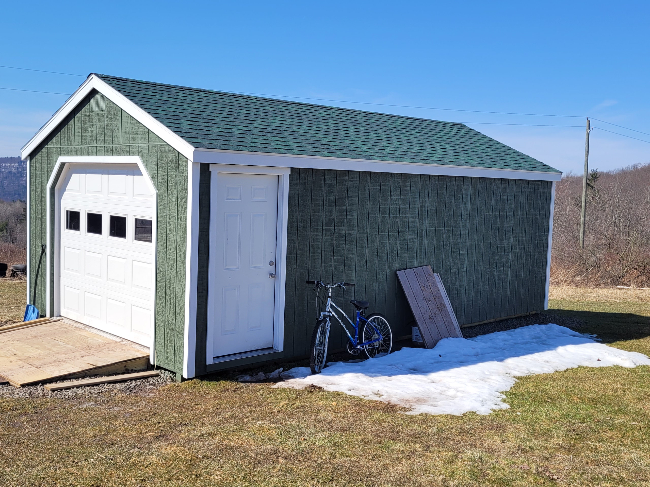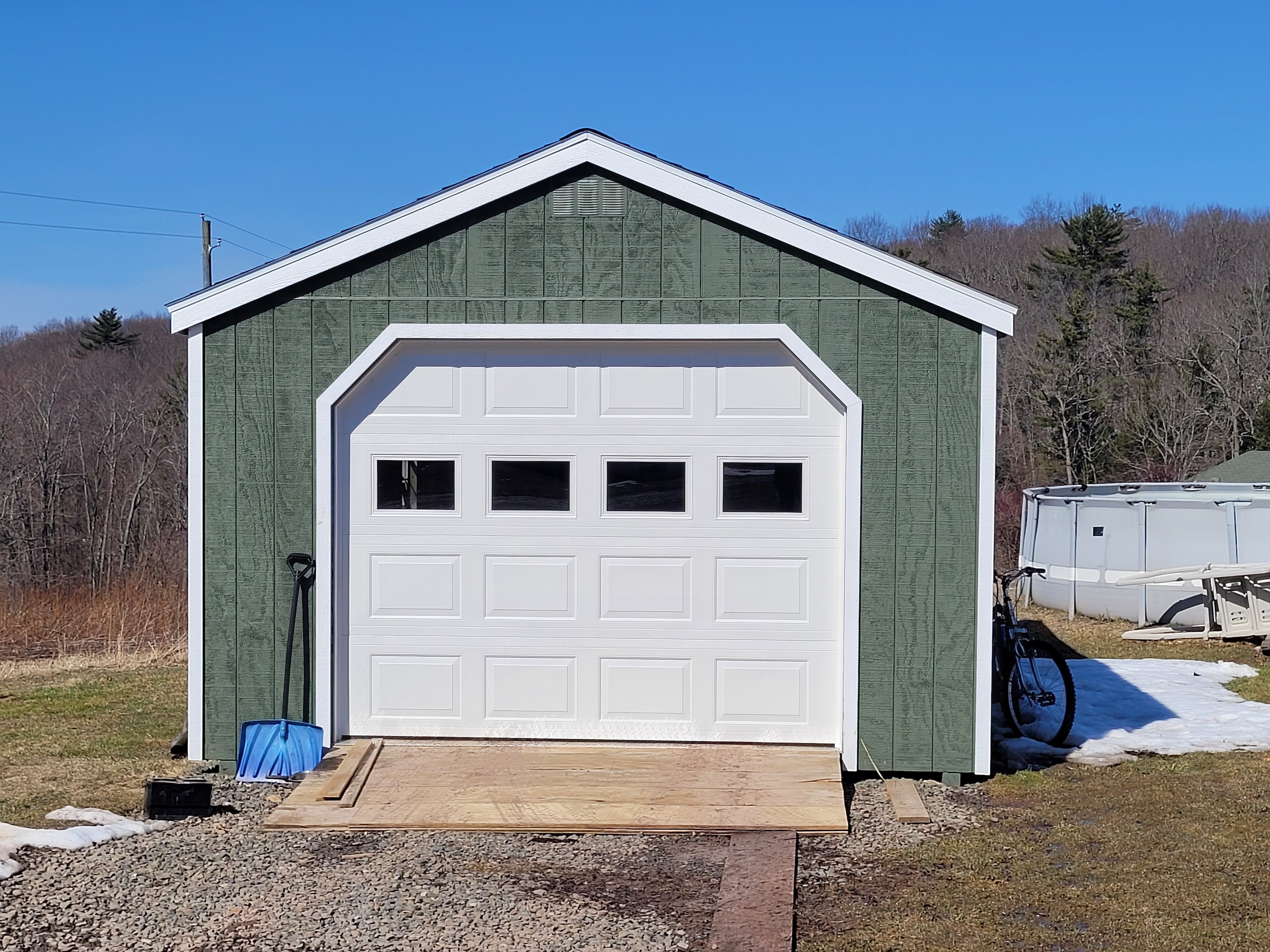 - 1 car detached 14’ wide x 32’ long garage