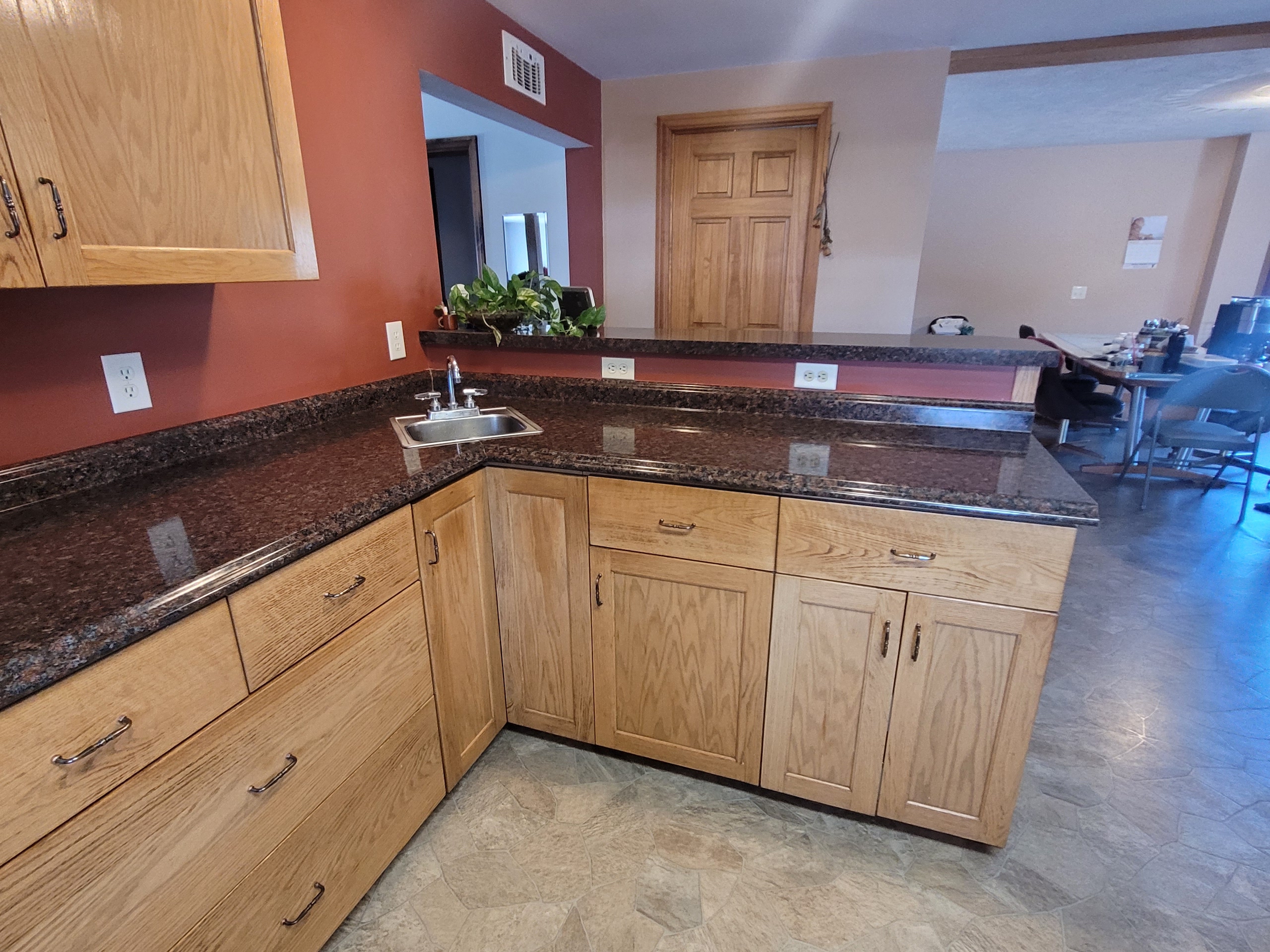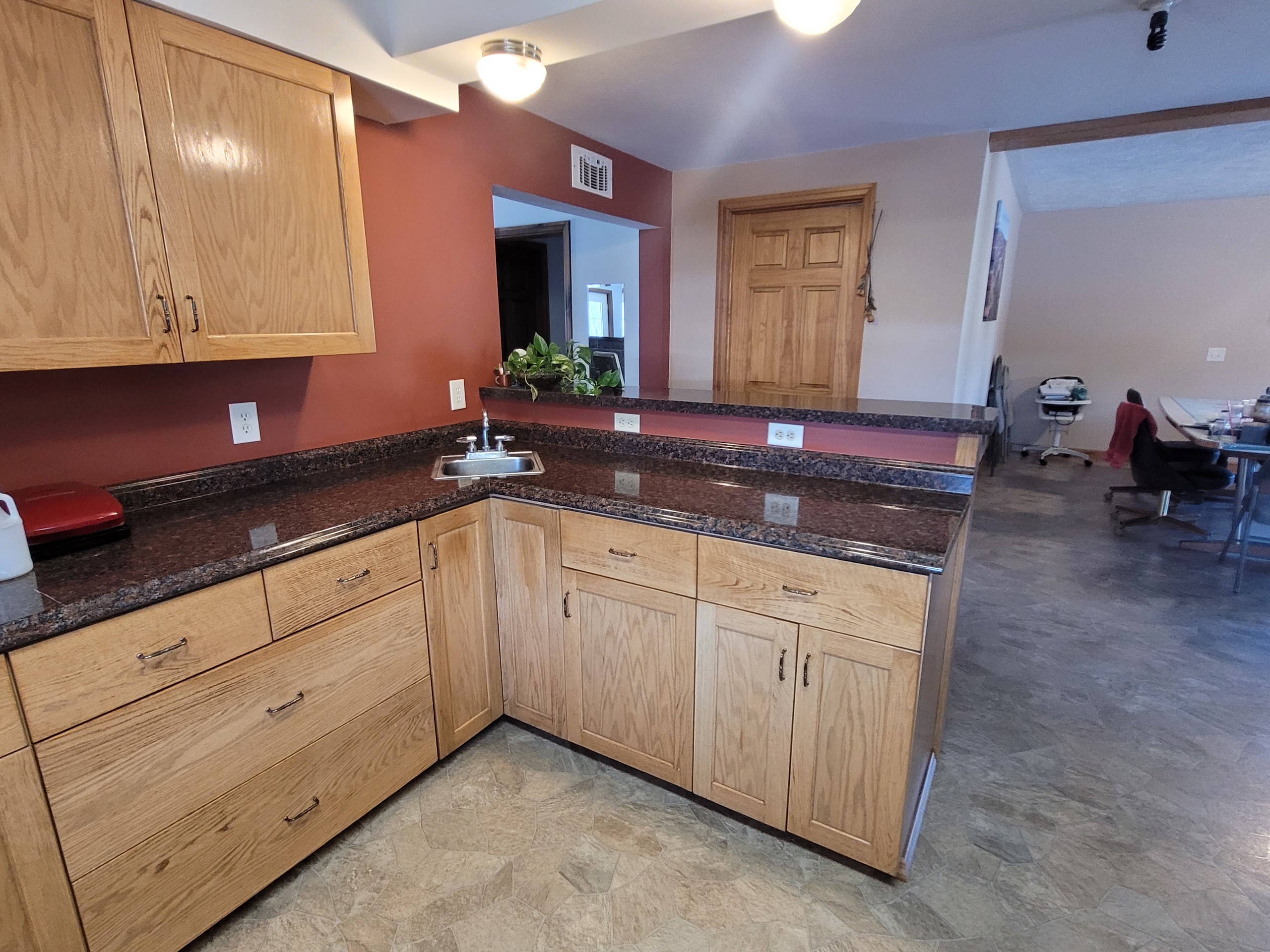 - Separate kitchen with enough space for multiple cooks and a peninsula with eating area