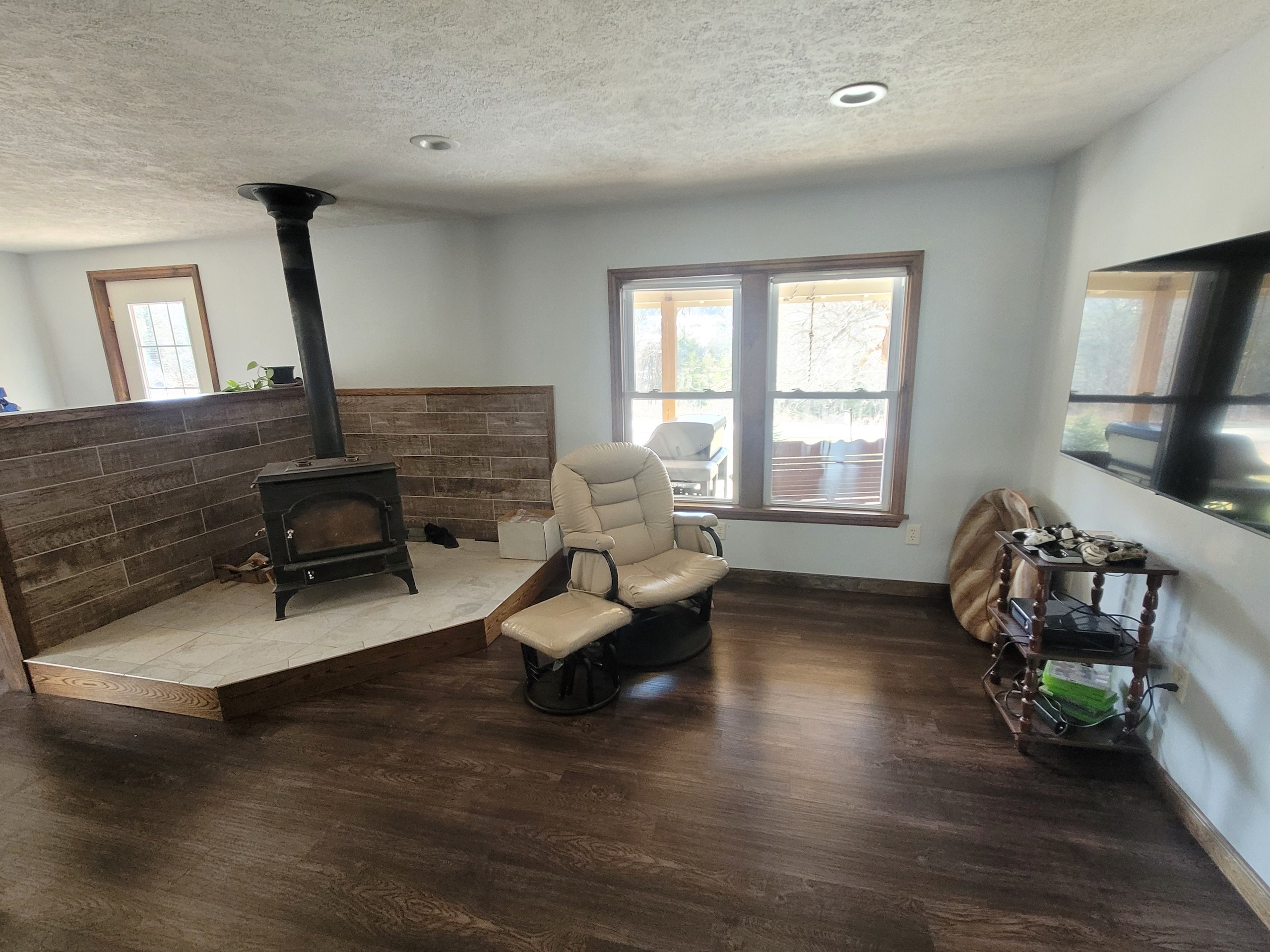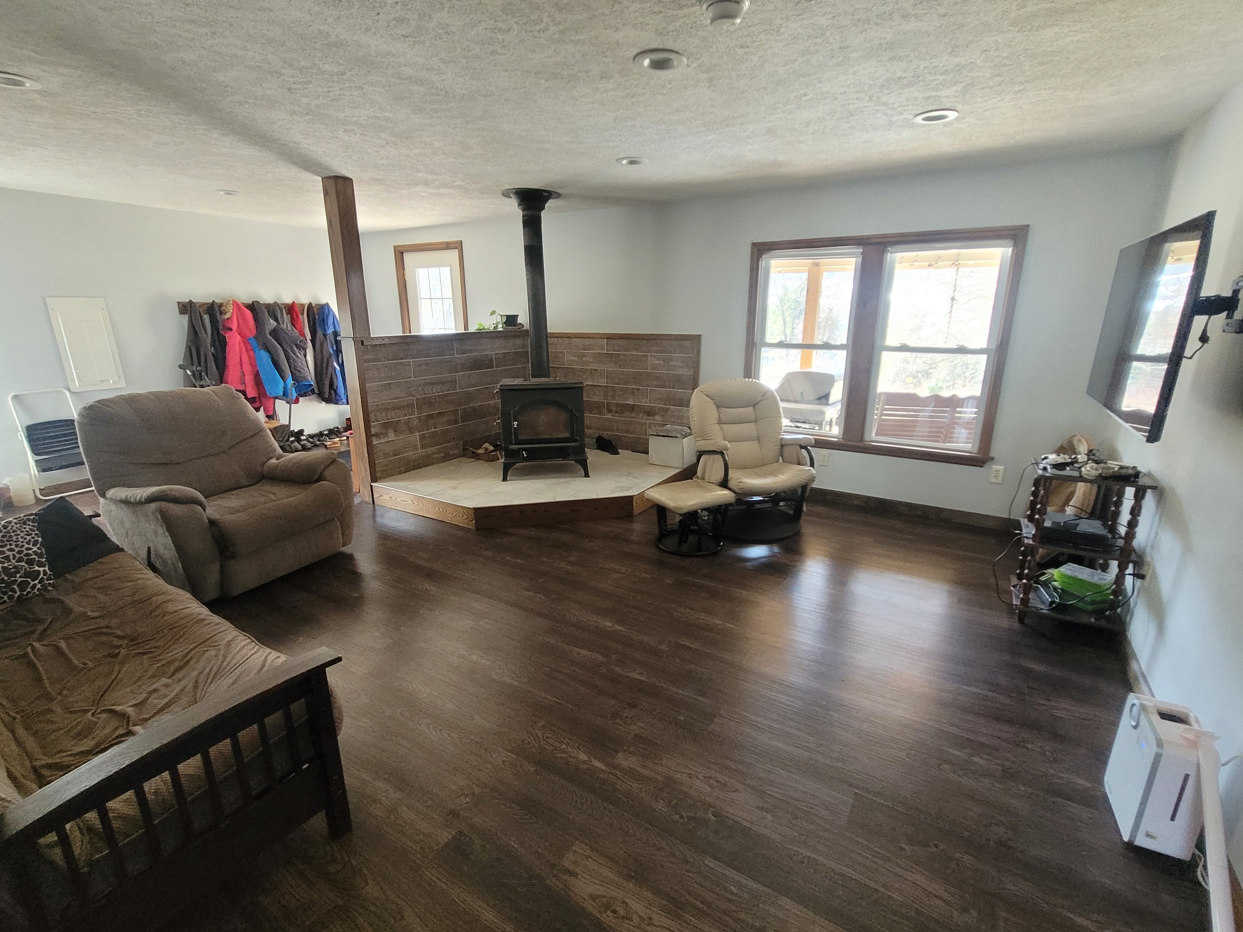 - Huge main living room with wood stove for extra coziness
