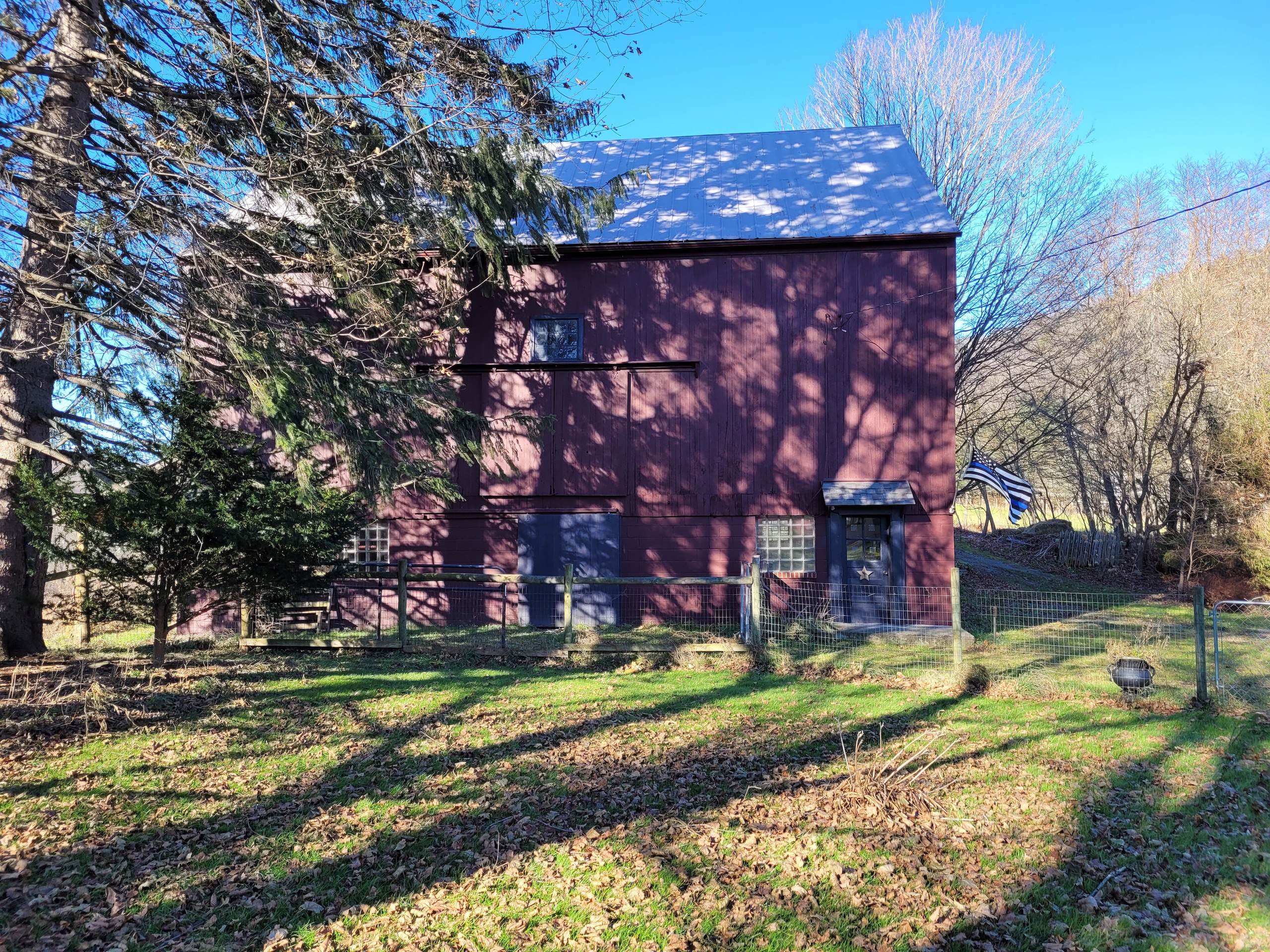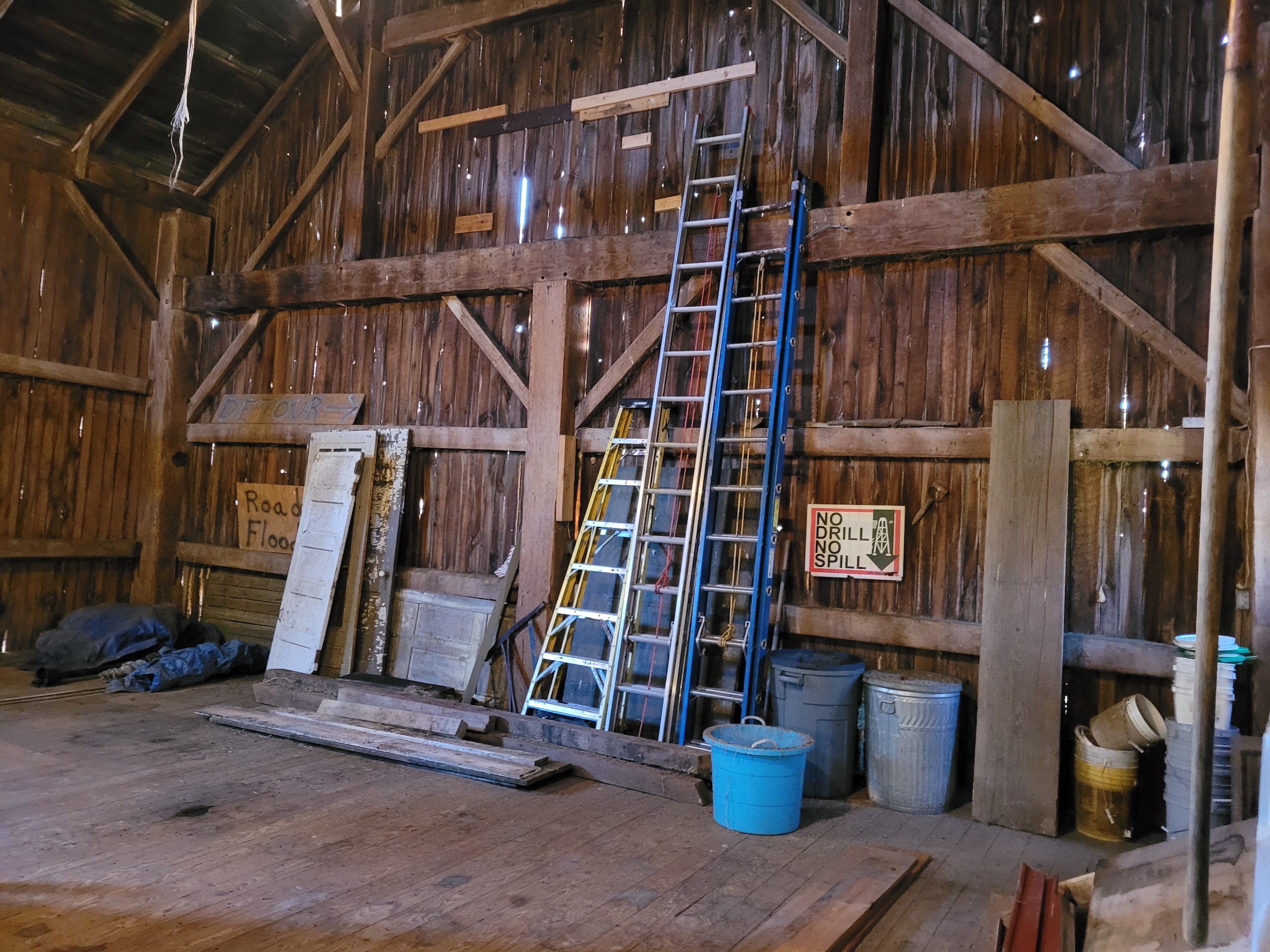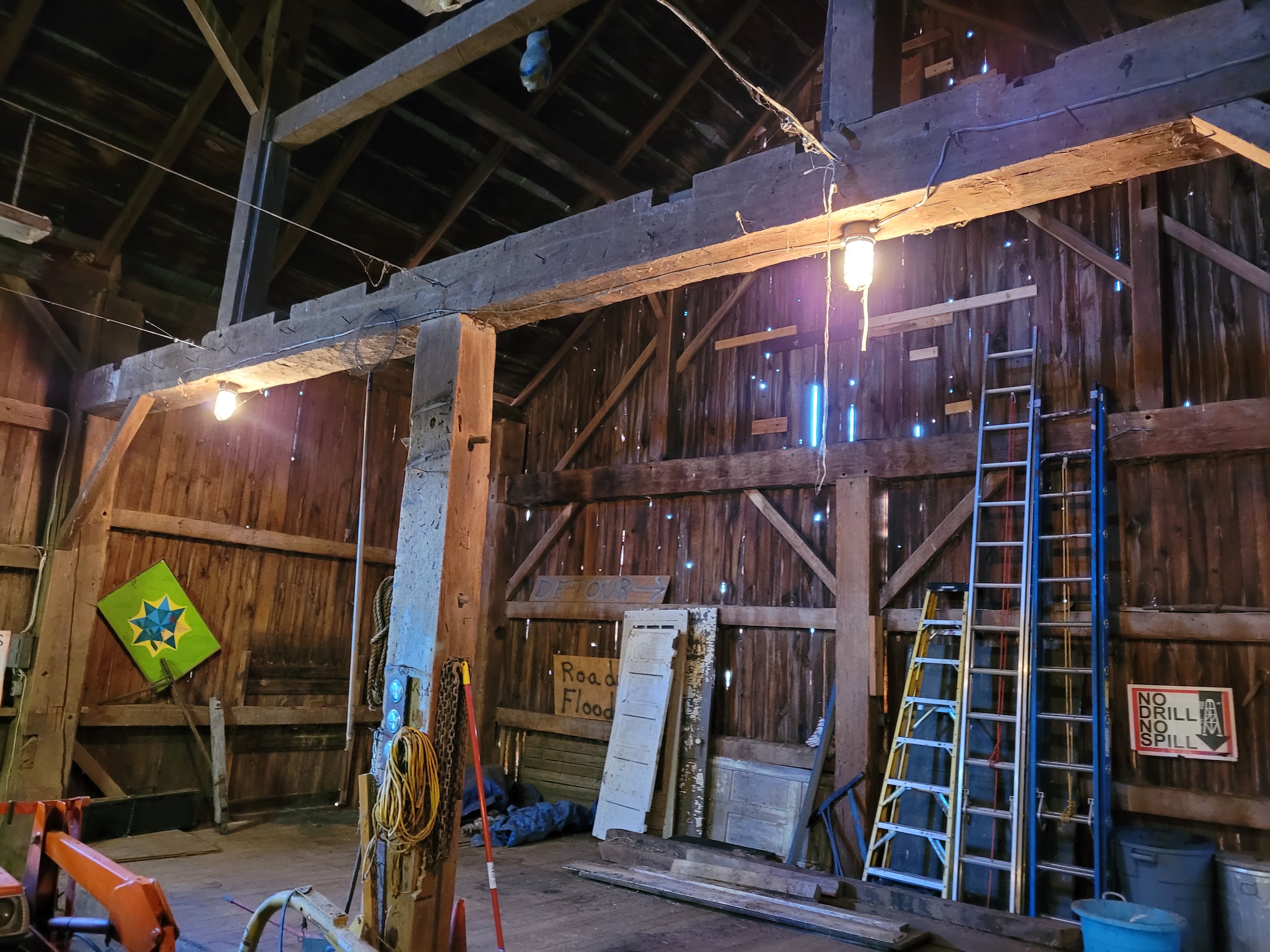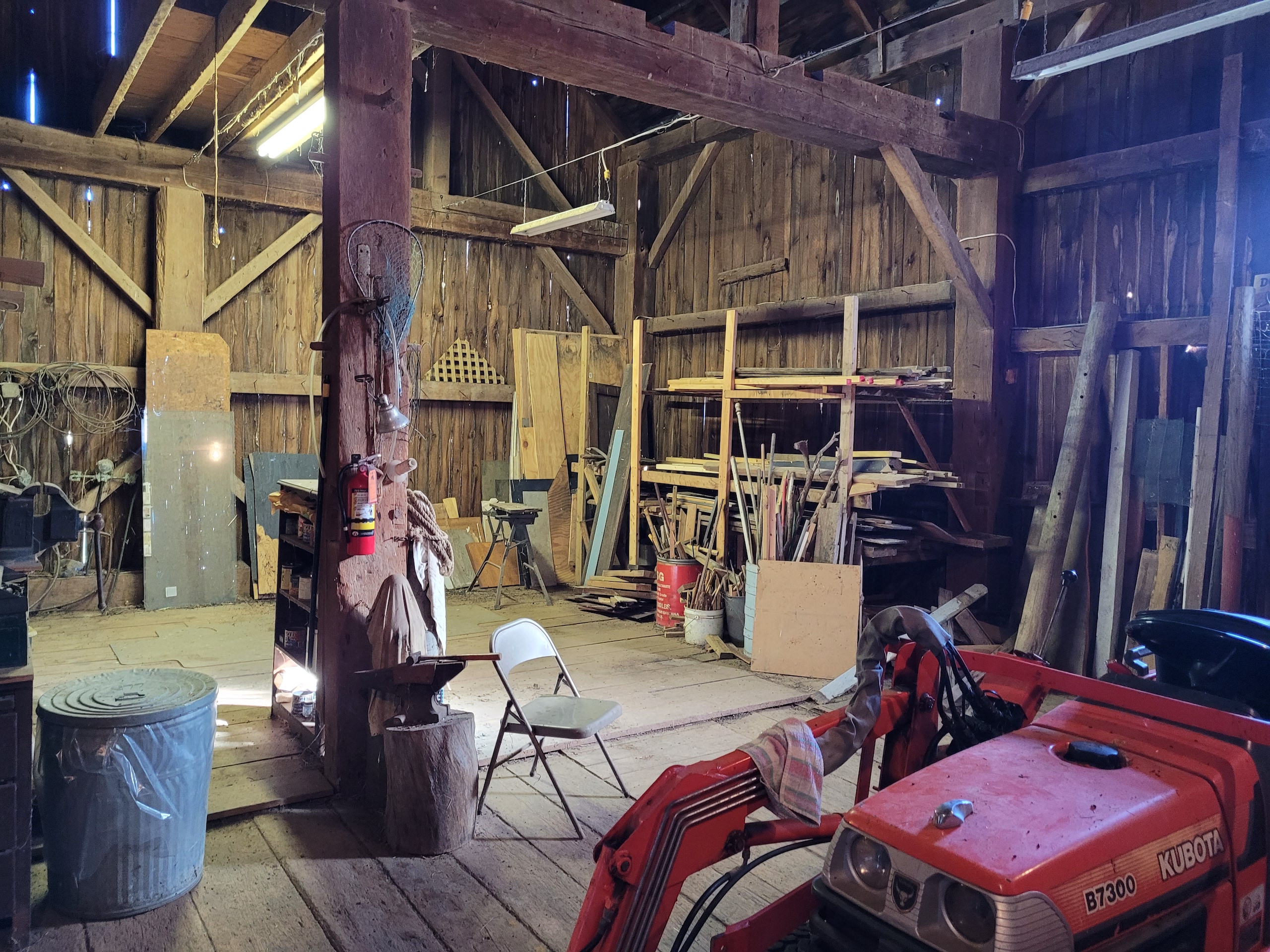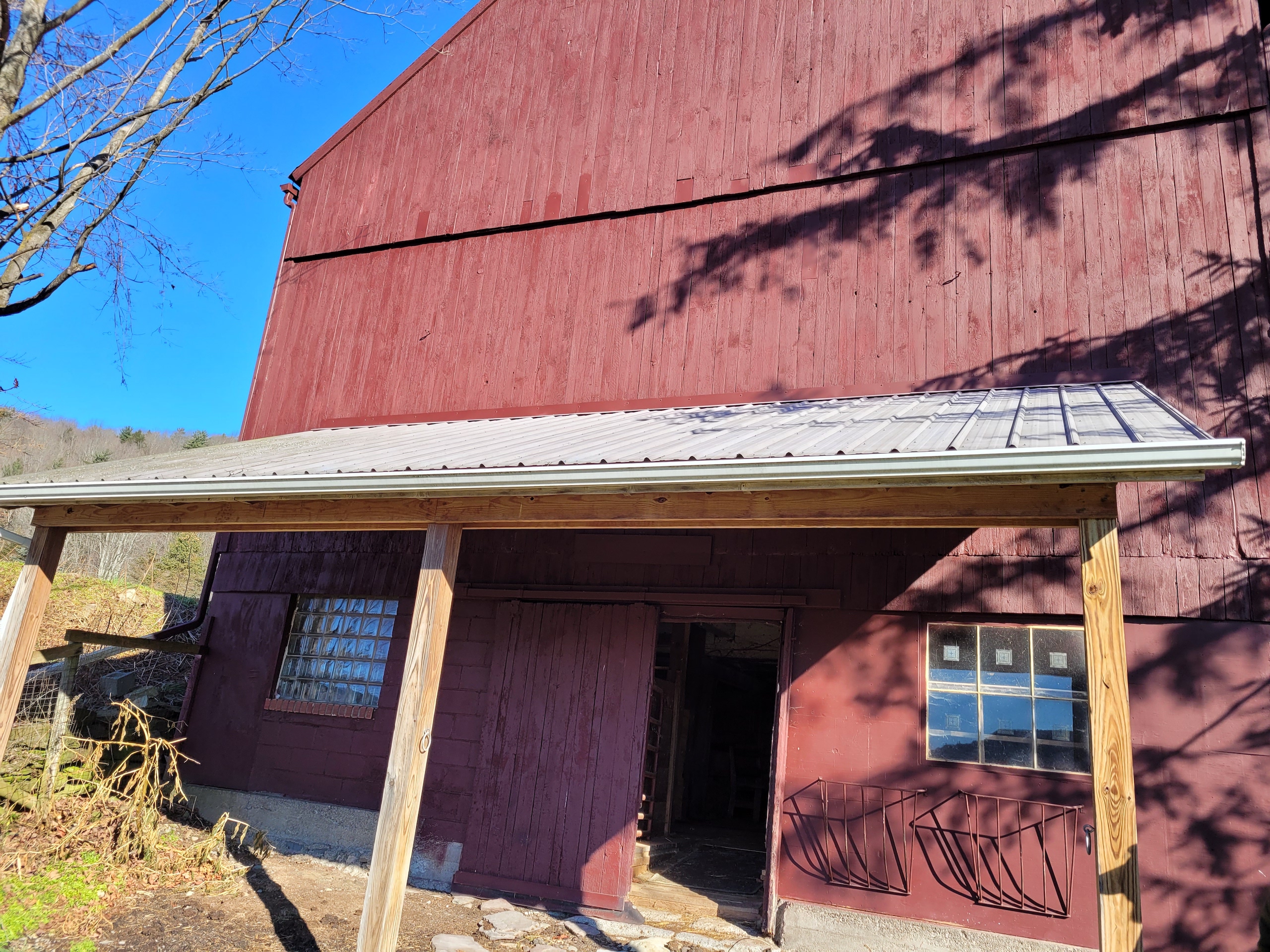 - Large 3 story post & beam barn c. 1850 with livestock stalls, 2 story hay loft, electric and water