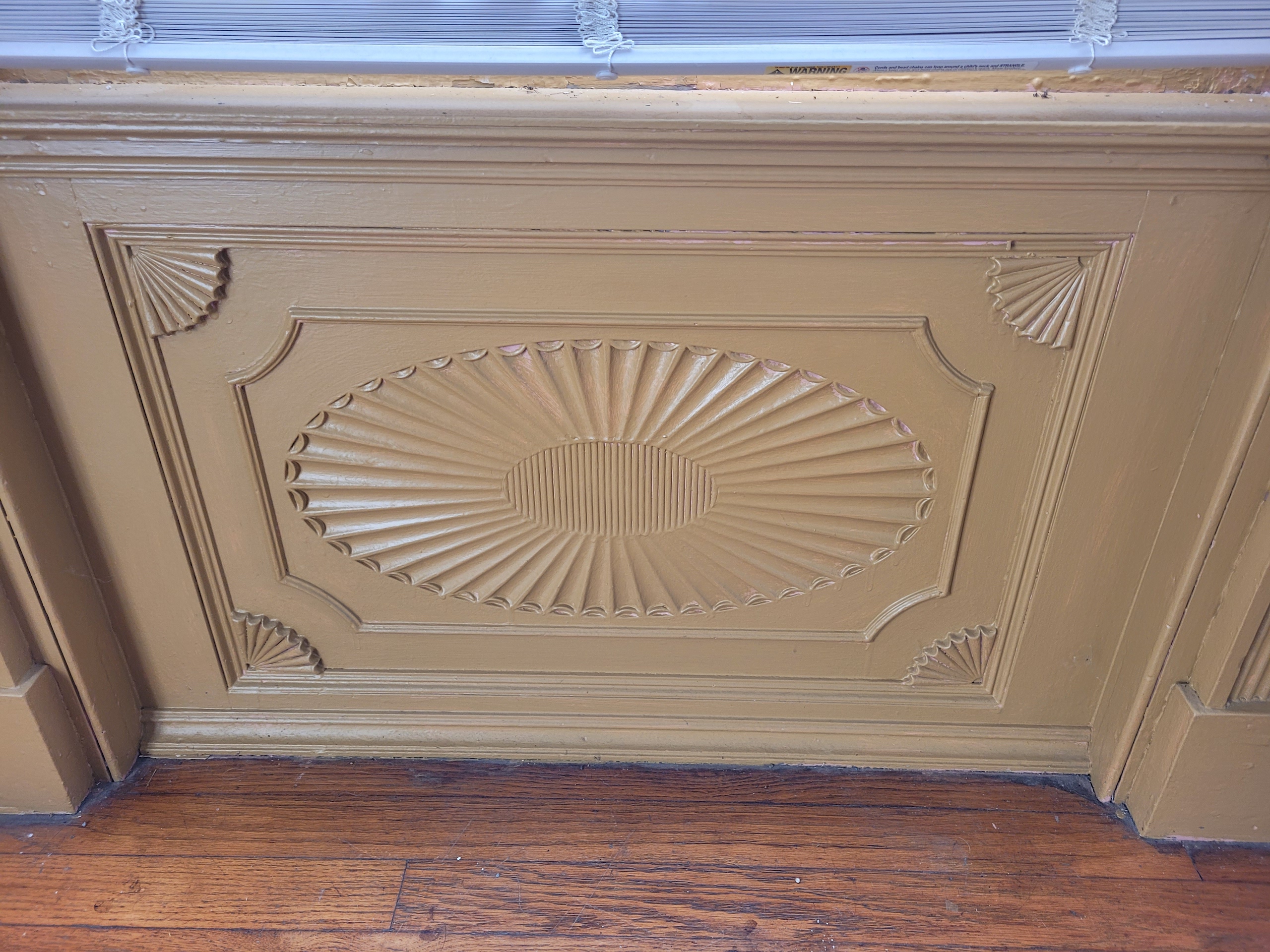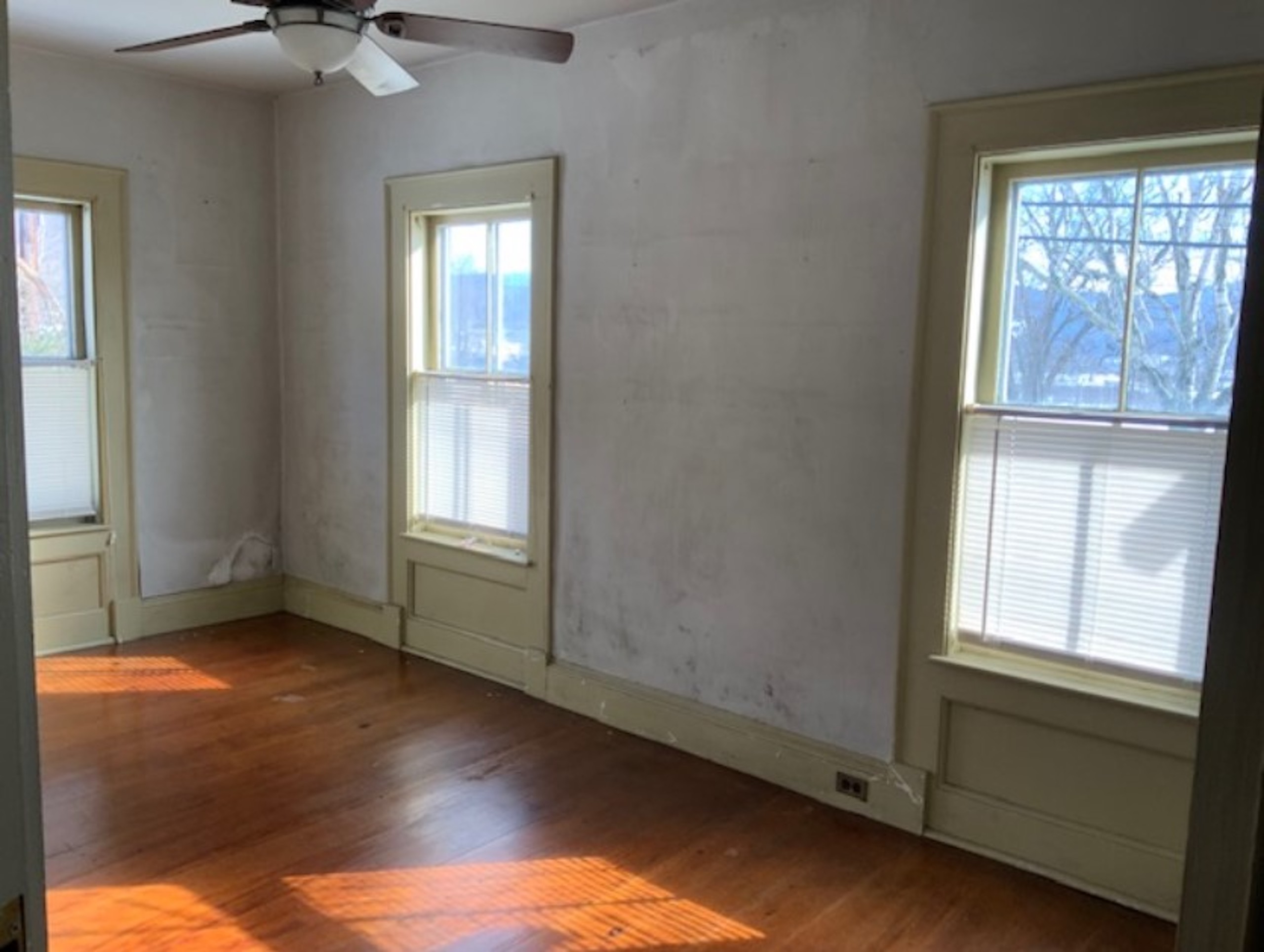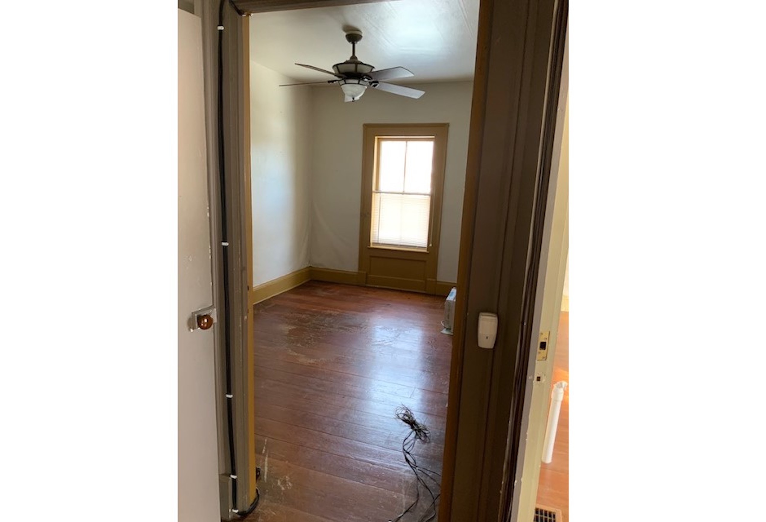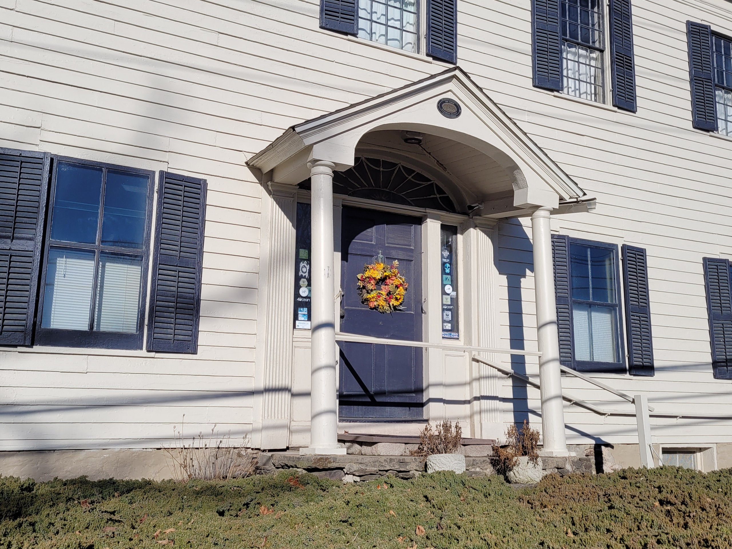 - Many original architectural features: wainscoting & interior trim, front door w fanlight transom window and sidelites, exterior dentil moulding, fluted pilasters, wood flooring